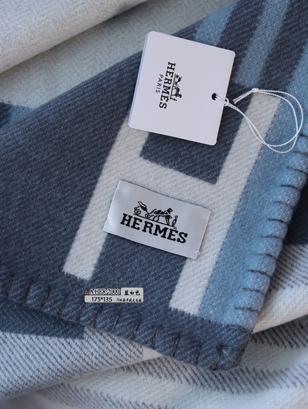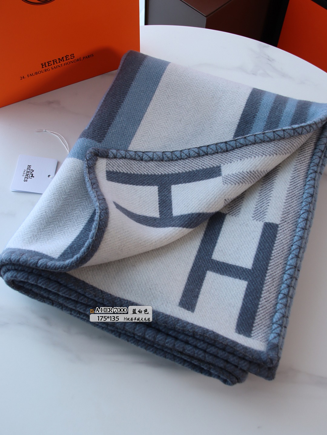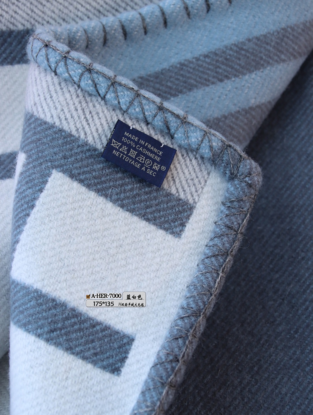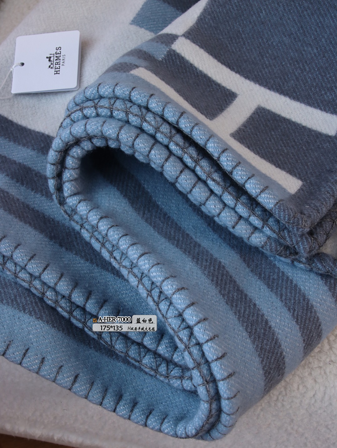 Hermes Ithaque Wool and Cashmere Blend Blanket 135 x 175cm - Blue and White