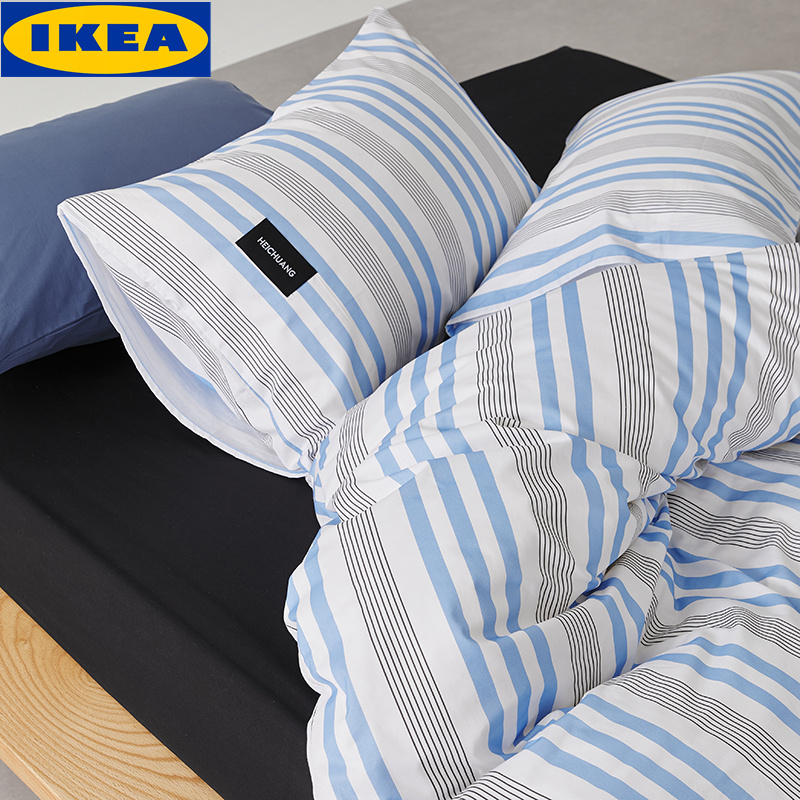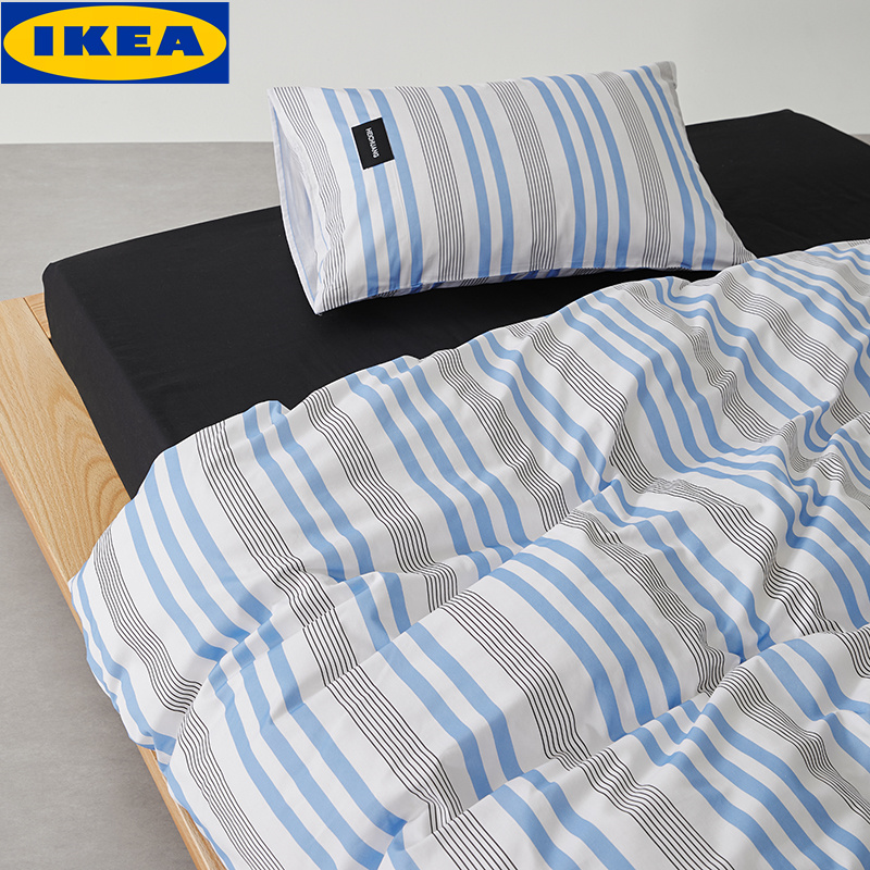 Ikea Blue Striped Cotton Bedding Set - Soft, Breathable & Durable