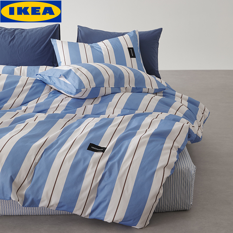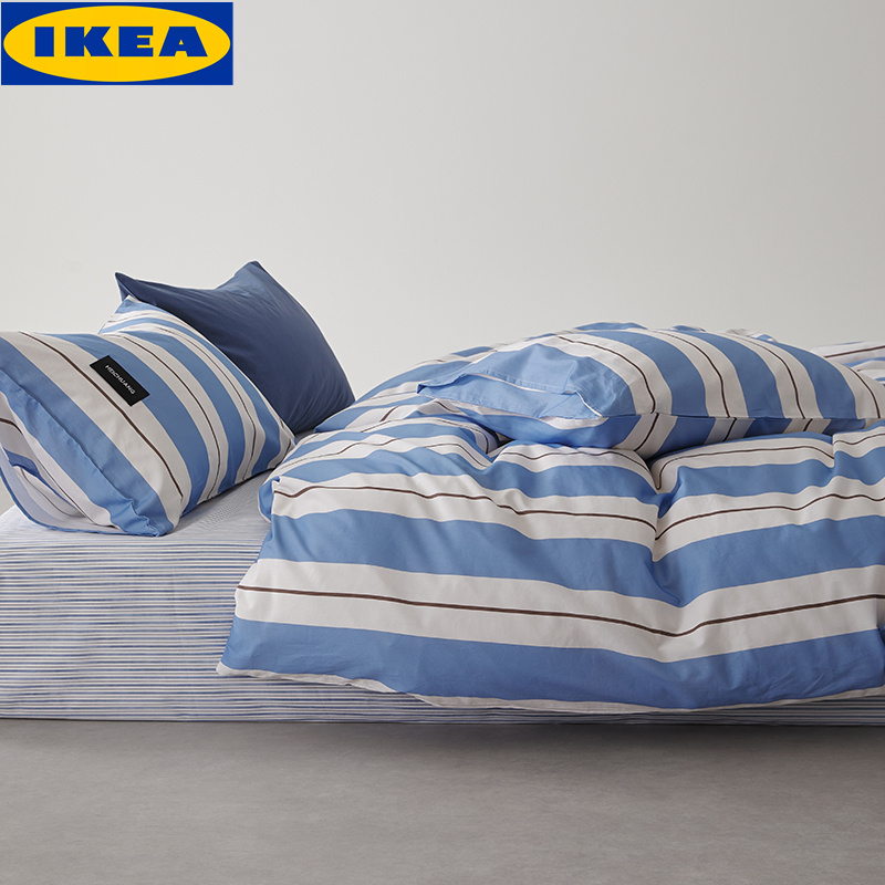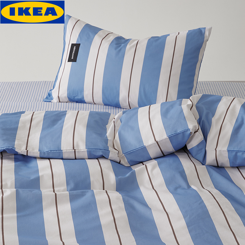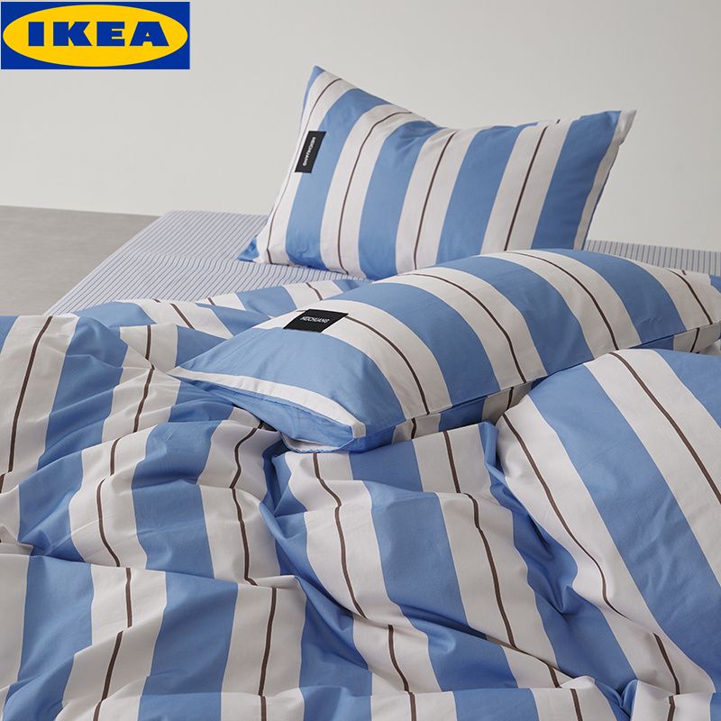 Enjoy a refreshing sleep with this Ikea cotton bedding set. Features a striped pattern and soft, breathable fabric for year-round comfort.