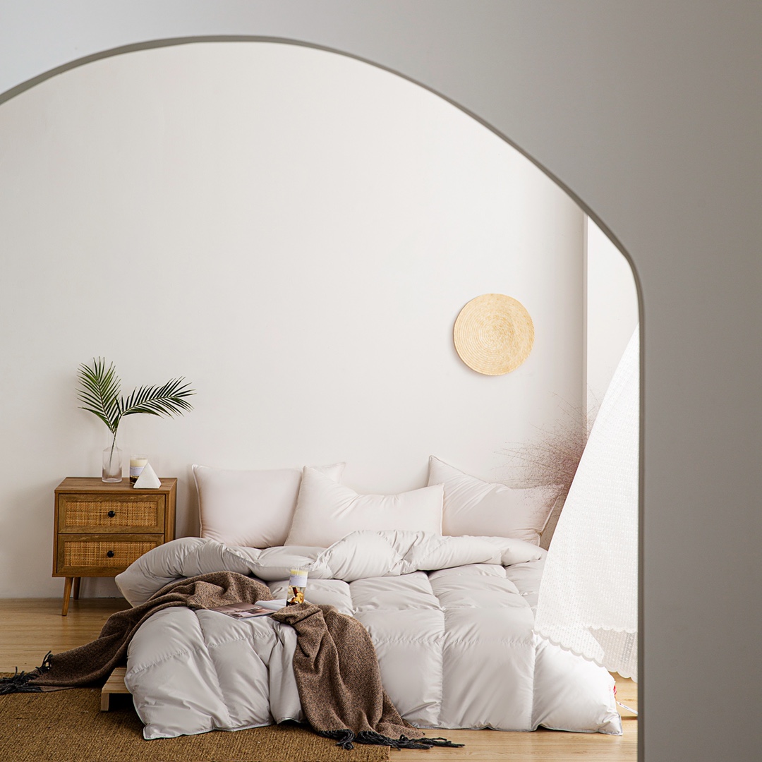 Experience the pinnacle of sleep comfort with the Kauffmann Goose Down Comforter. Crafted with meticulous attention to detail, this comforter offers a luxurious and restful sleep experience. Made from premium materials and designed for optimal warmth and breathability, it's the perfect addition to your bedding collection.