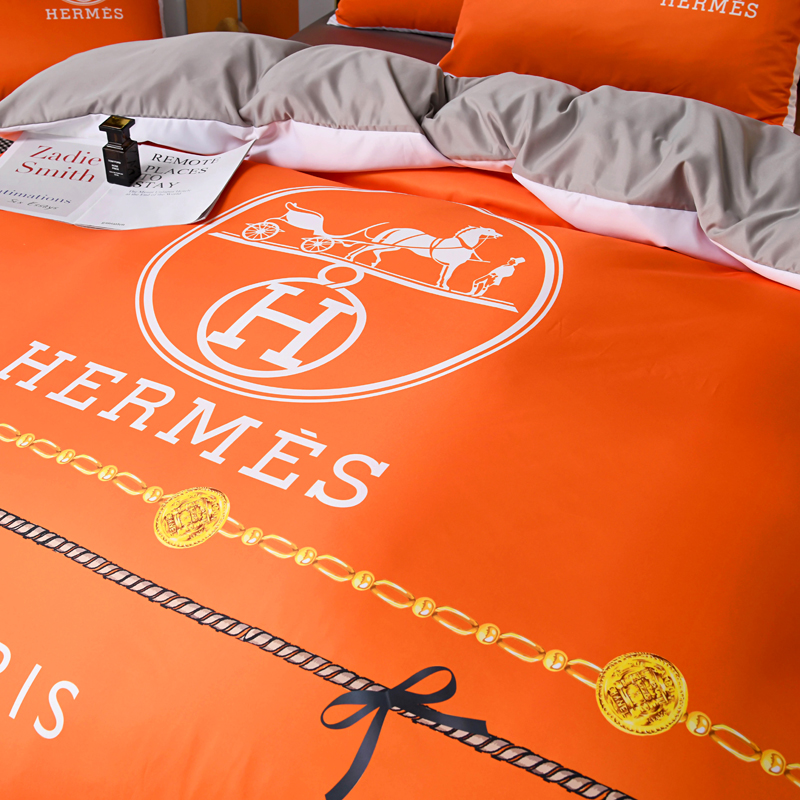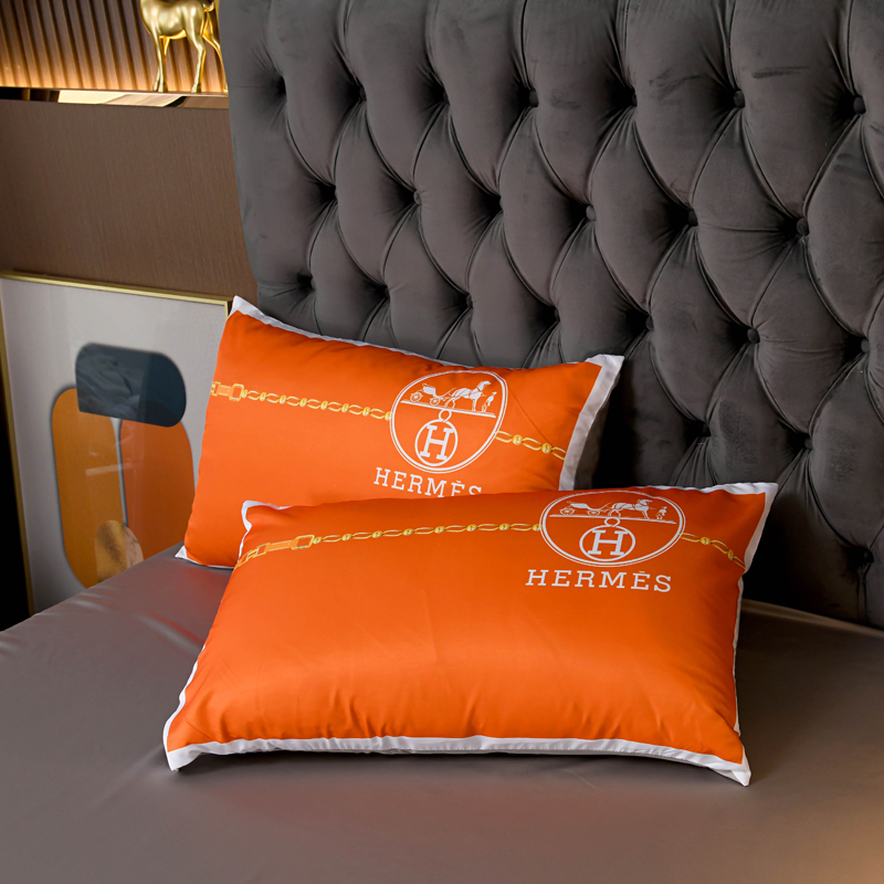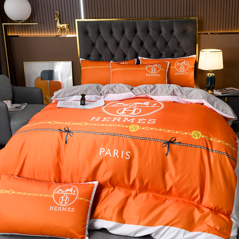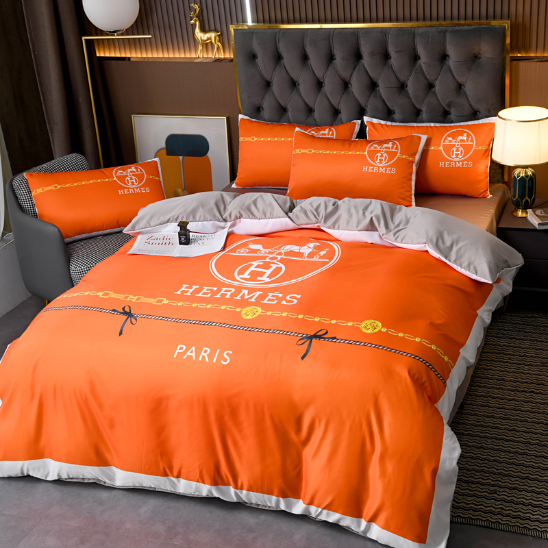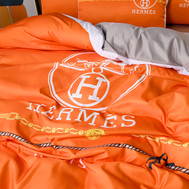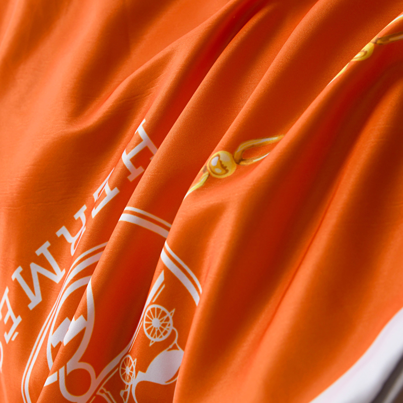 Experience ultimate comfort with this premium Hermes washed silk bedding set. Soft, breathable, and cool, perfect for a luxurious night's sleep.