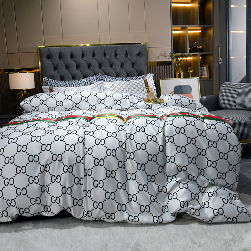 Luxury Washed Silk 4-Piece Bedding Set with Designer Inspired Pattern