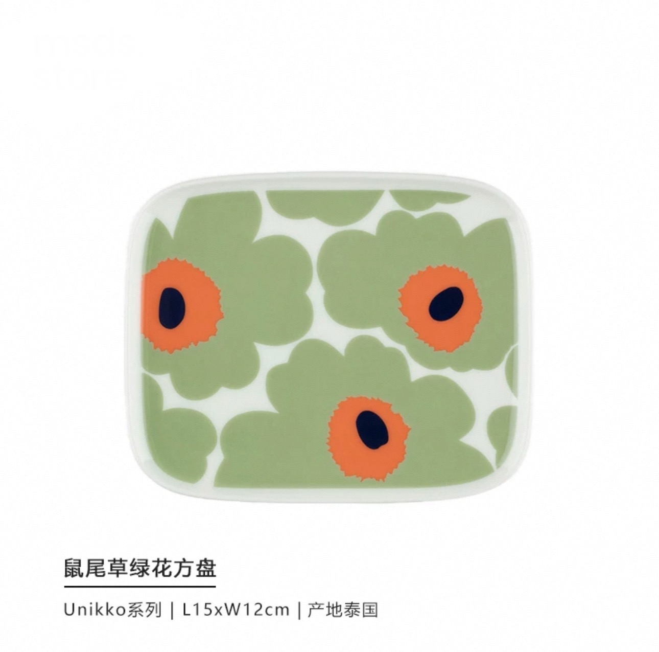 Unikko Poppy Flower Print Plate, Nordic Style Tableware, 15x12cm Green Plate