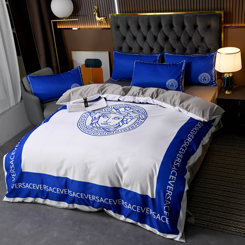 Versace Washed Silk Bedding Set - Luxury Soft Breathable Bed Sheet Set