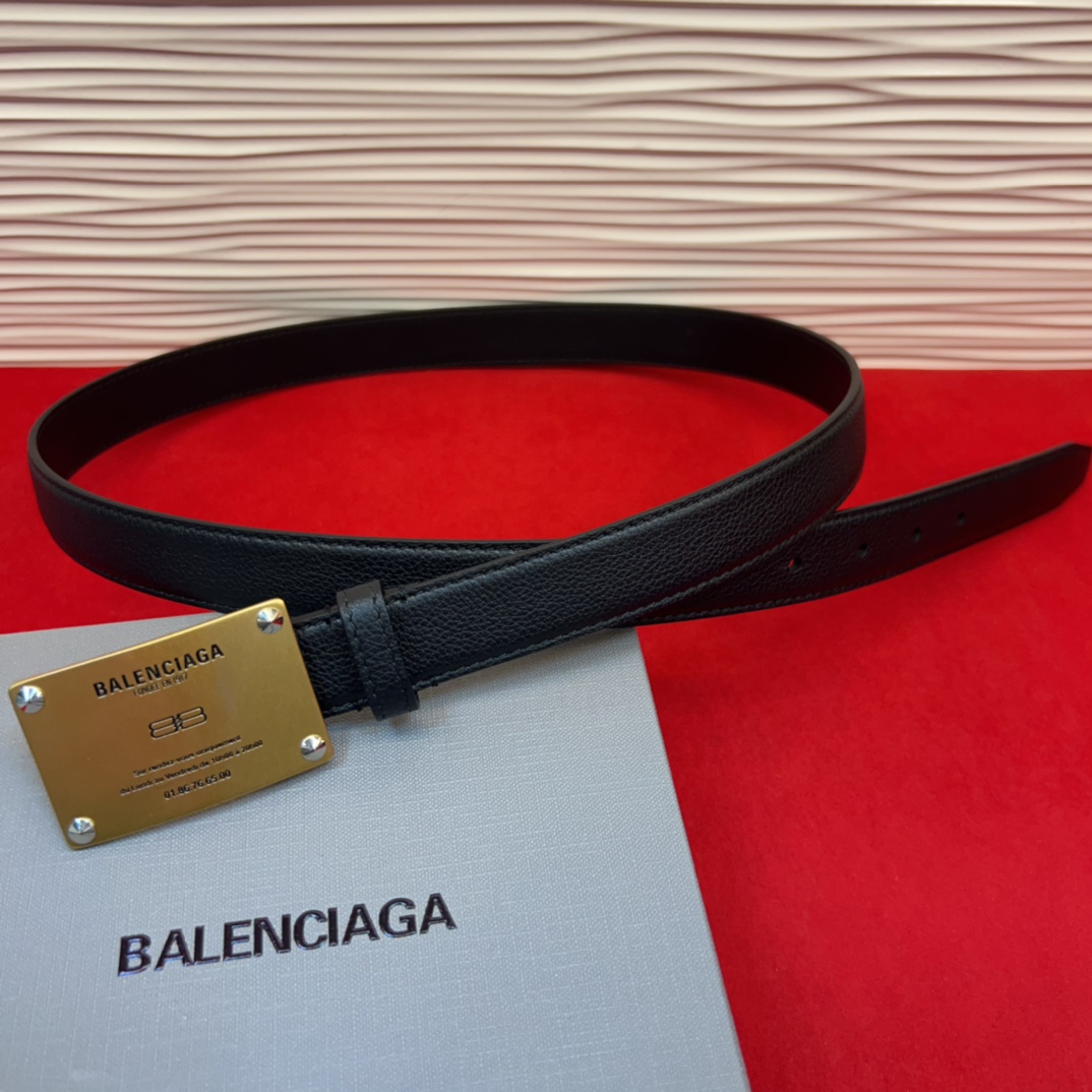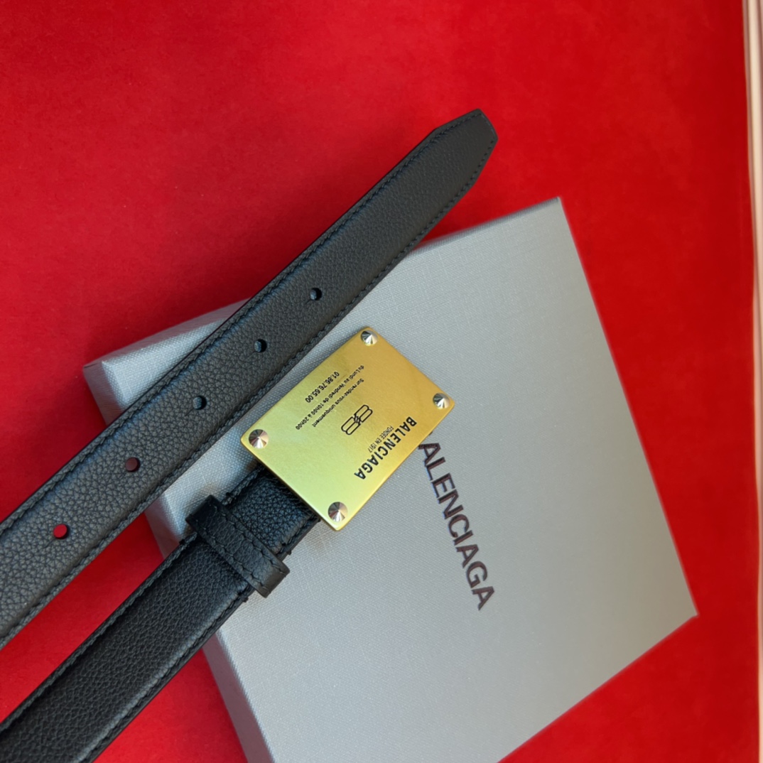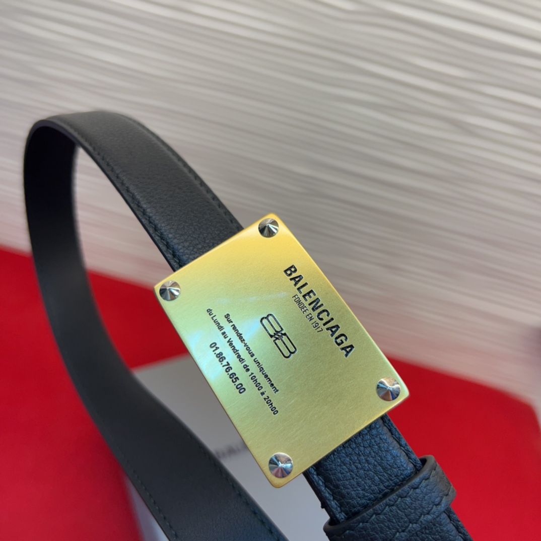 Balenciaga Leather Belt with Gold-Tone Buckle, Width 2.5cm, Black