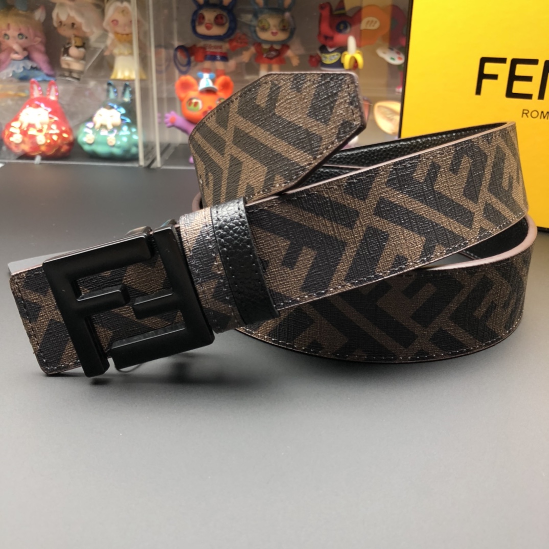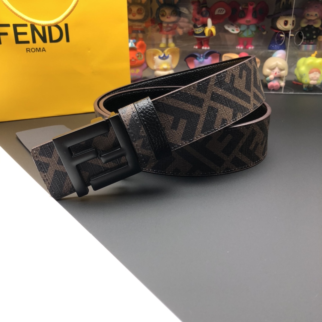 Fendi Reversible Belt with FF Buckle - Black Cuoio Romano Leather