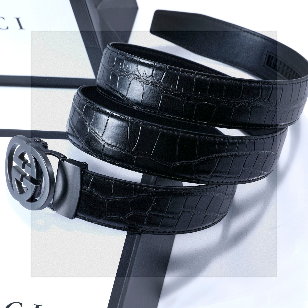Elevate your style with this Gucci belt. Crafted from premium textured leather with an interlocking G buckle, it offers a sophisticated and adjustable fit.