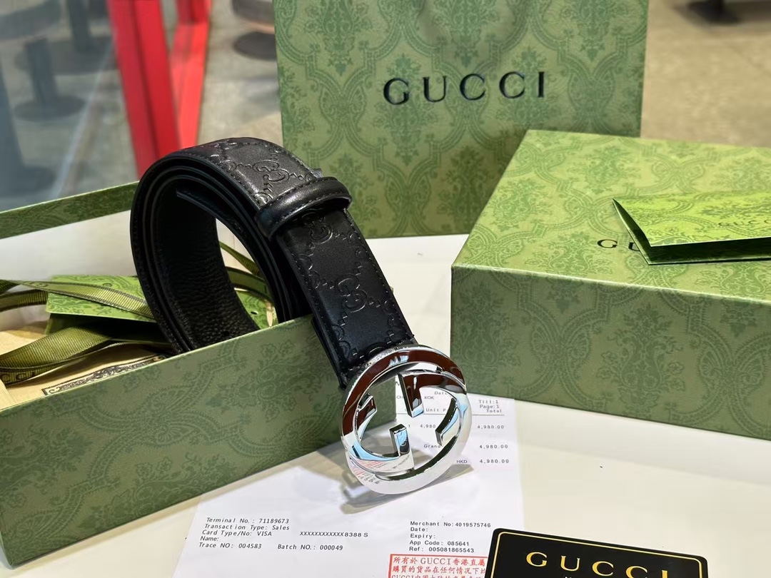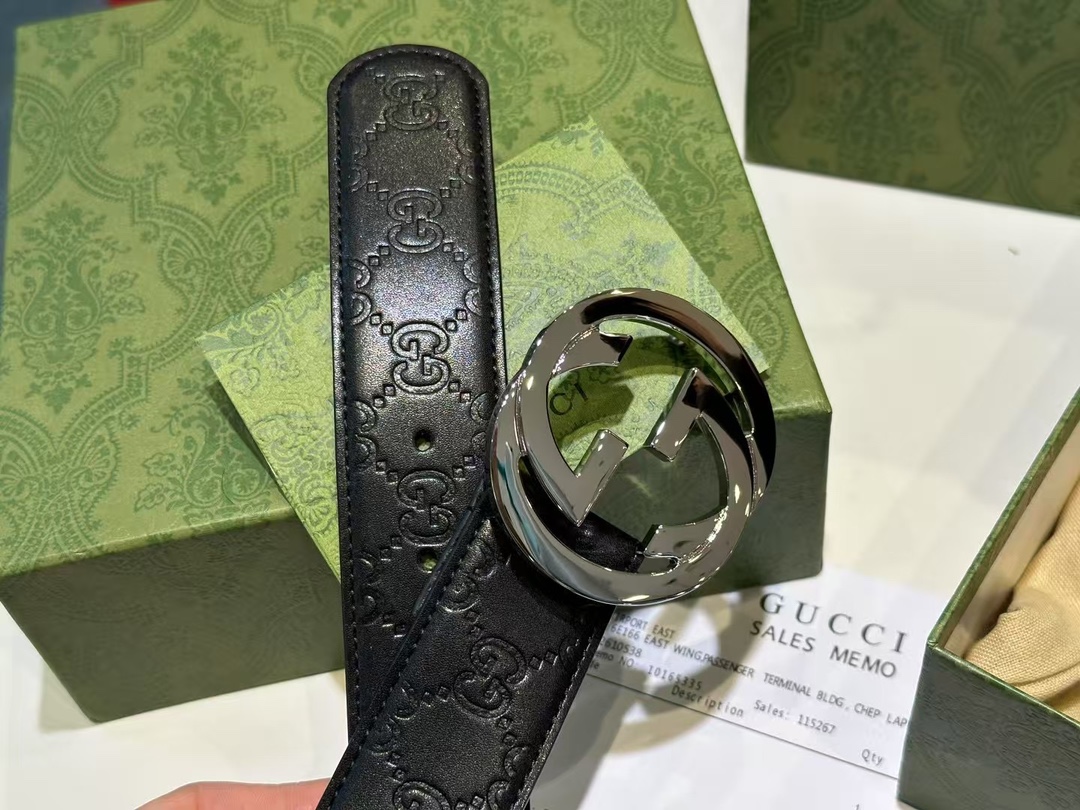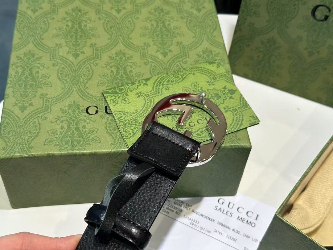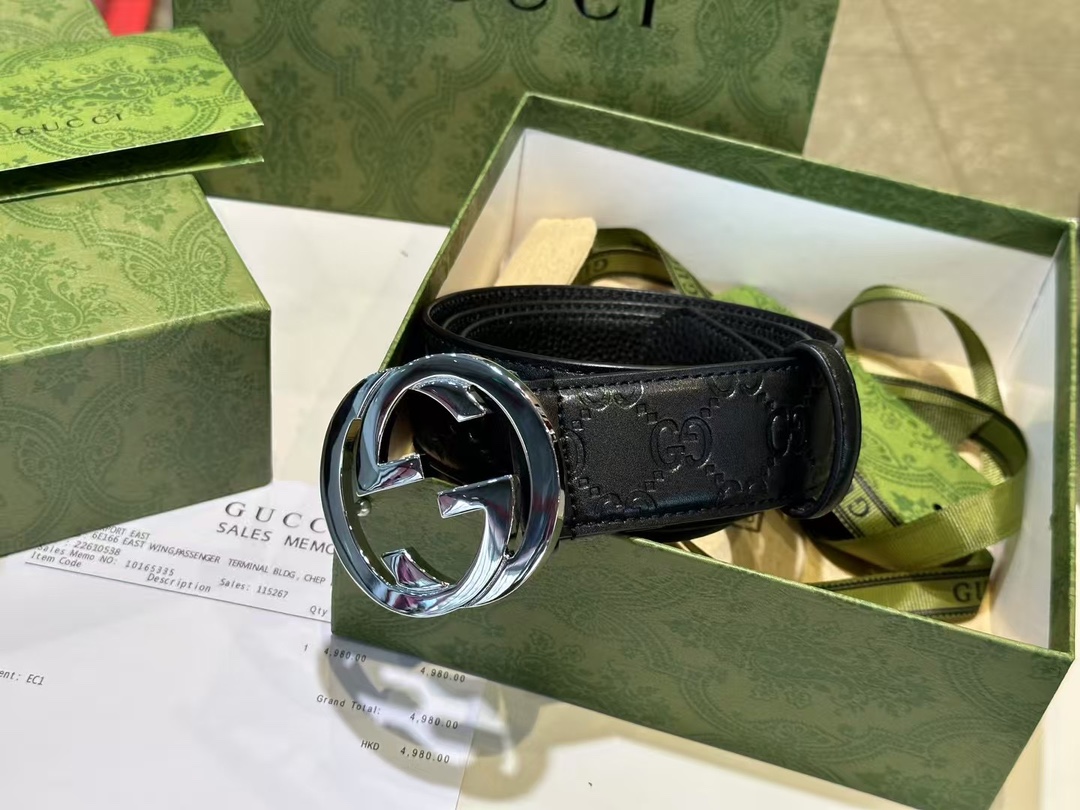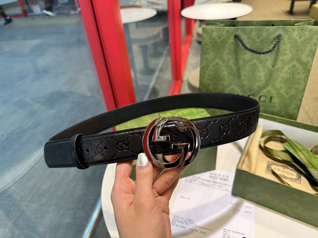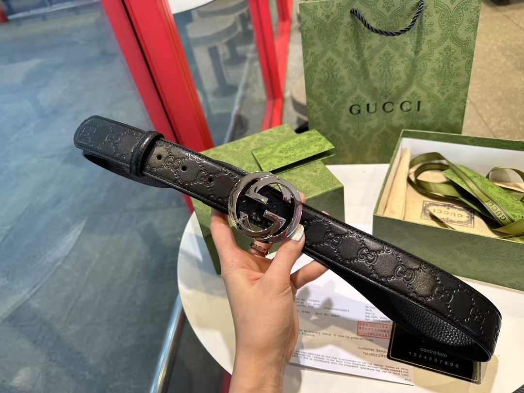 Gucci Men's Leather Belt with GG Buckle - Classic Style, 3.5cm Width