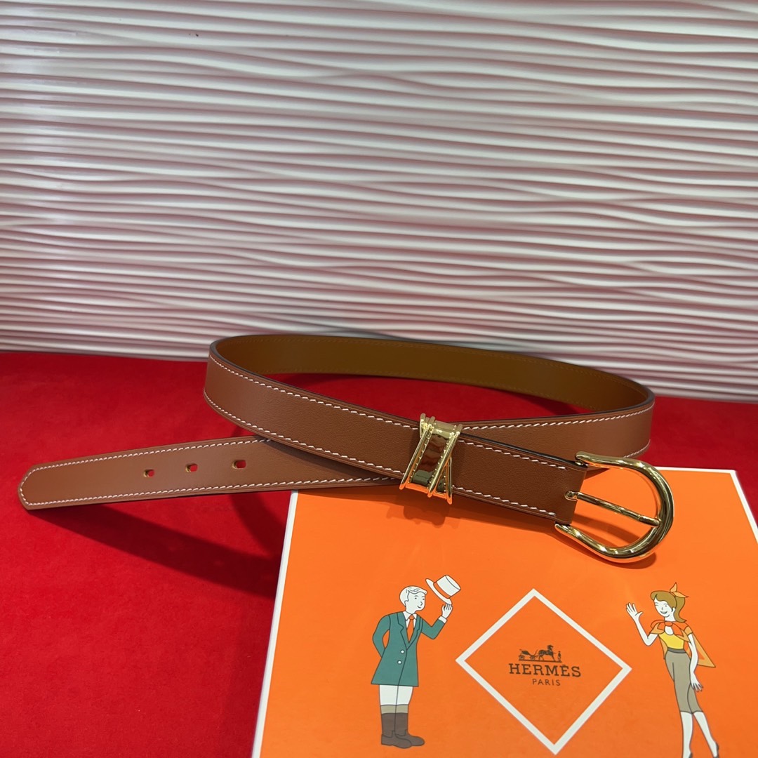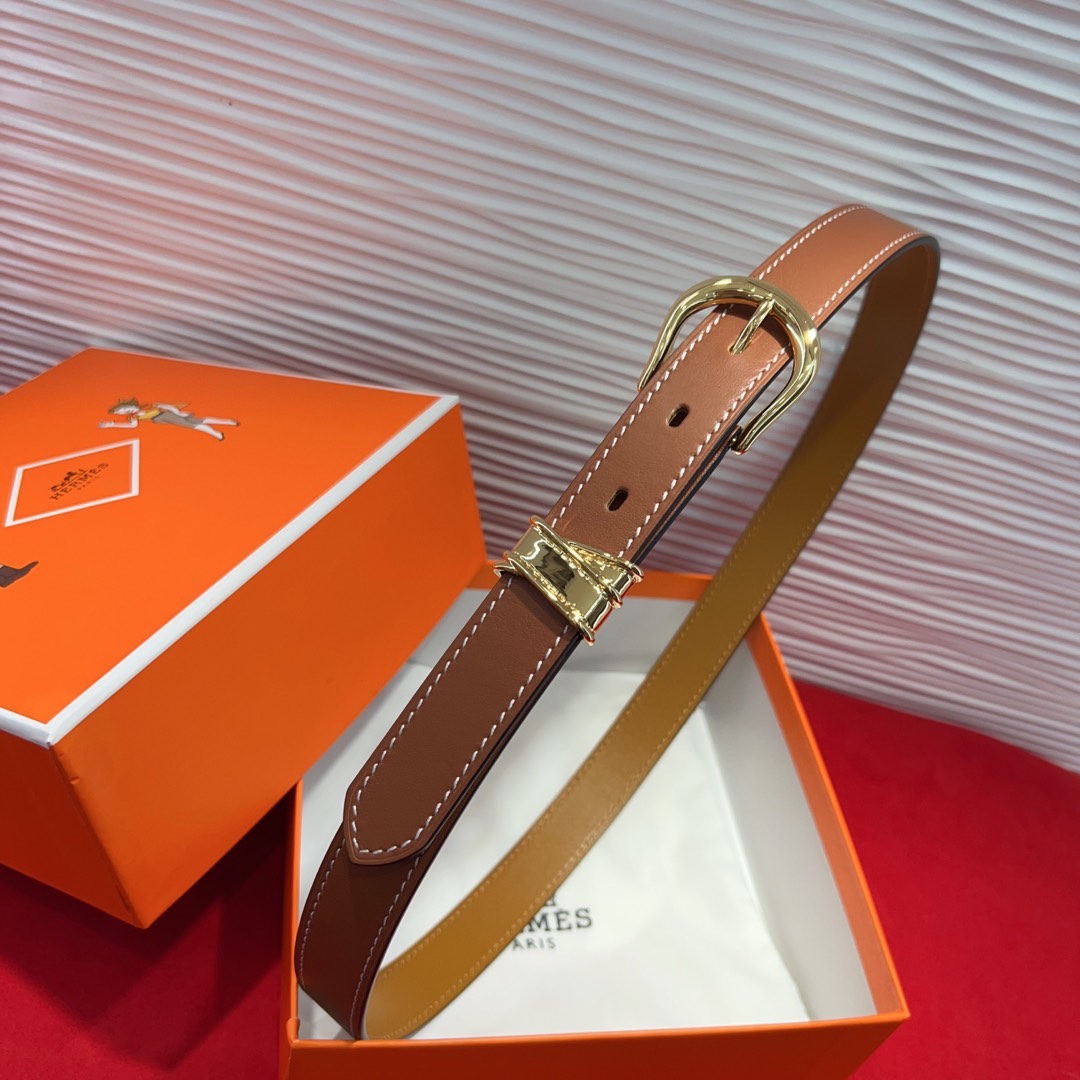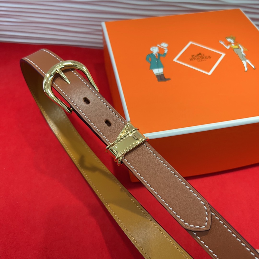 Hermès Inspired Brown Leather Belt with Gold Buckle, 2.4cm Width