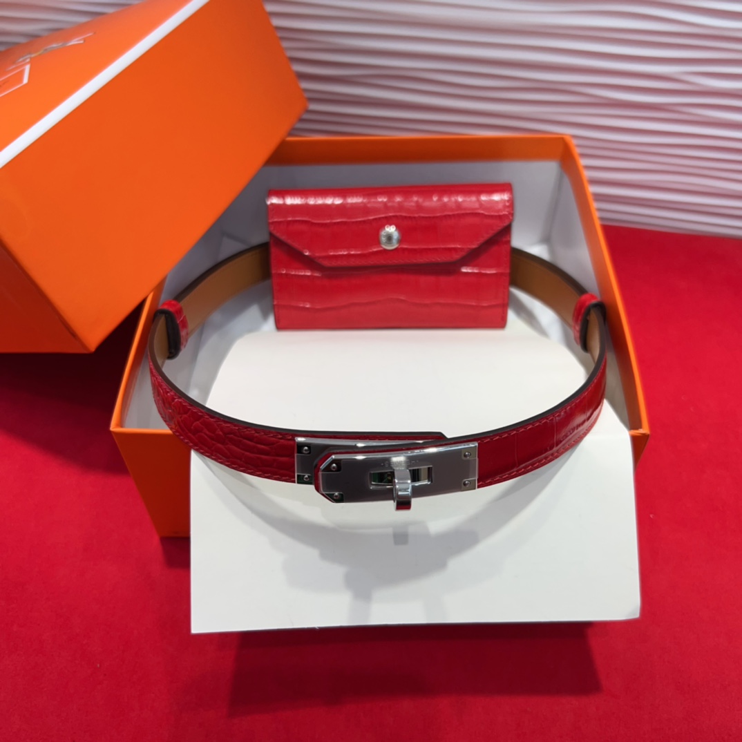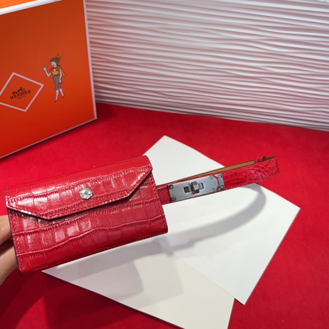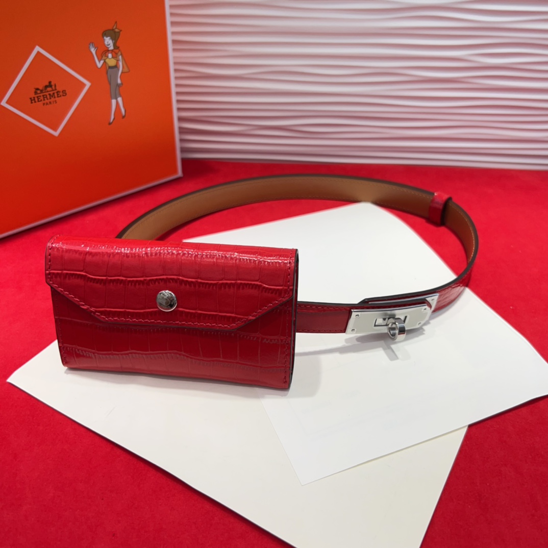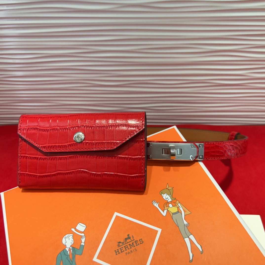 Hermes Kelly Buckle Crocodile Pattern Belt with Mini Waist Bag