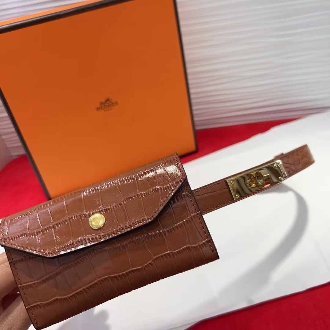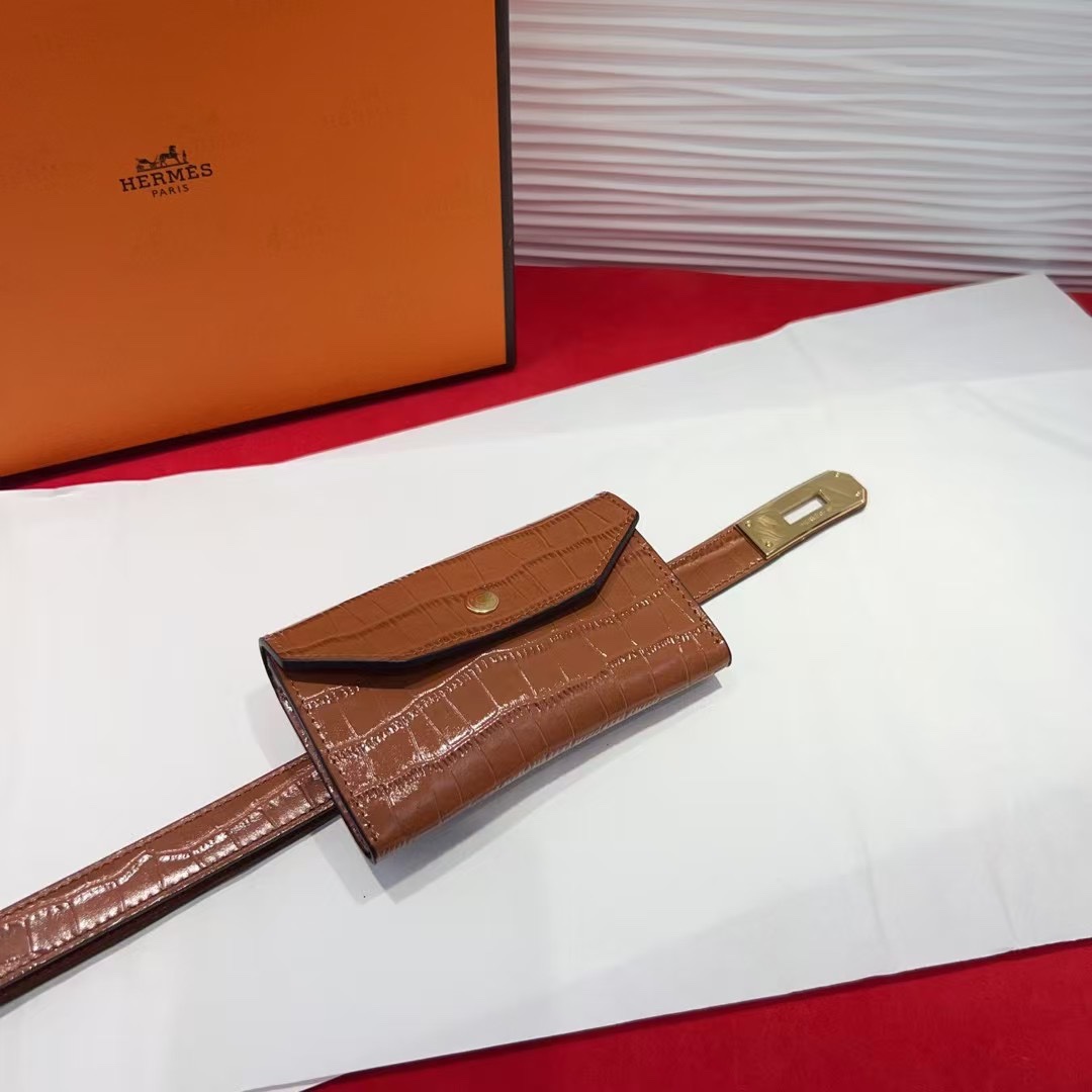 Hermes Kelly Buckle Crocodile Pattern Waist Bag Adjustable Belt