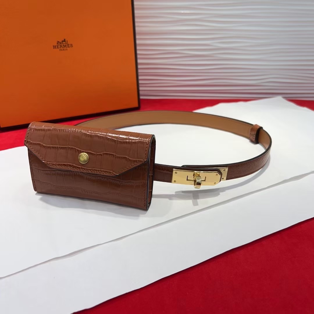 Practical and exquisite Hermes belt with detachable waist bag. Adjustable length for high, medium, and low waist wear. Includes a card holder.