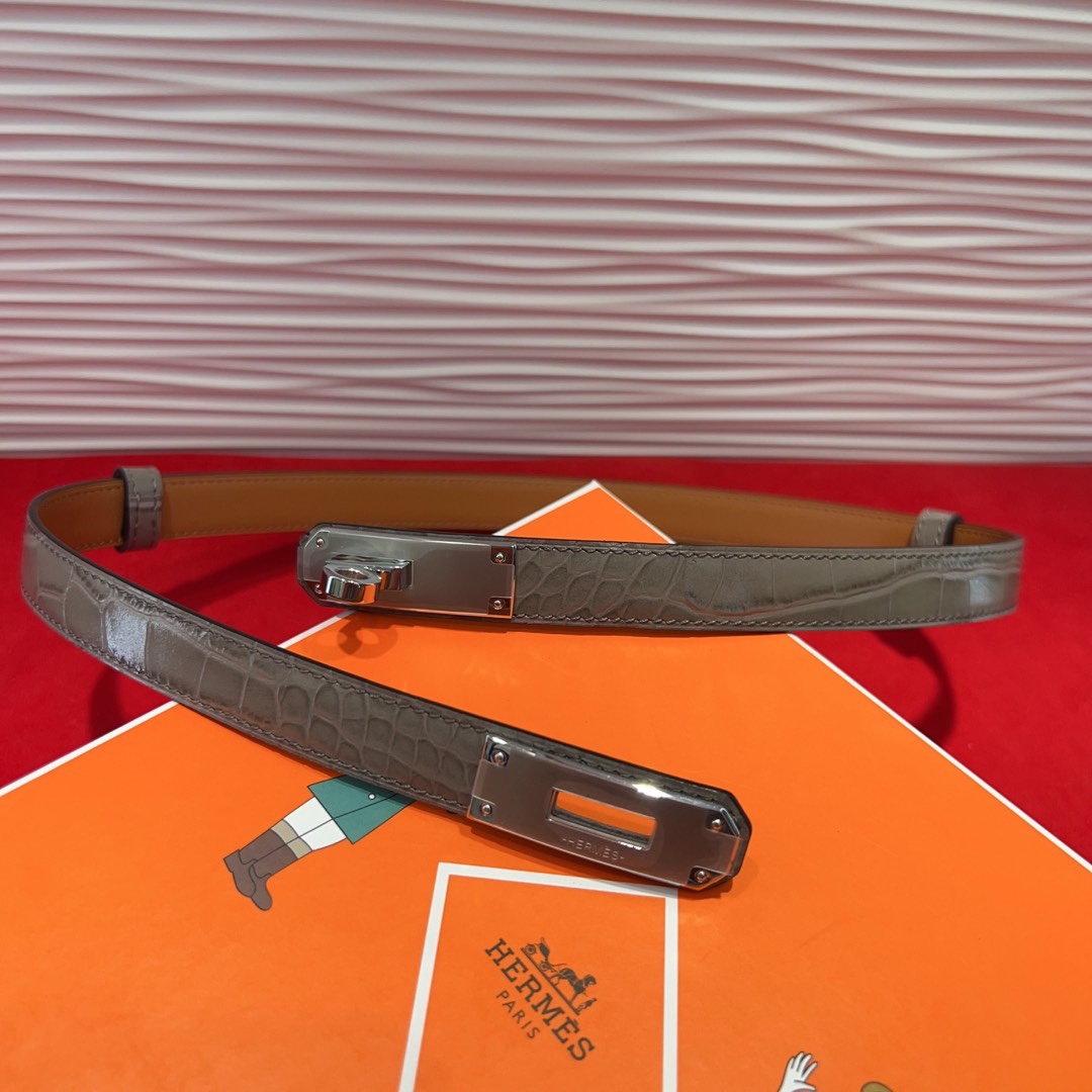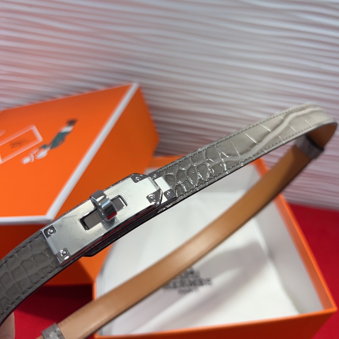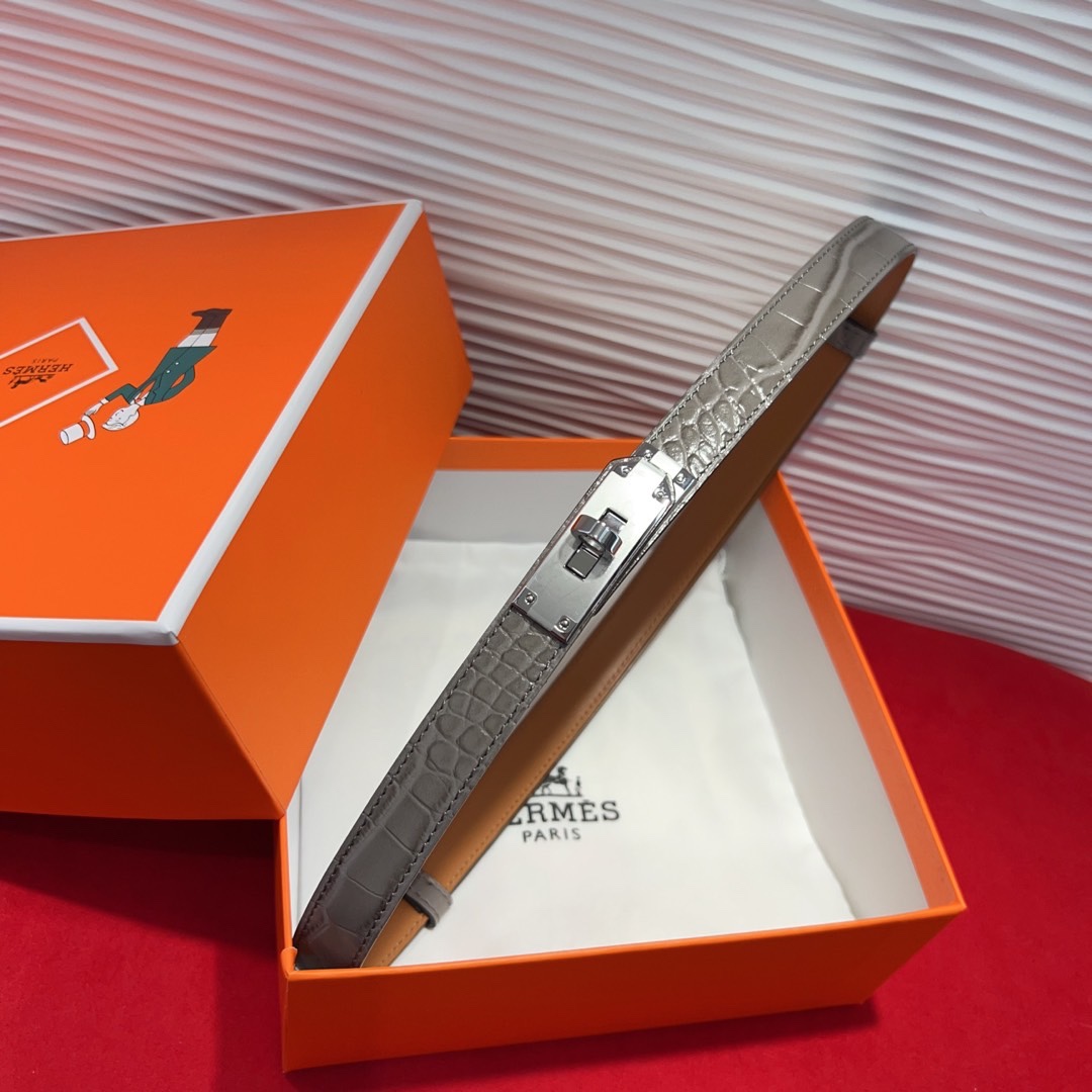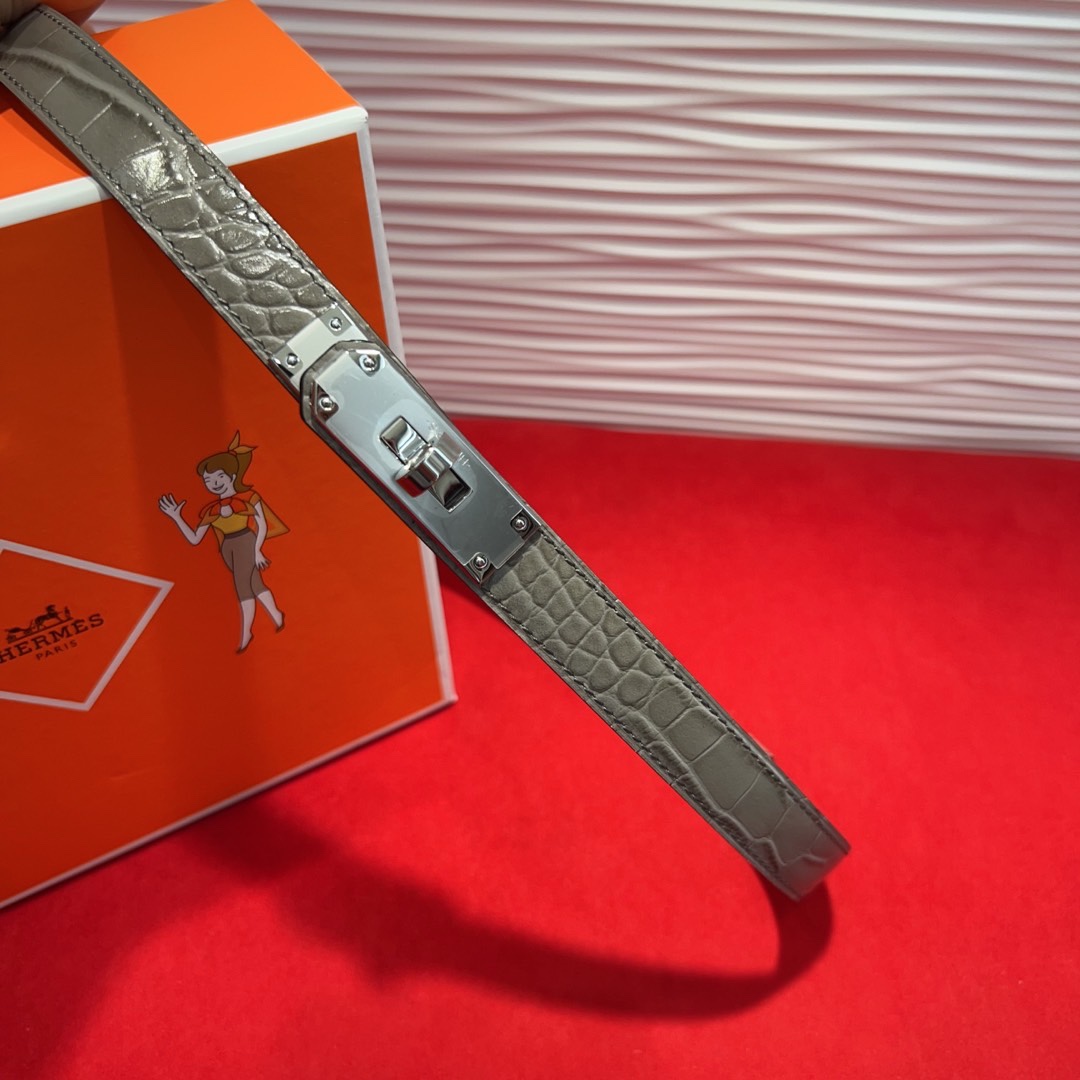 The Kelly Alligator-Print 1.8cm Belt is an exquisite accessory that combines luxury and style. Crafted from high-quality Epsom calfskin with a sophisticated alligator print, this belt elevates any outfit with its refined texture and elegant design.