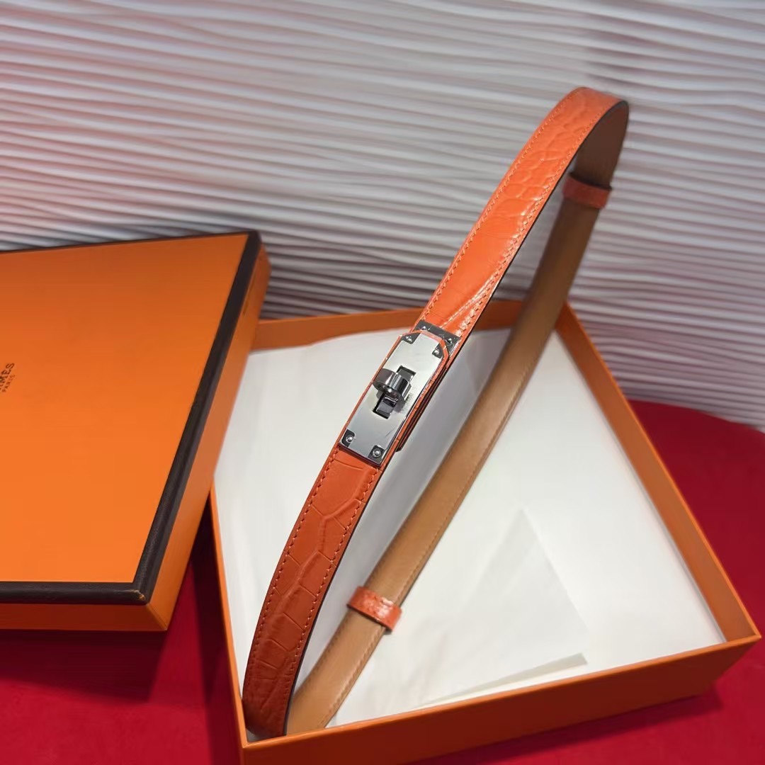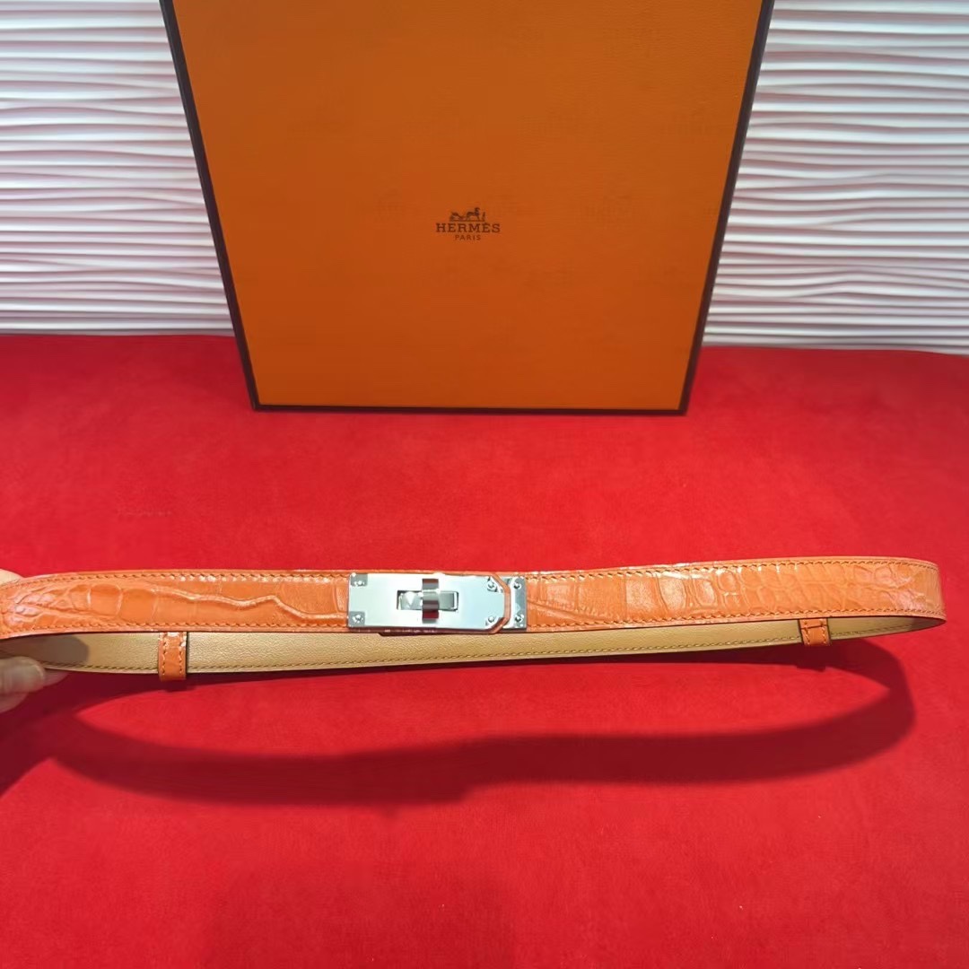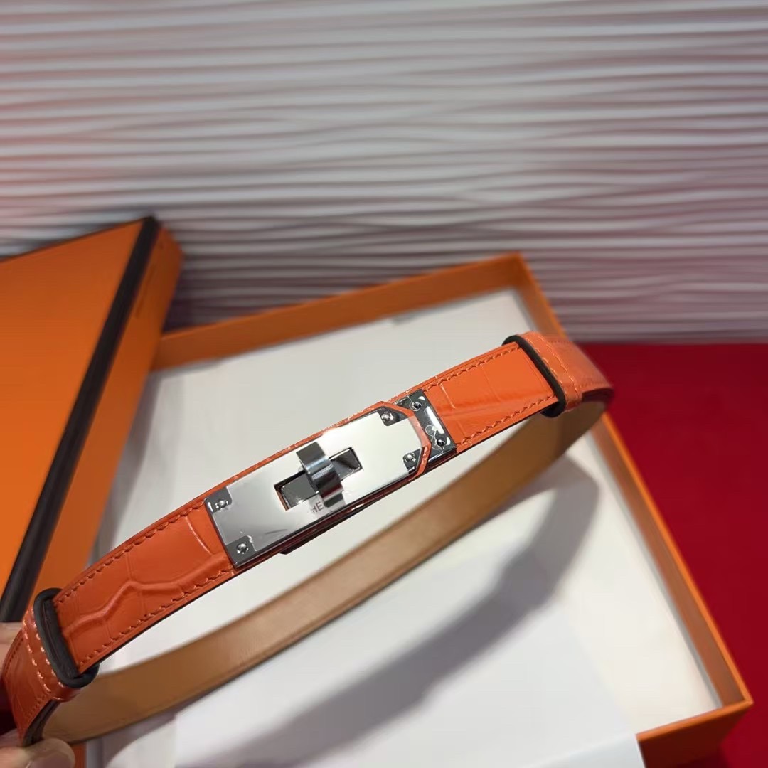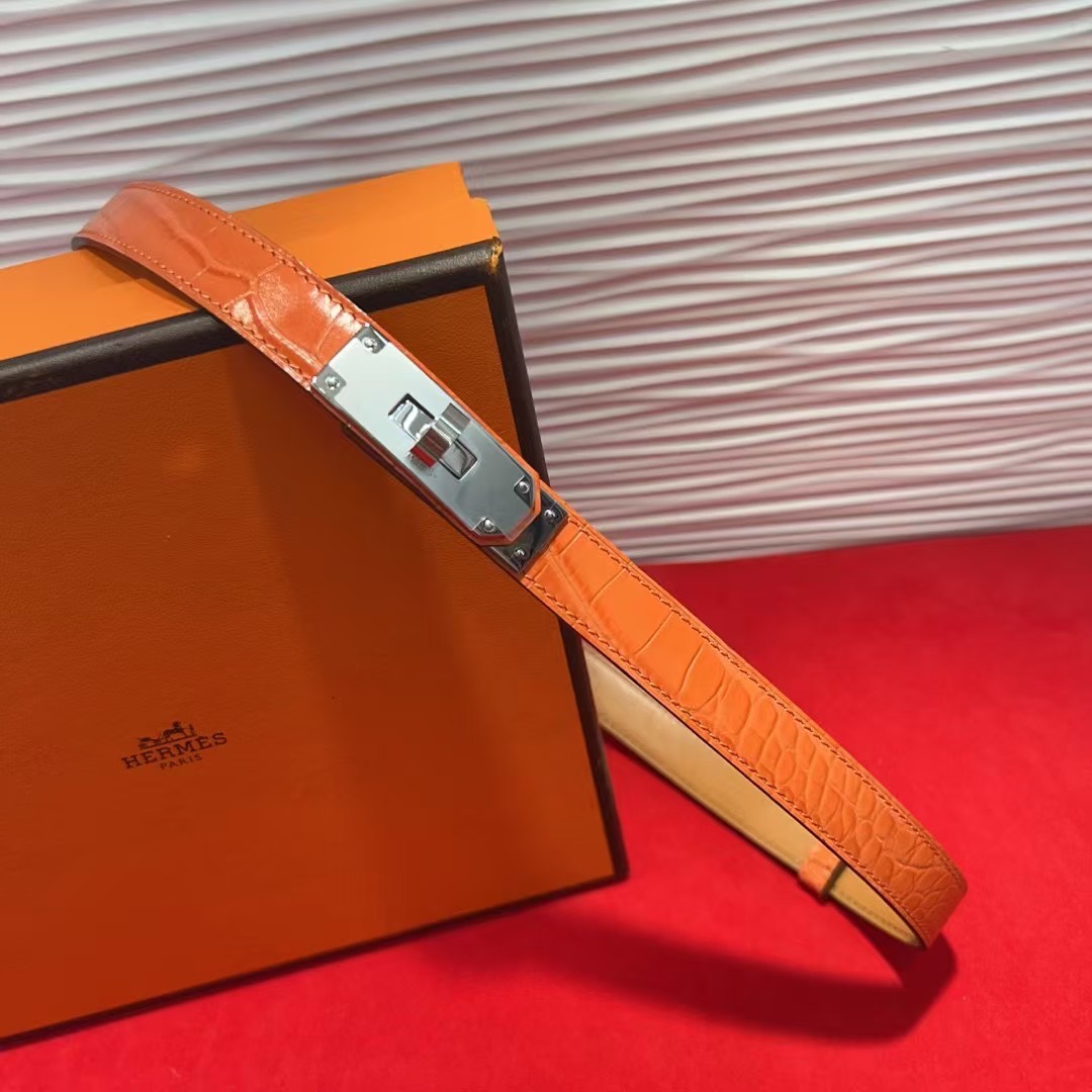 Kelly Buckle Epsom Leather Belt, Adjustable Crocodile-Embossed Waist Belt