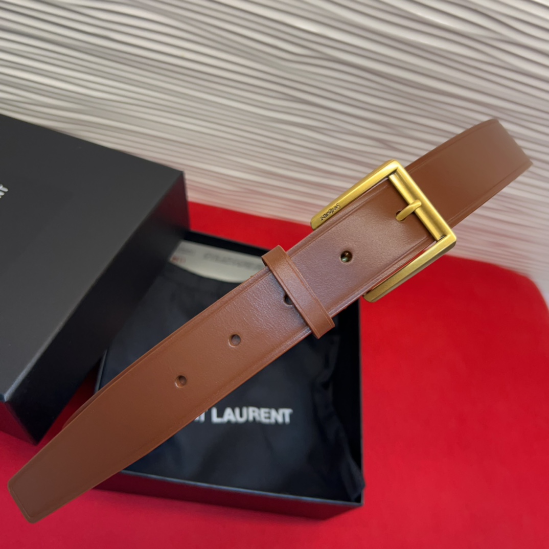 Yves Saint Laurent Women's Leather Belt | Gold Buckle | 3.0cm Width