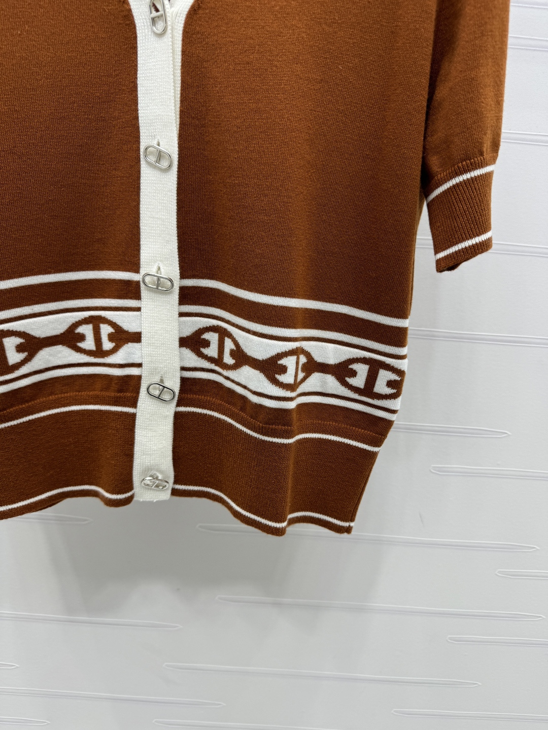 Hermes Inspired Short Sleeve Knit Cardigan with Iconic Buckle Detail