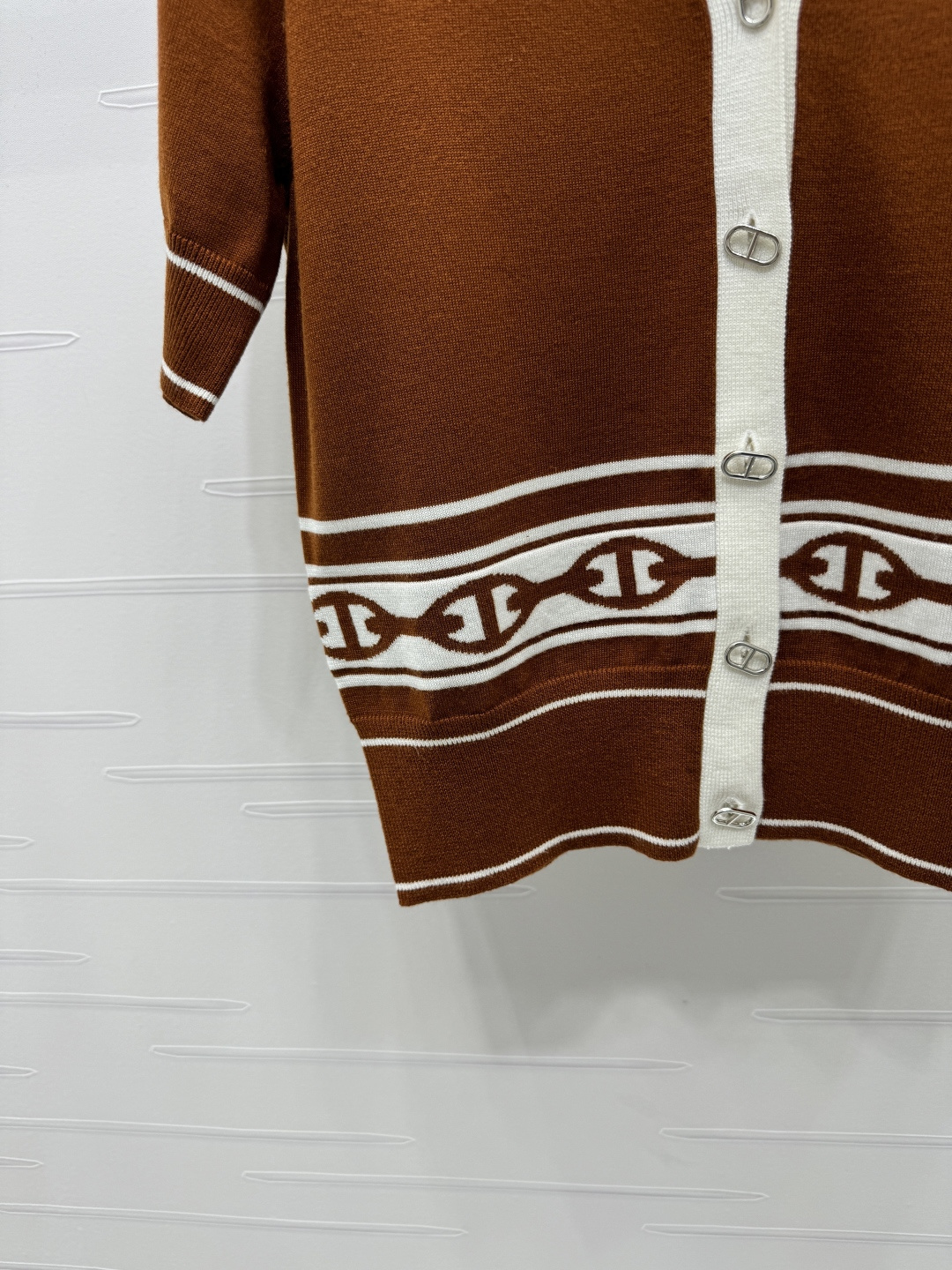 Elevate your style with this Hermes-inspired knit cardigan. Featuring a classic design, contrast trim, and signature buckle accents. Perfect for any season!