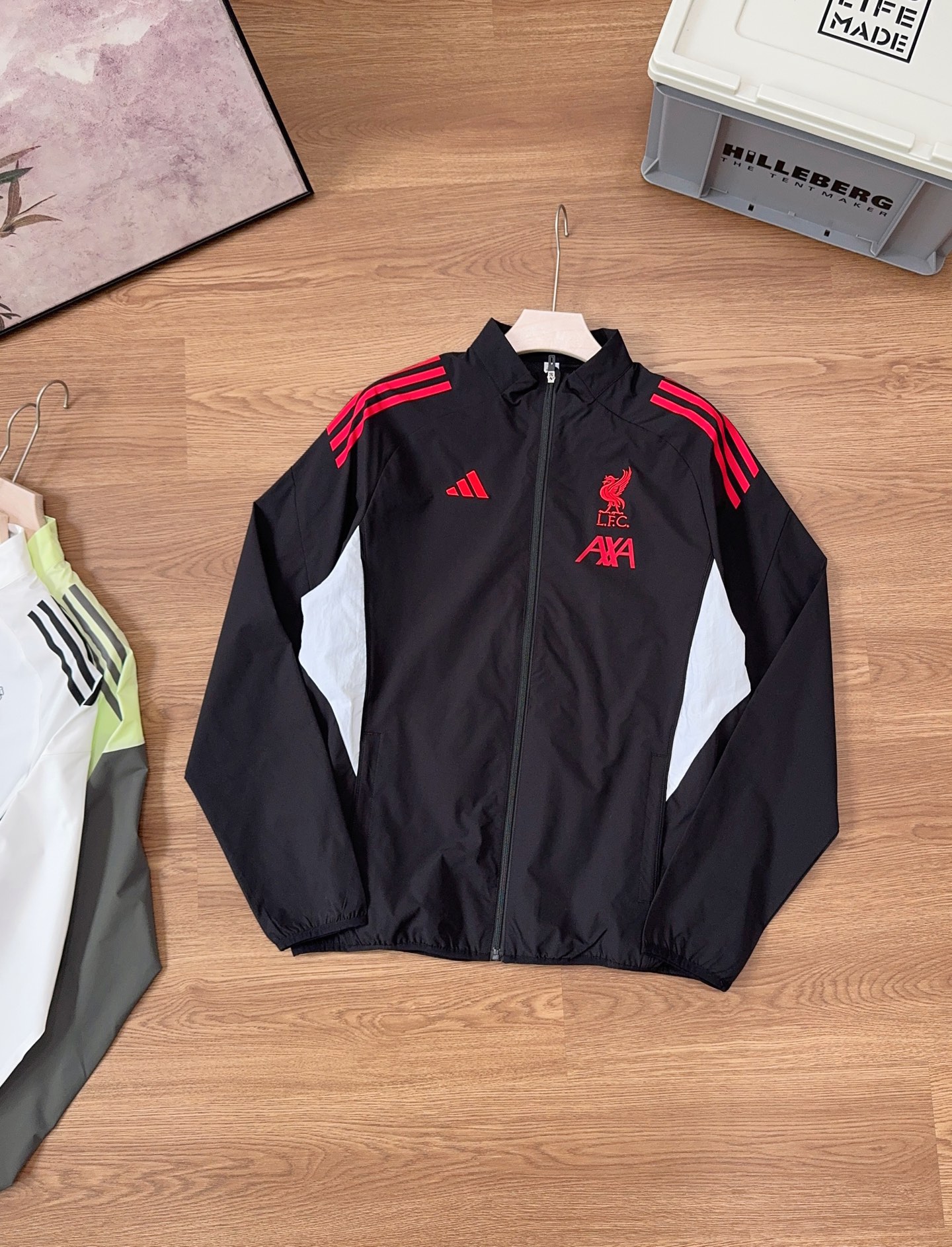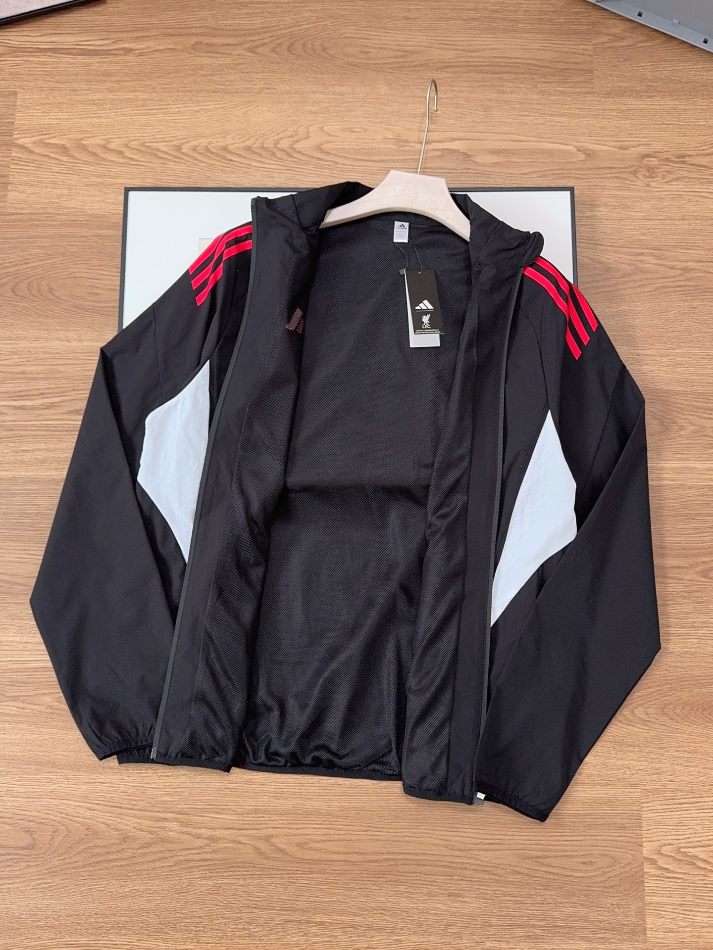 This Adidas soccer windbreaker combines classic sports style with modern fashion, making it a versatile addition to any wardrobe.