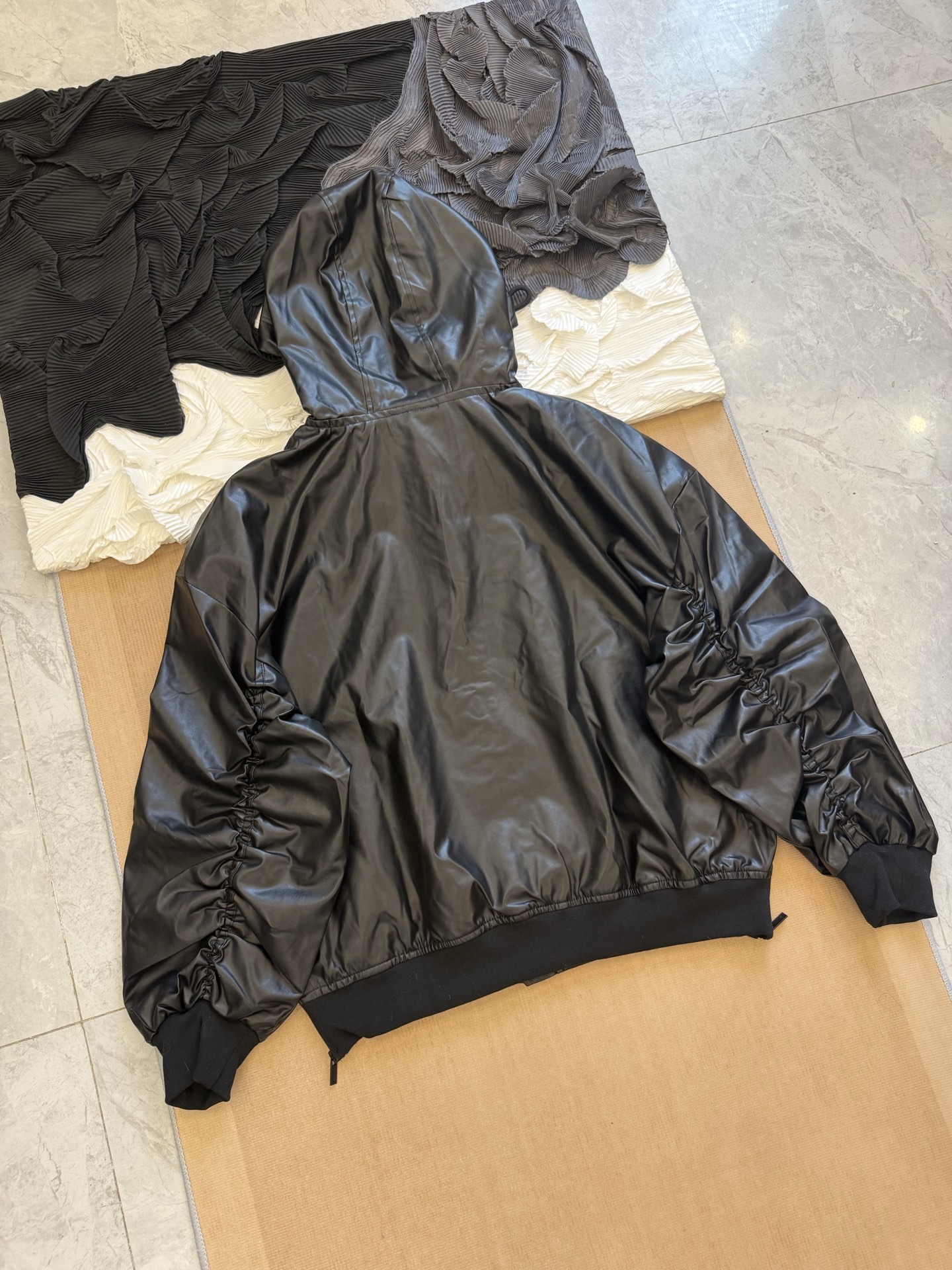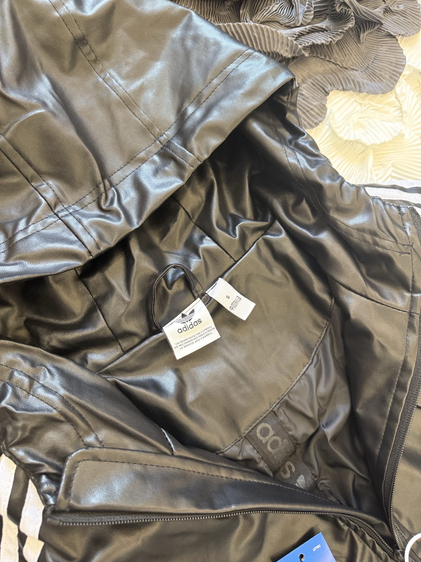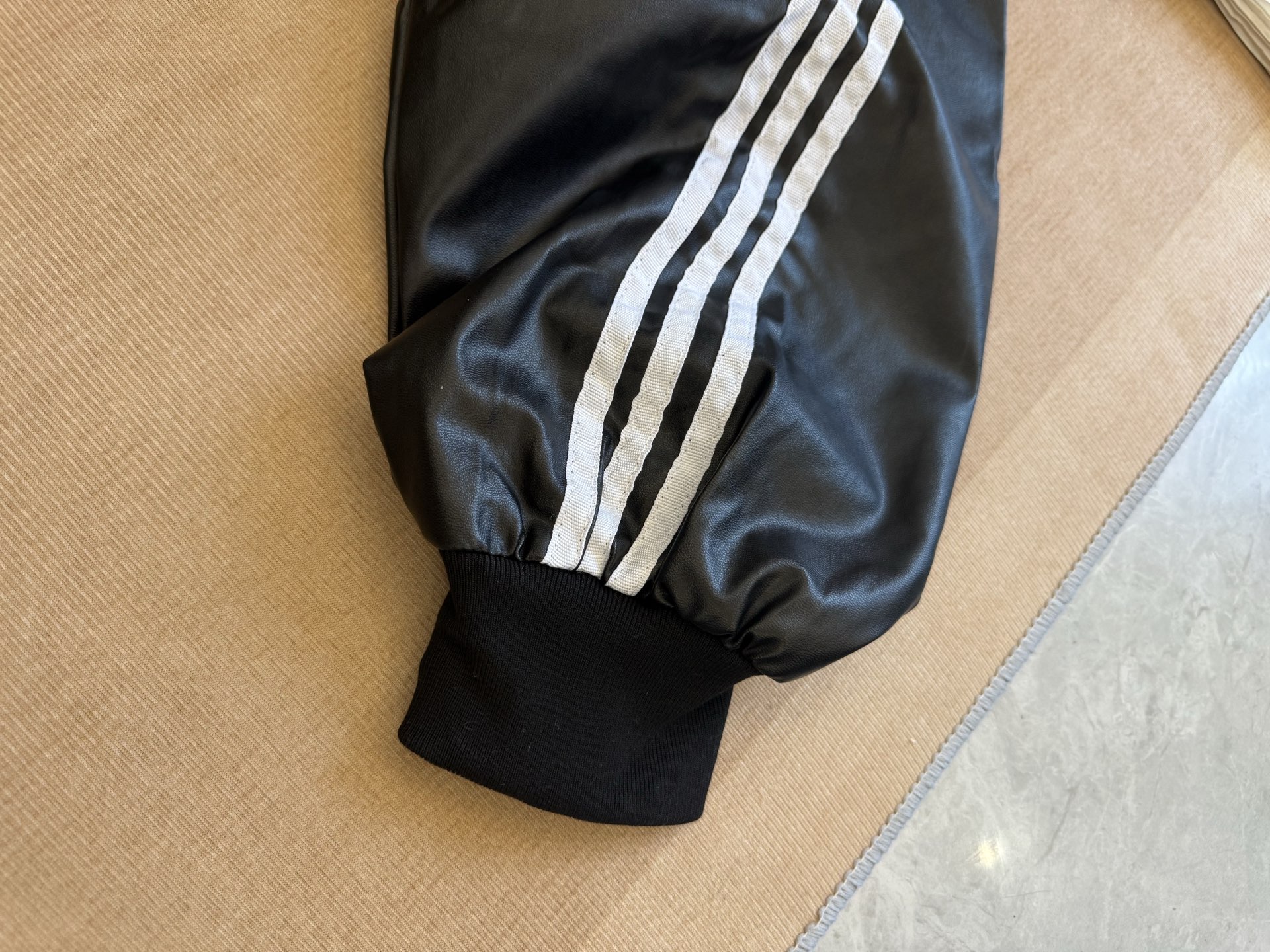 - Details: Full leather patchwork, detachable hooded, classic Trefoil logo