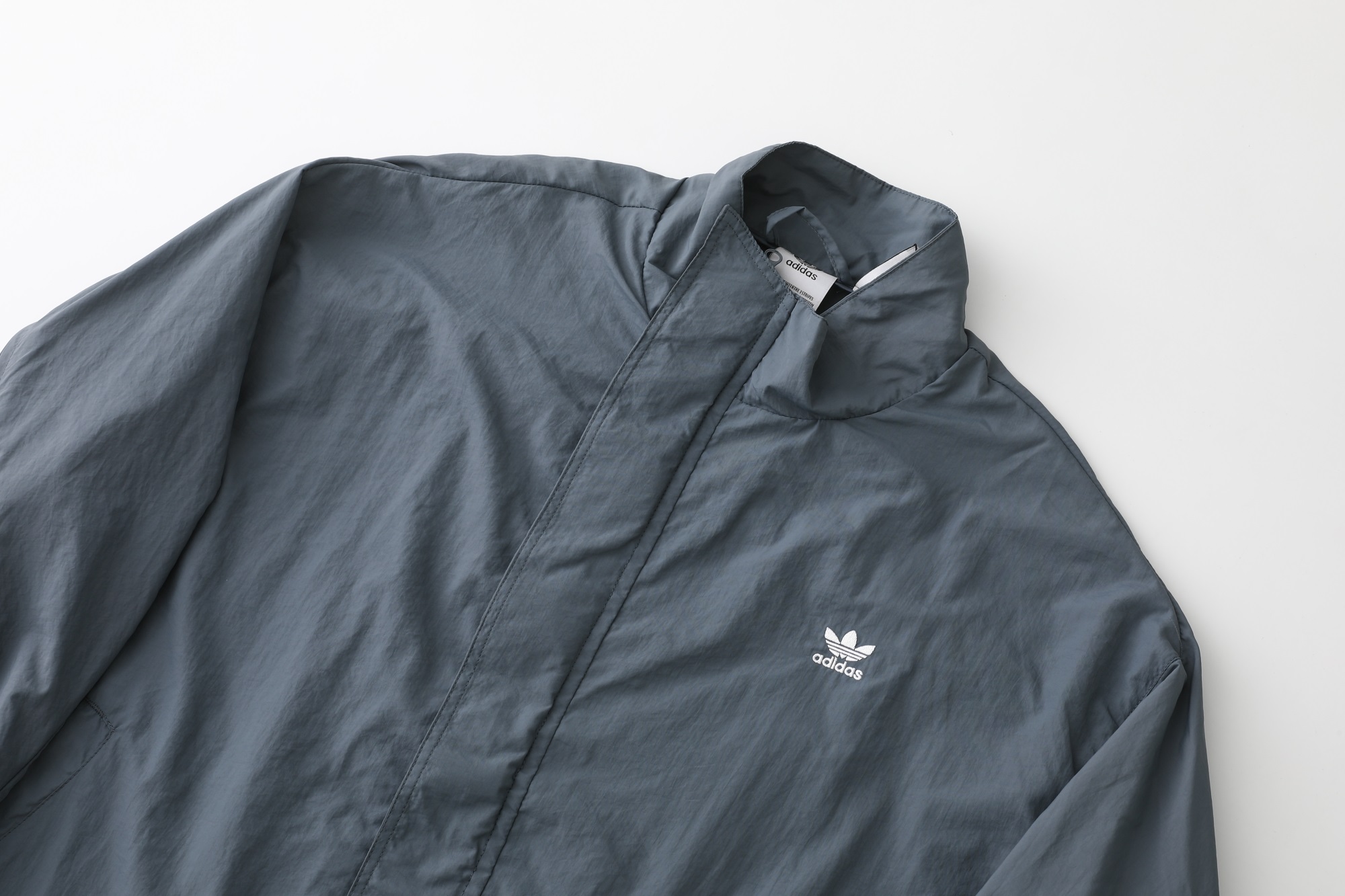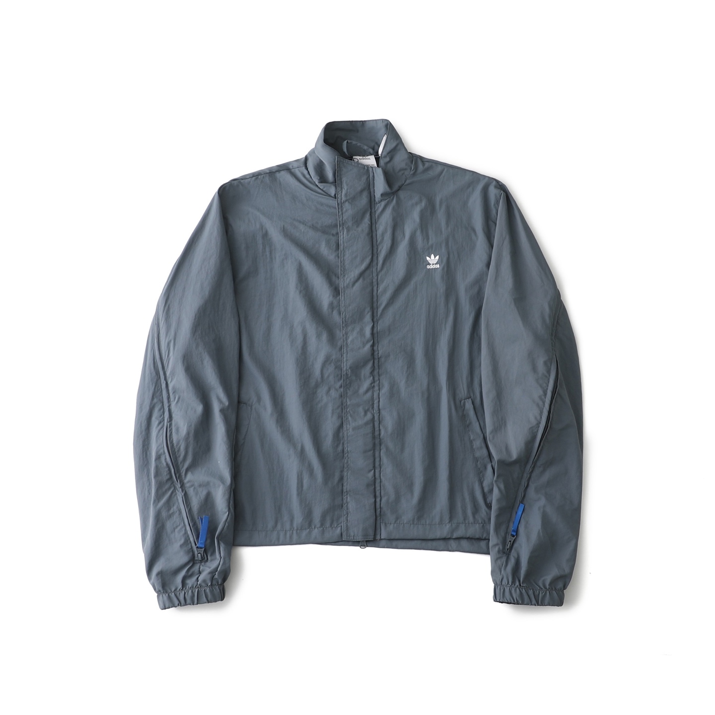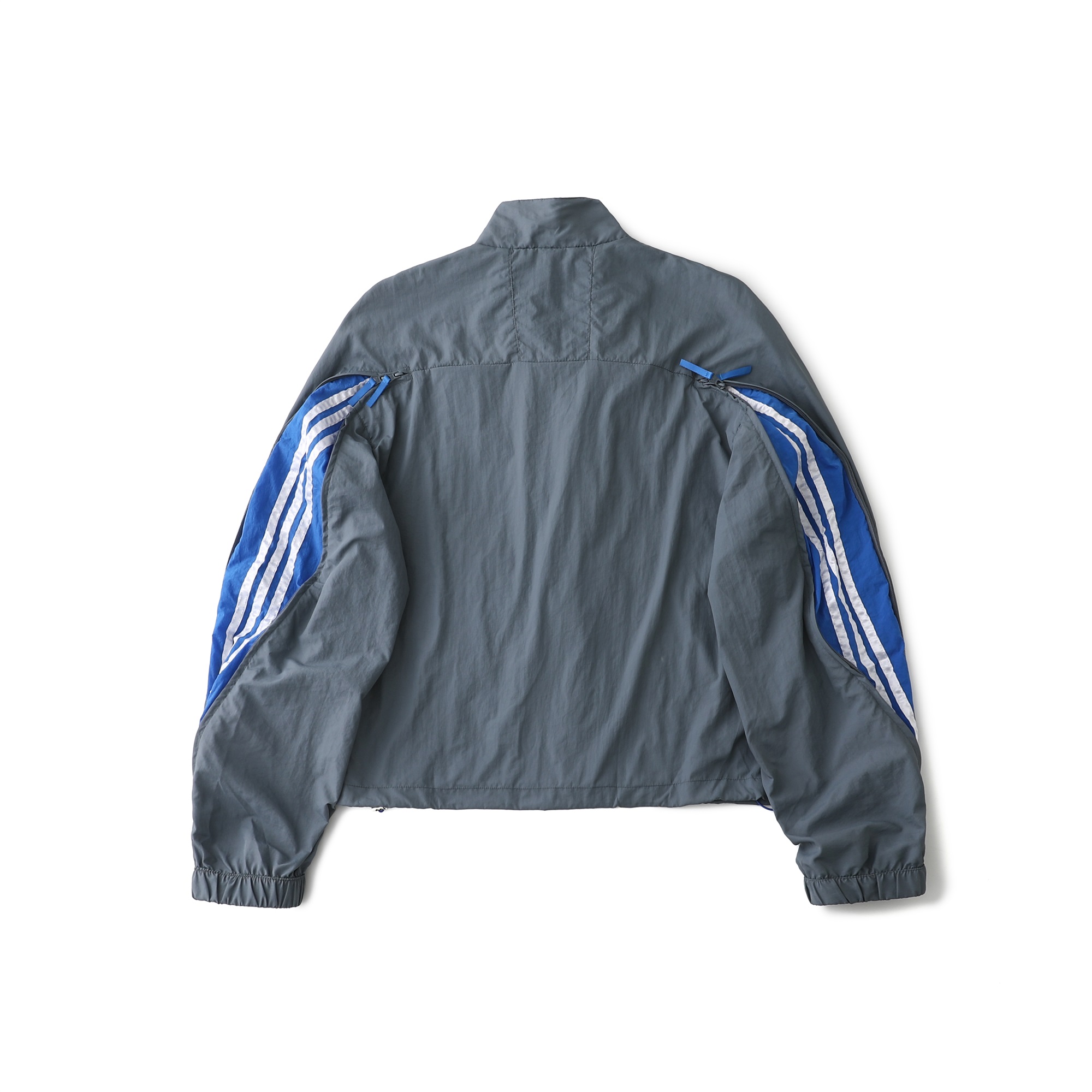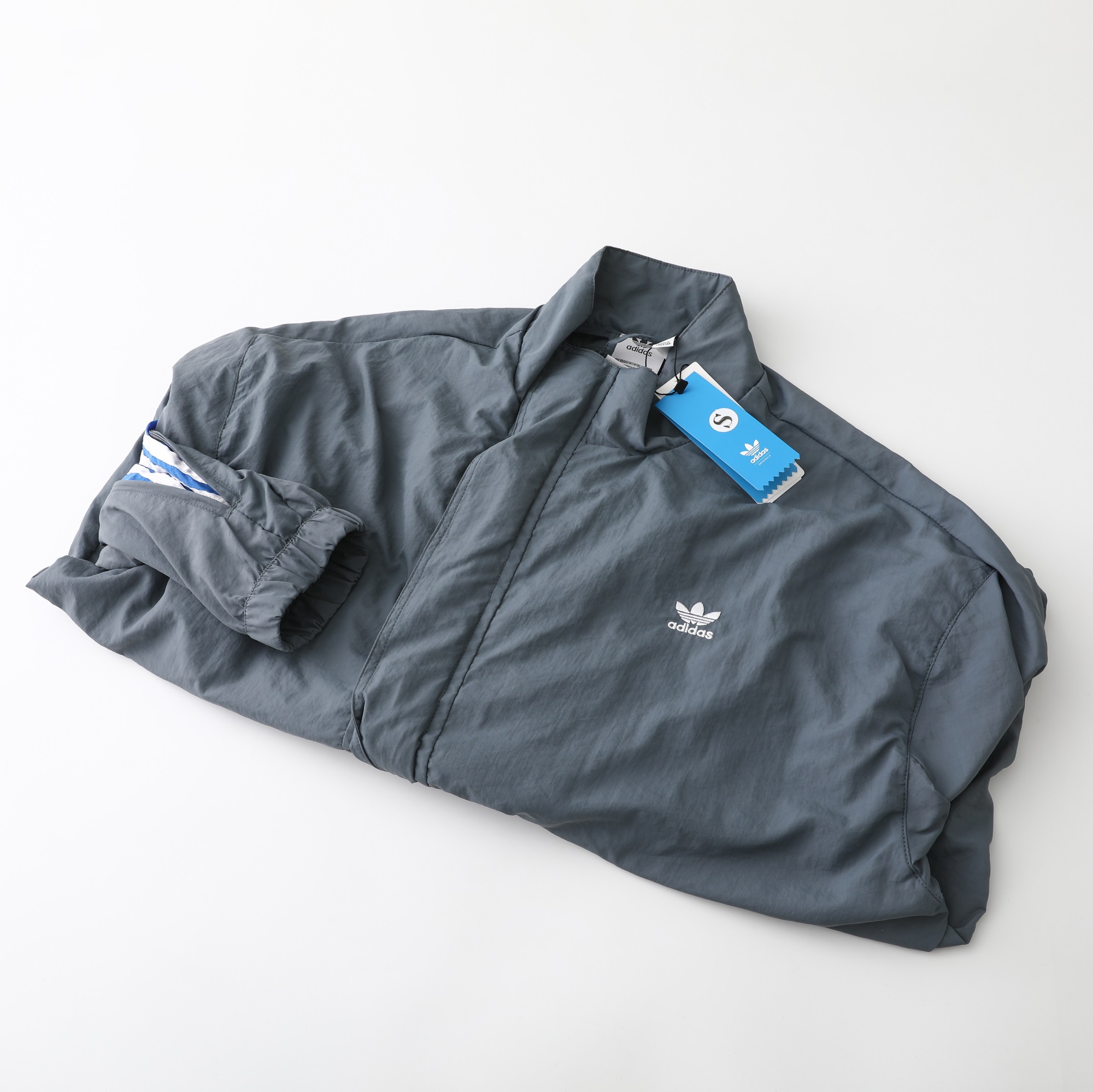 - Jacket Features: Full zip closure, stand collar, subtle three-stripe detail