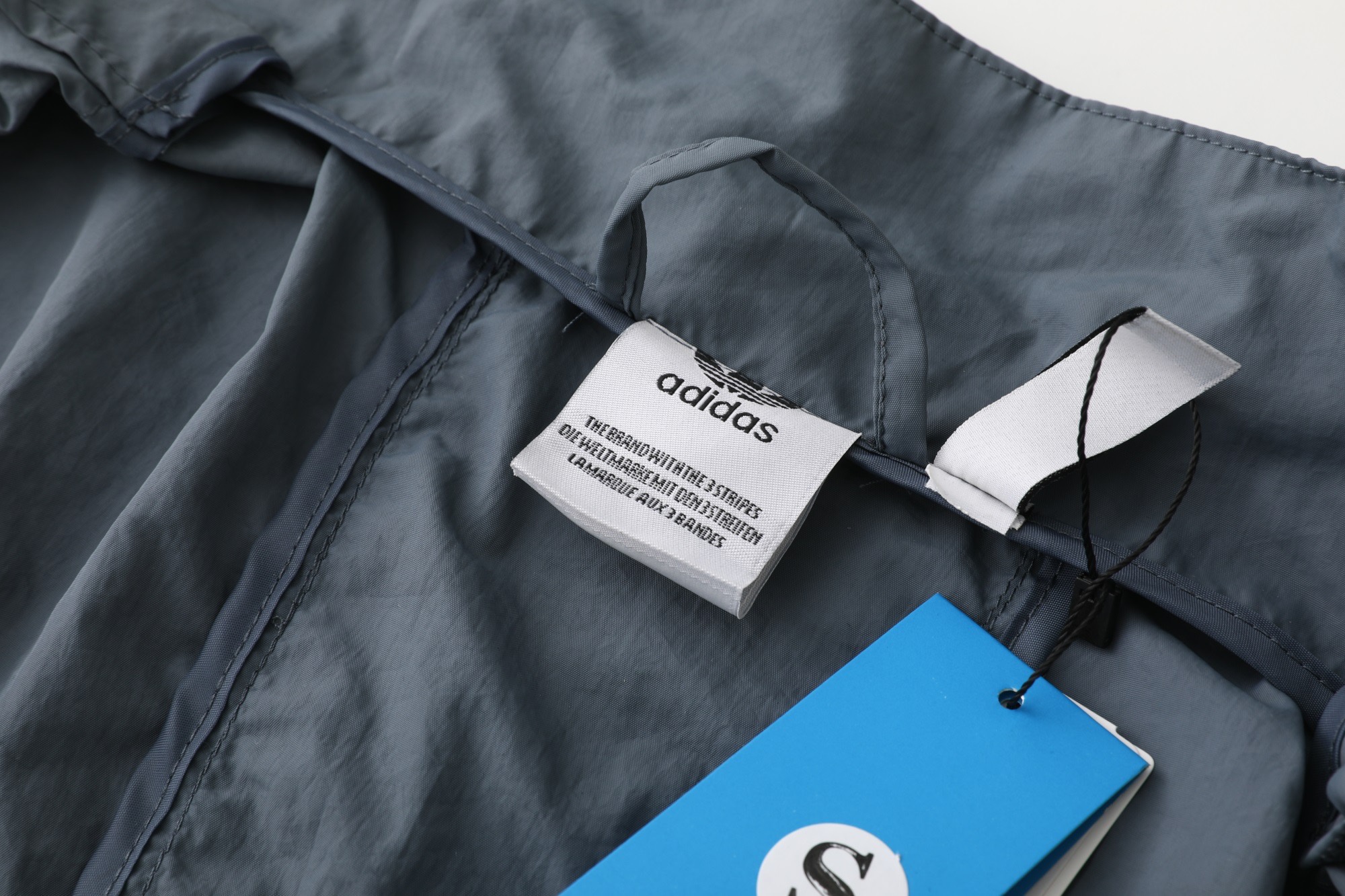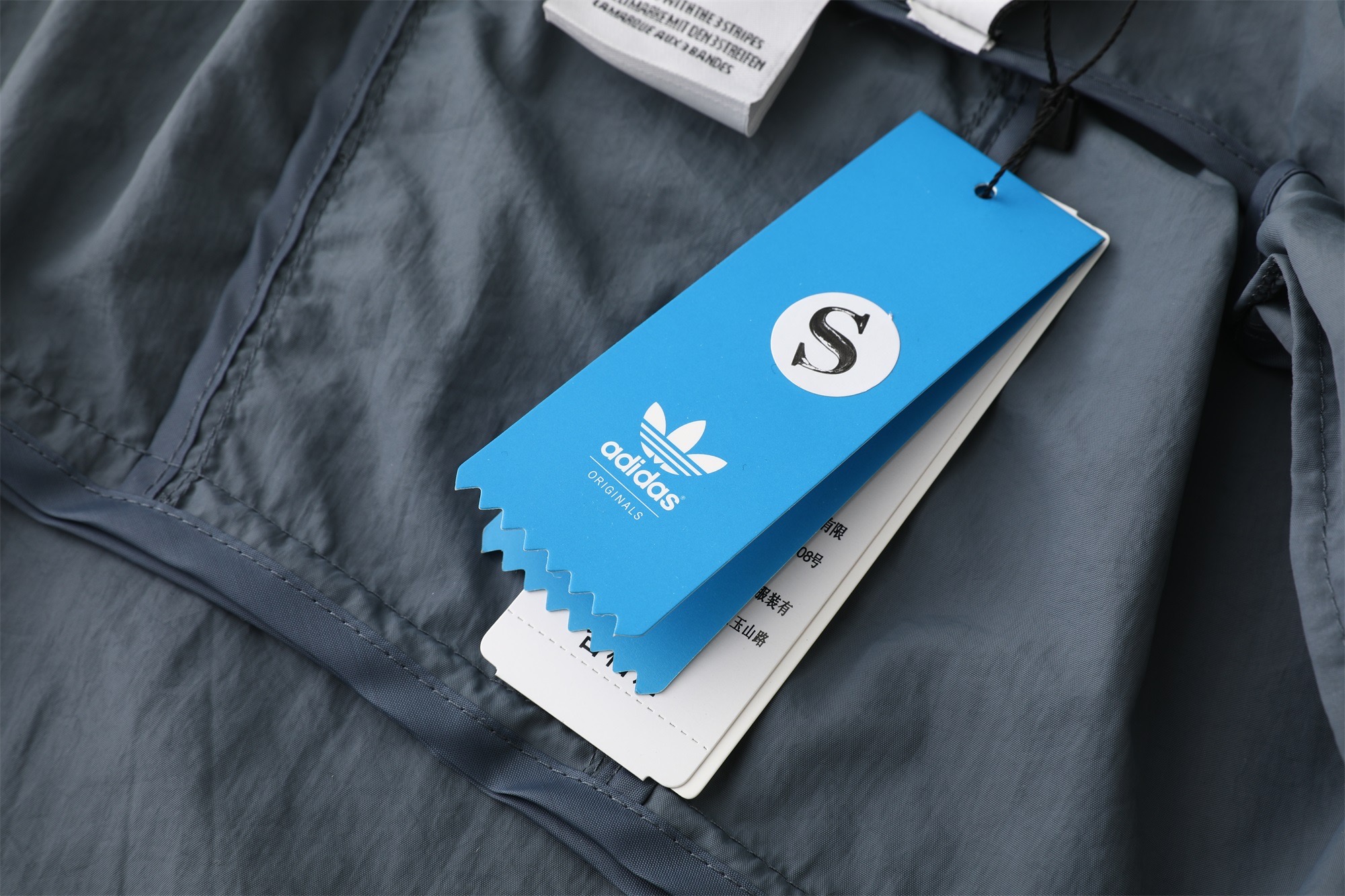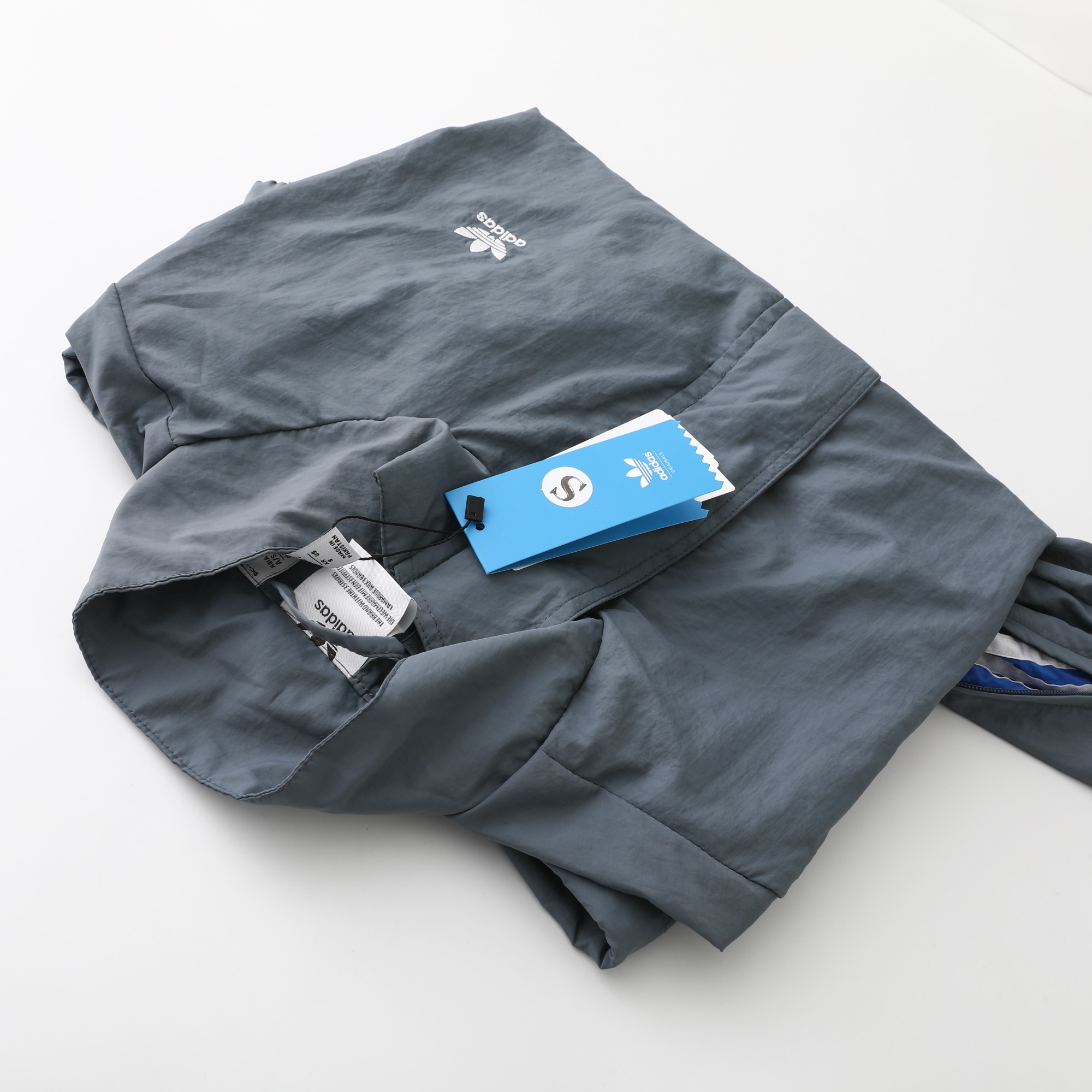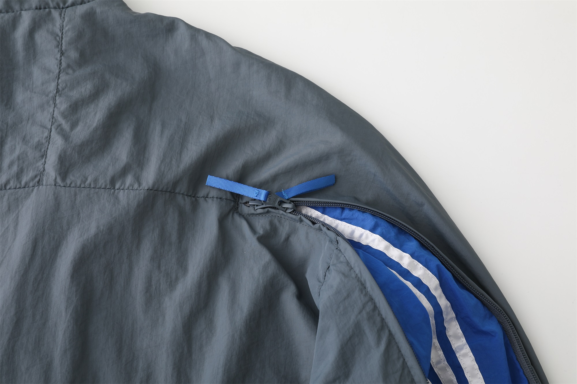 - Jacket Features: Full zip closure, stand collar, subtle three-stripe detail