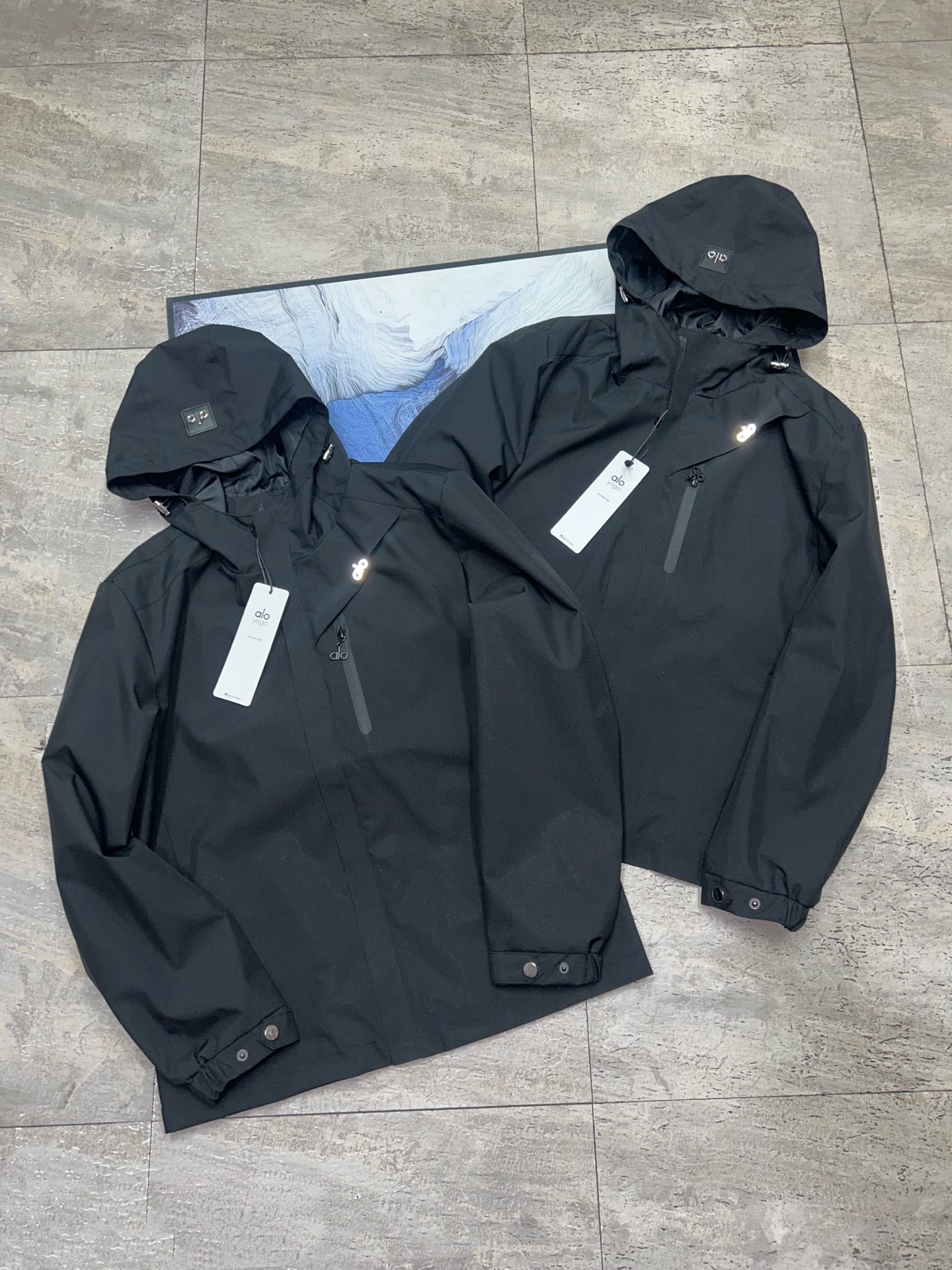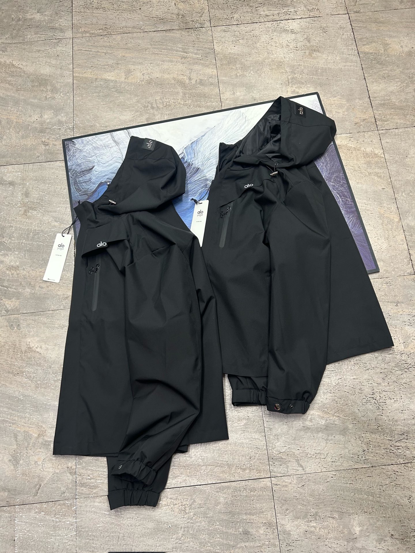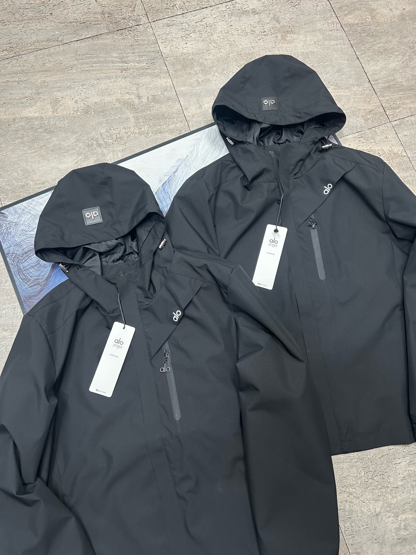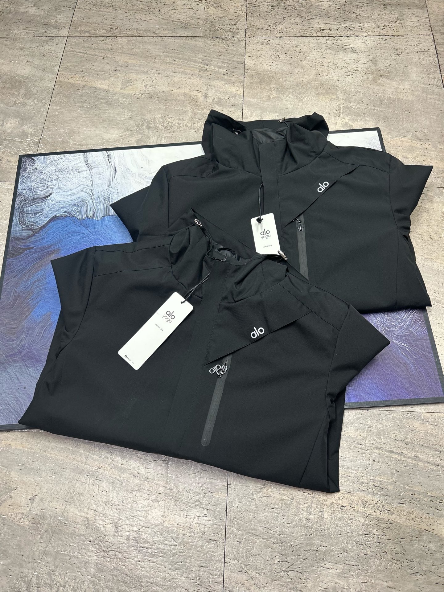 Stay protected in style with this Alo hooded softshell jacket. Windproof, waterproof, and designed for outdoor adventures. Perfect for hiking and everyday wear.
