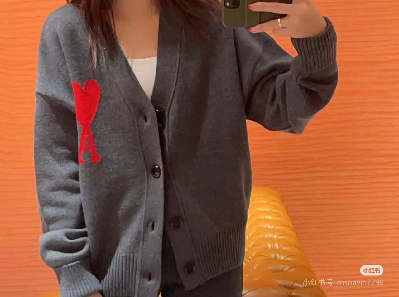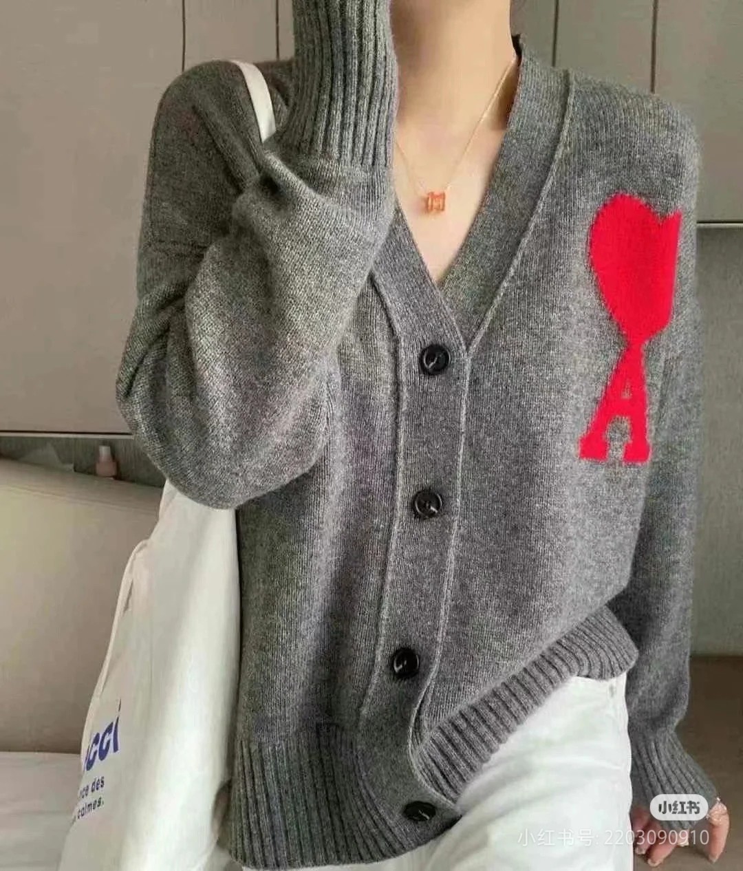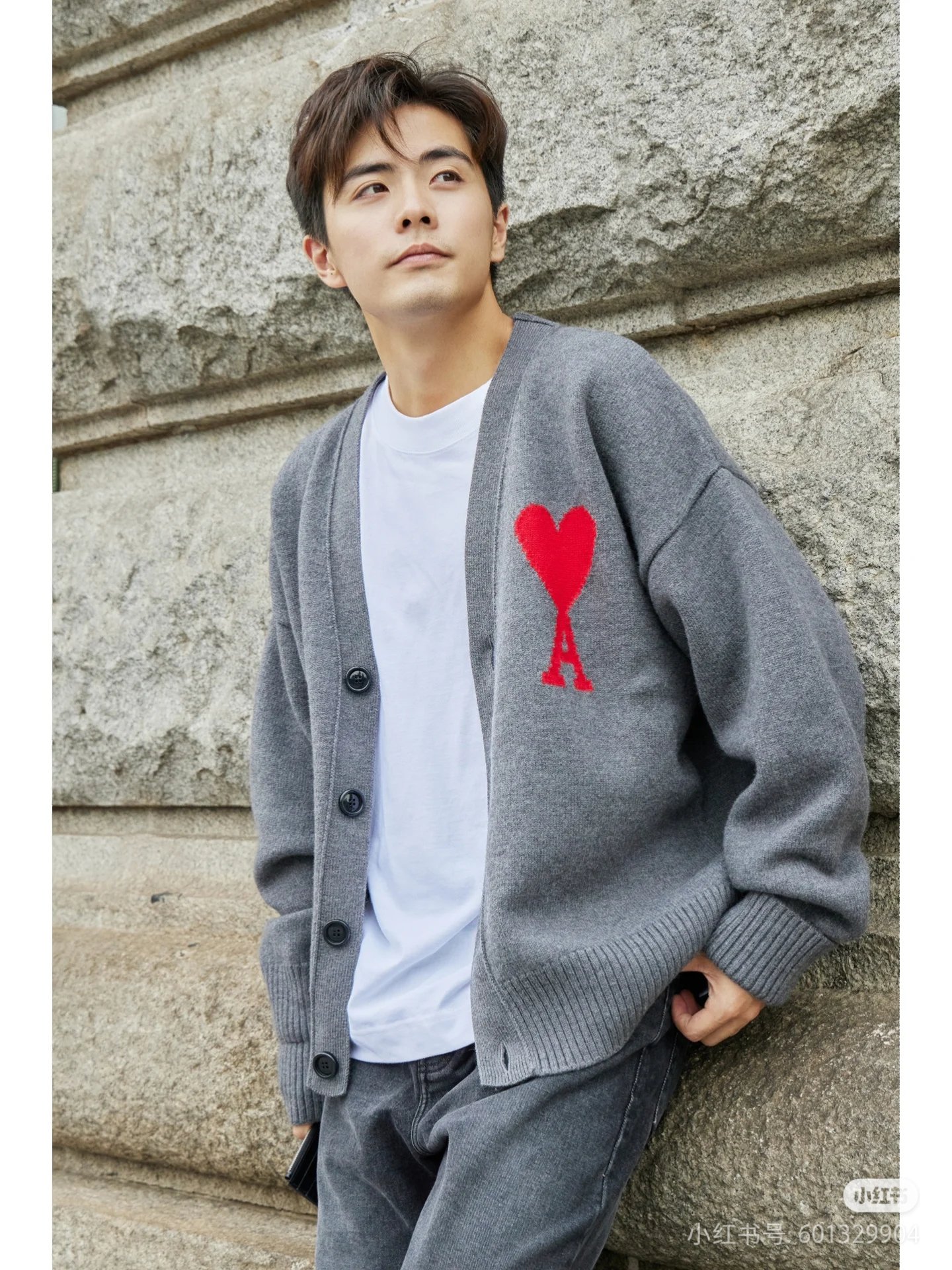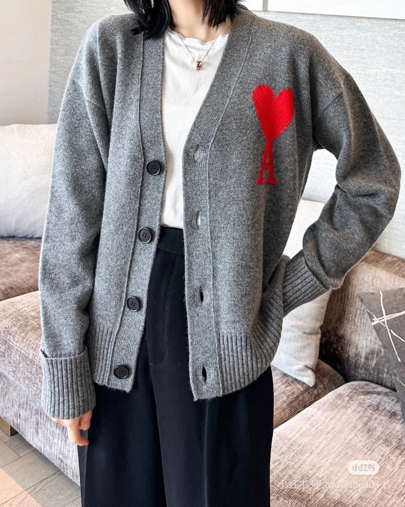 AMI Classic Cardigan with Ami de Coeur Patch - Stylish and Comfortable