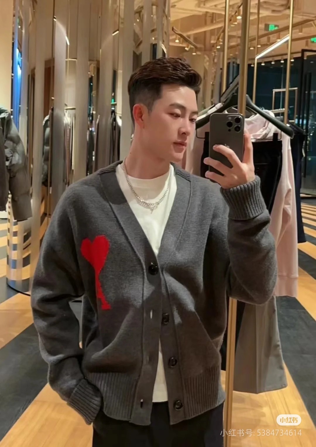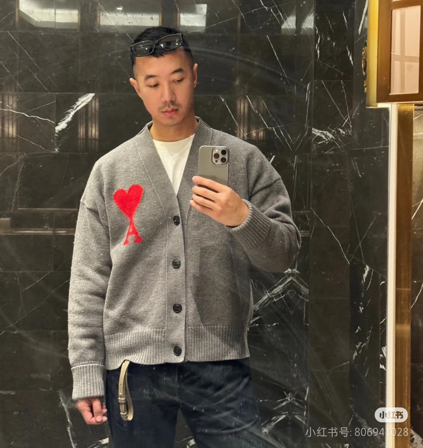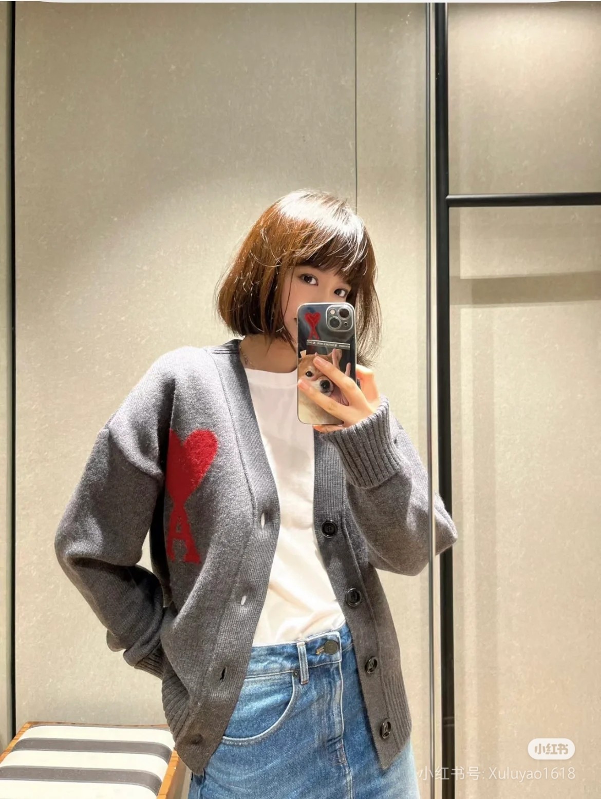 AMI Classic Cardigan with Ami de Coeur Patch - Stylish and Comfortable
