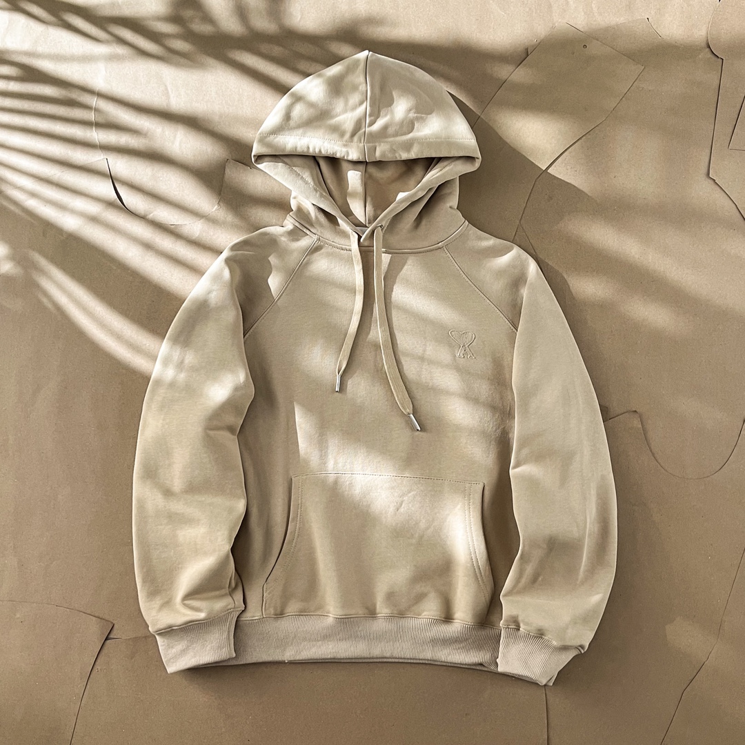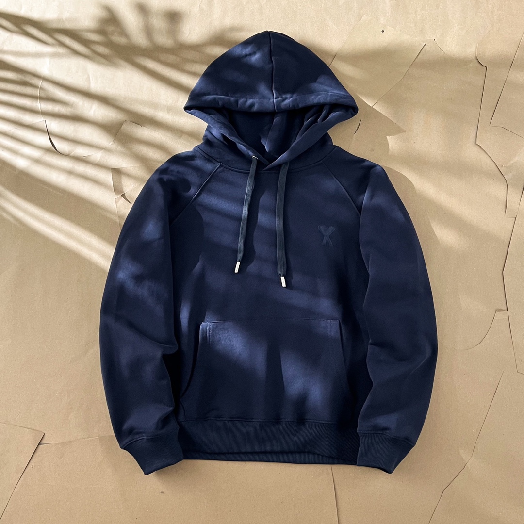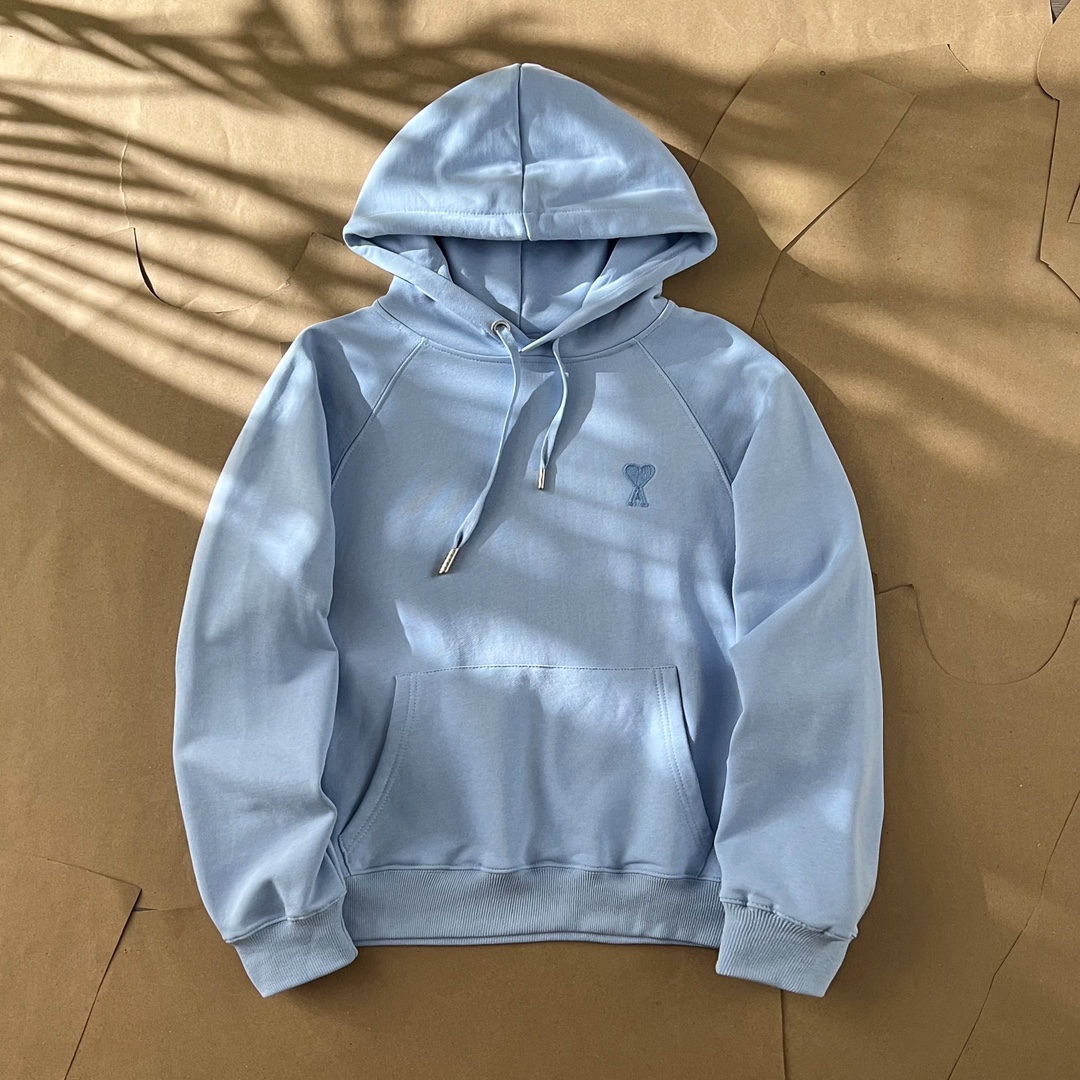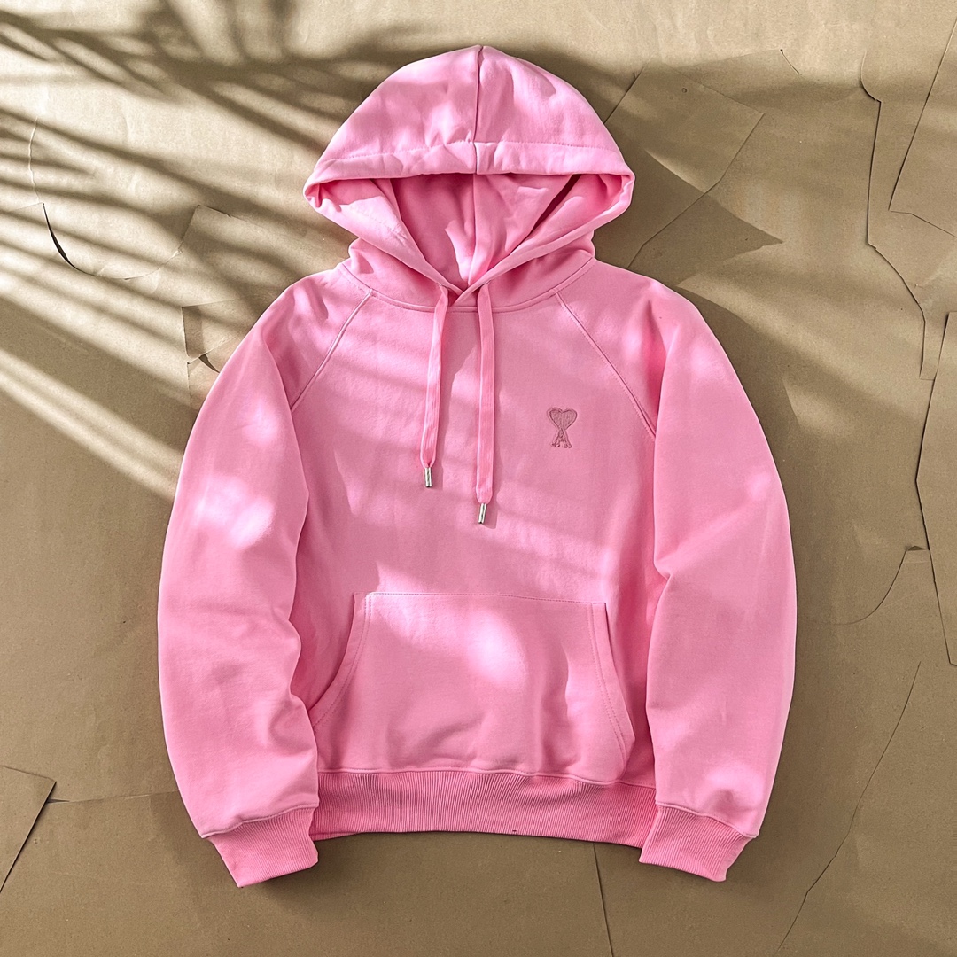 Ami Paris Heart Logo Embroidered Hoodie - Unisex Fleece Sweatshirt