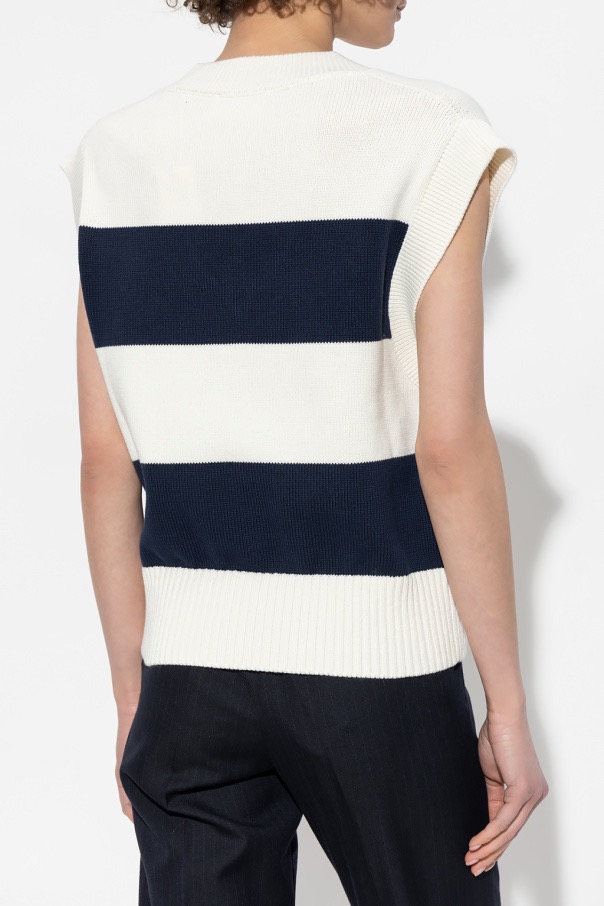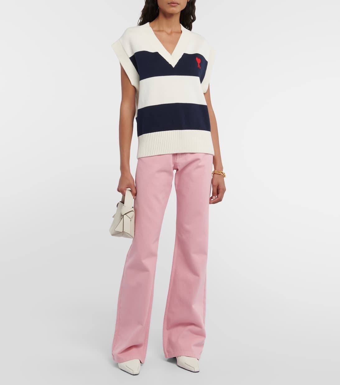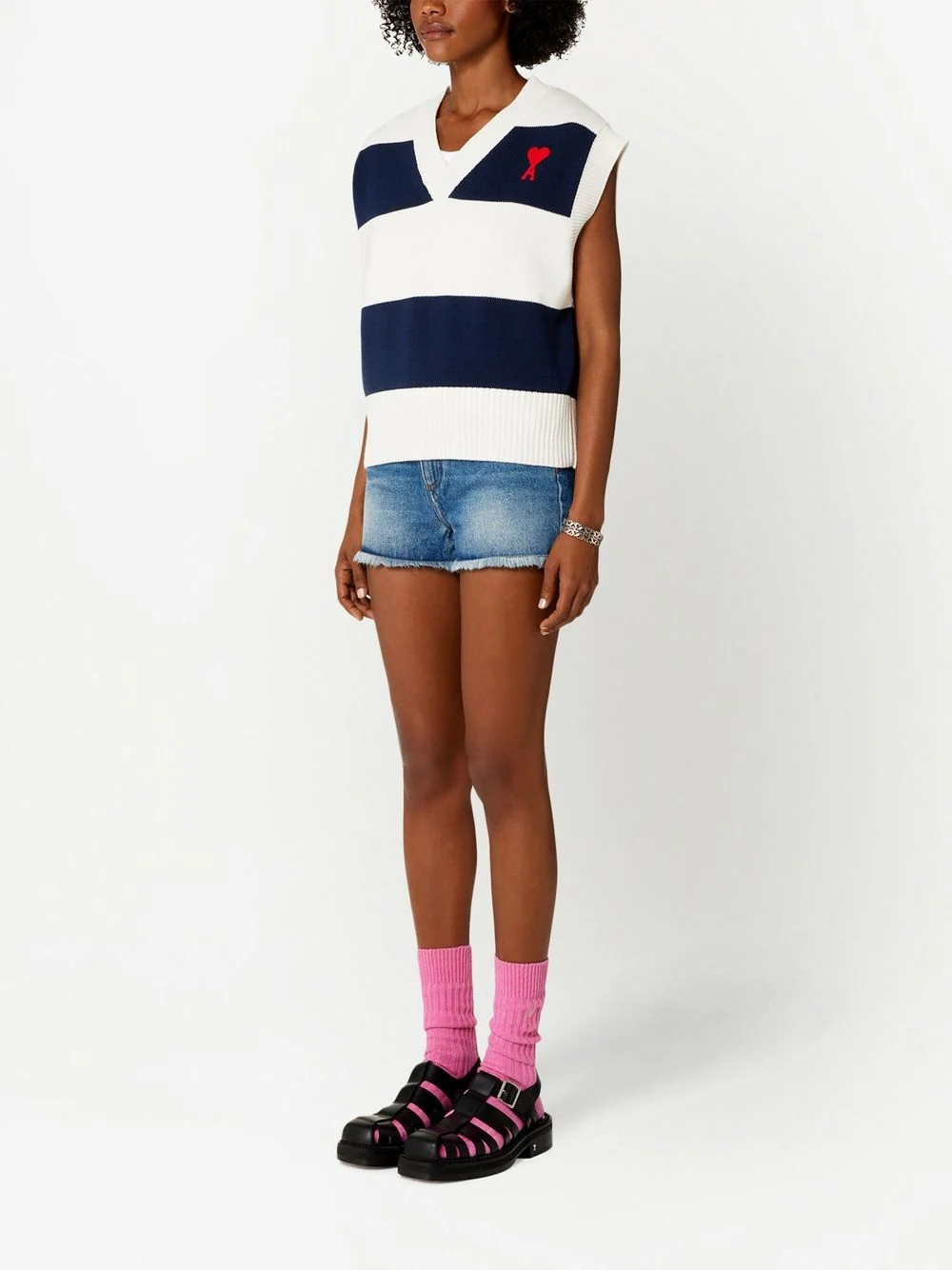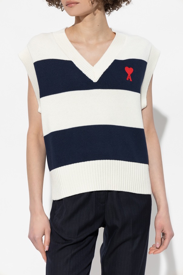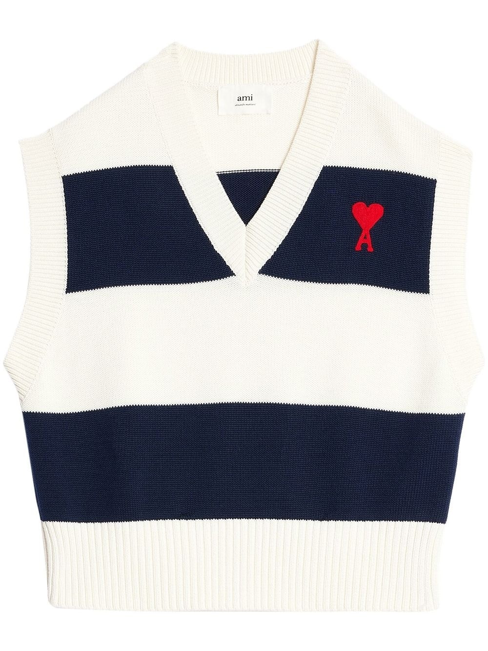 AMI PARIS Striped Knit Vest with Embroidered Heart Logo - Unisex Style