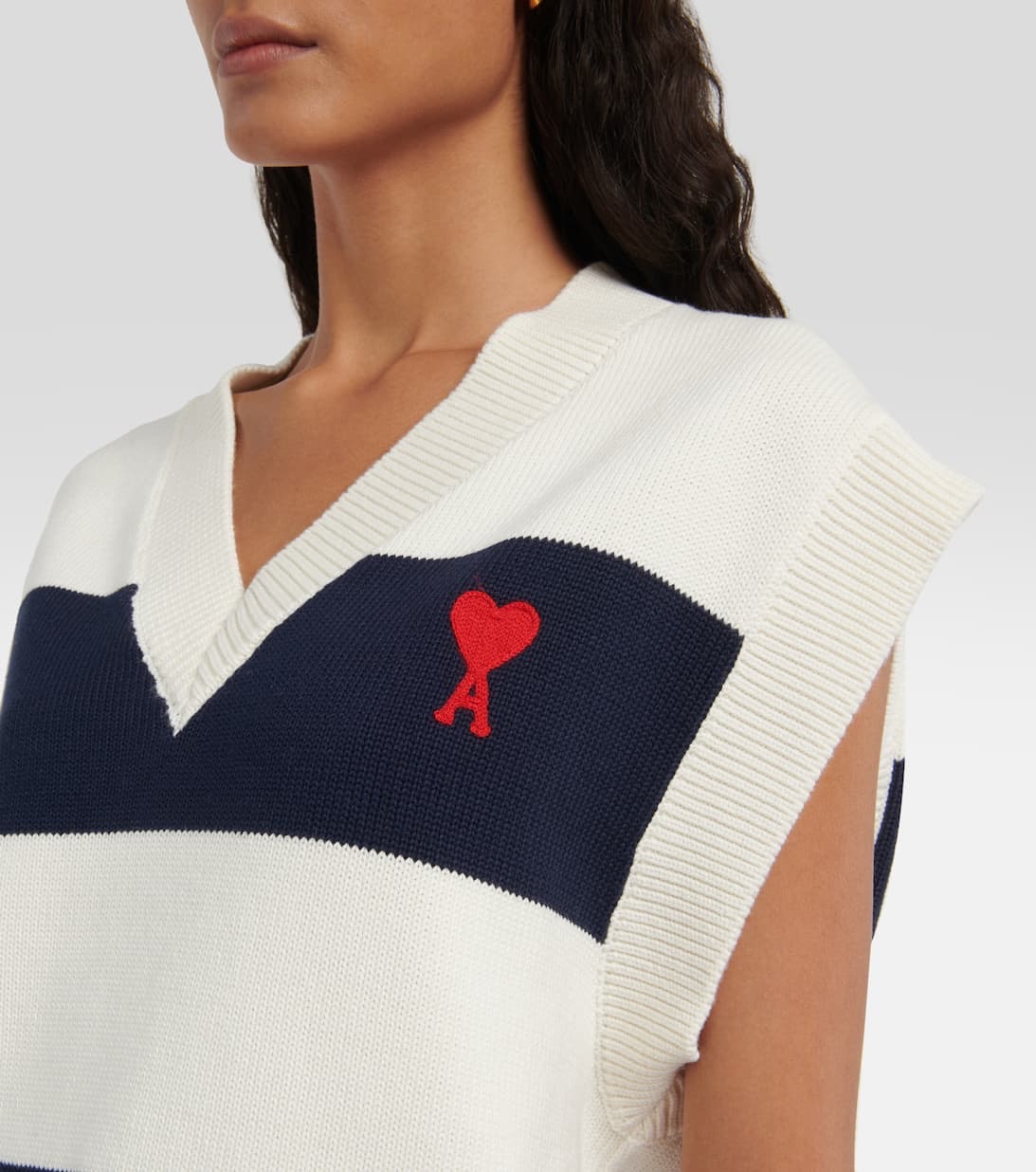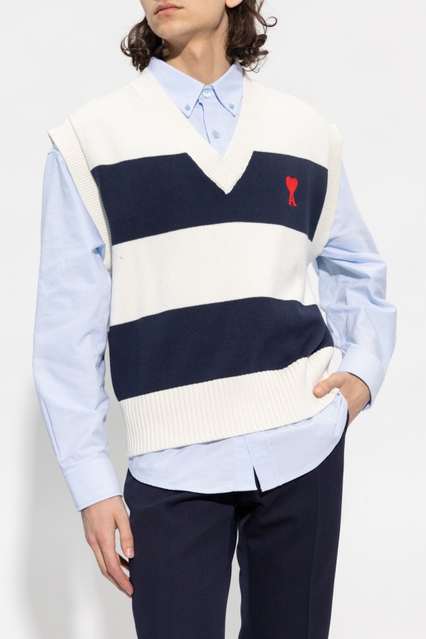 Elevate your style with this AMI PARIS knit vest. Featuring a signature heart logo, striking stripes, and a comfortable, unisex design.