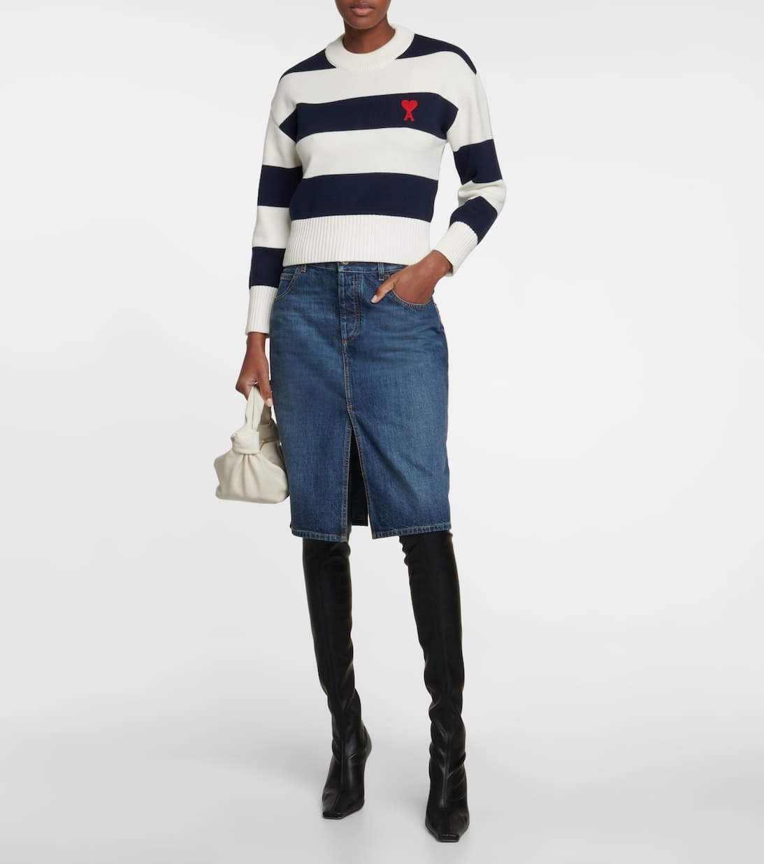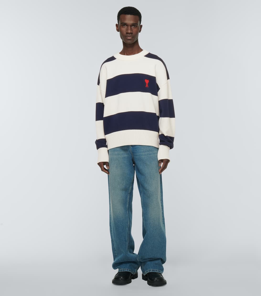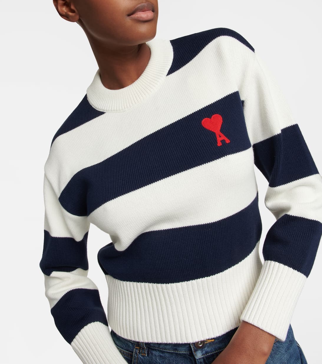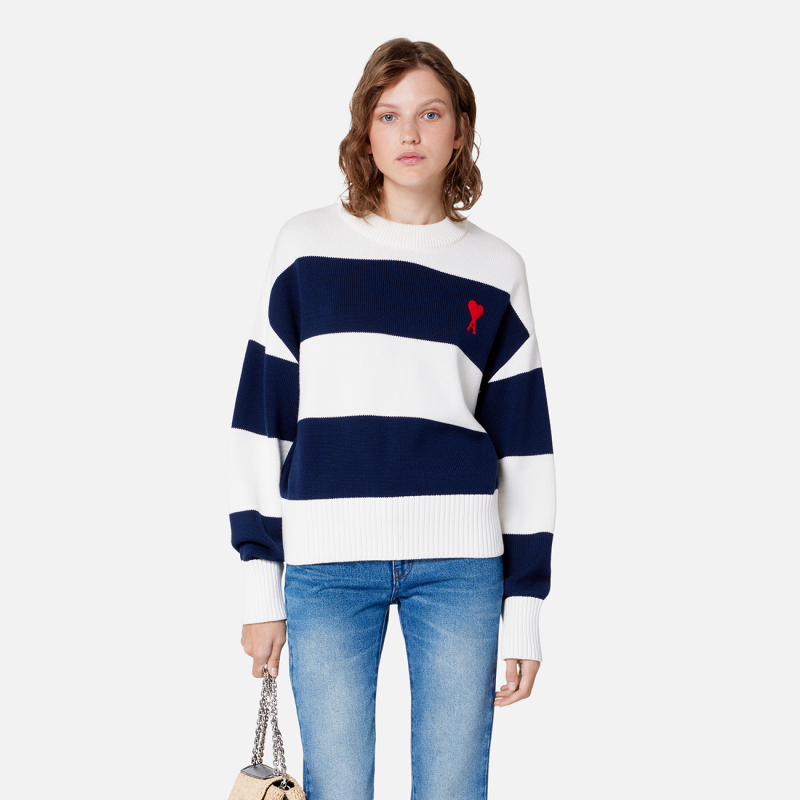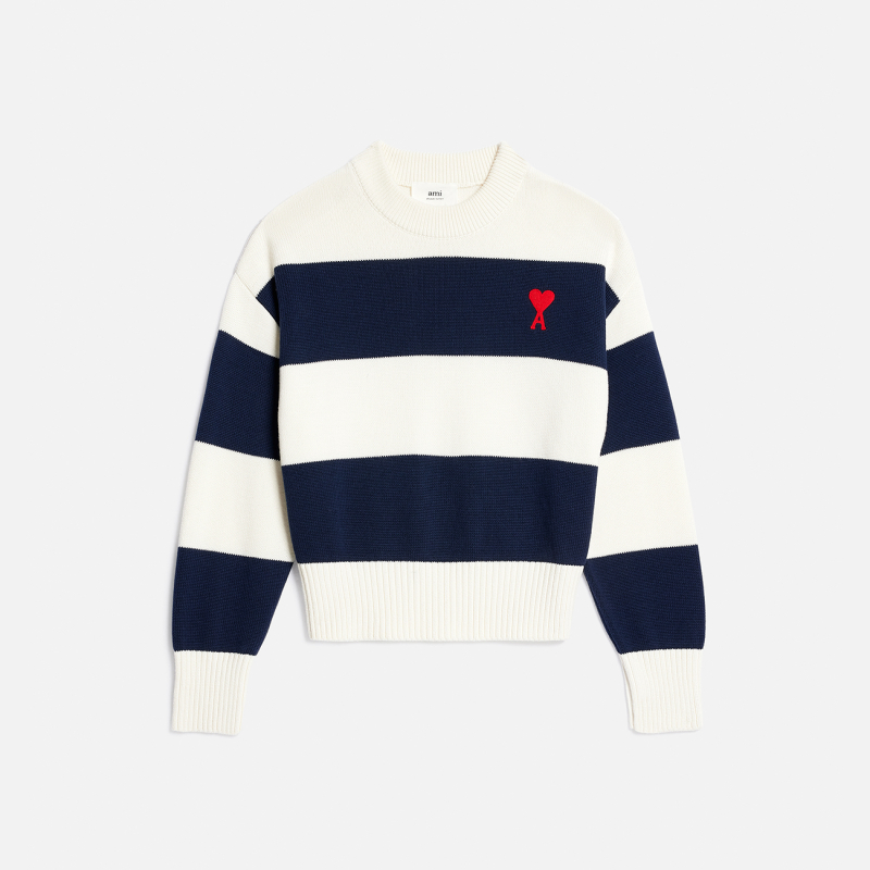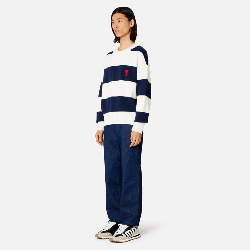 AMI Paris Striped Wool Sweater with Heart Logo - Unisex Boxy Fit