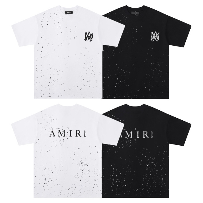 Amiri 2025 S/S Round Neck T-Shirt High Street Loose Splatter-Ink Short Sleeve