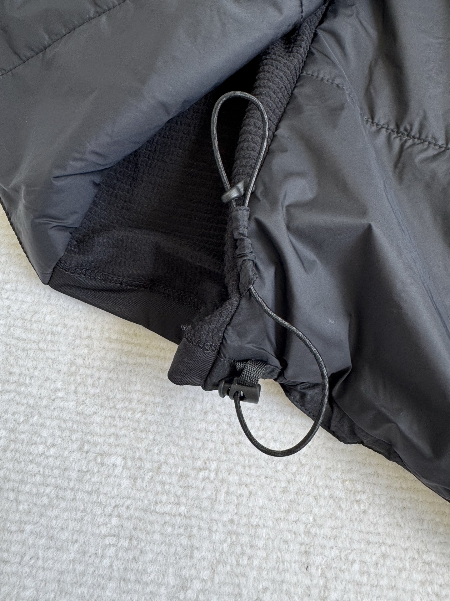 - Material: Tyono 20 denier shell (100% nylon), Coreloft Compact 40 insulation (100% polyester), Torrent 190 side panels (84% polyester, 16% elastane)