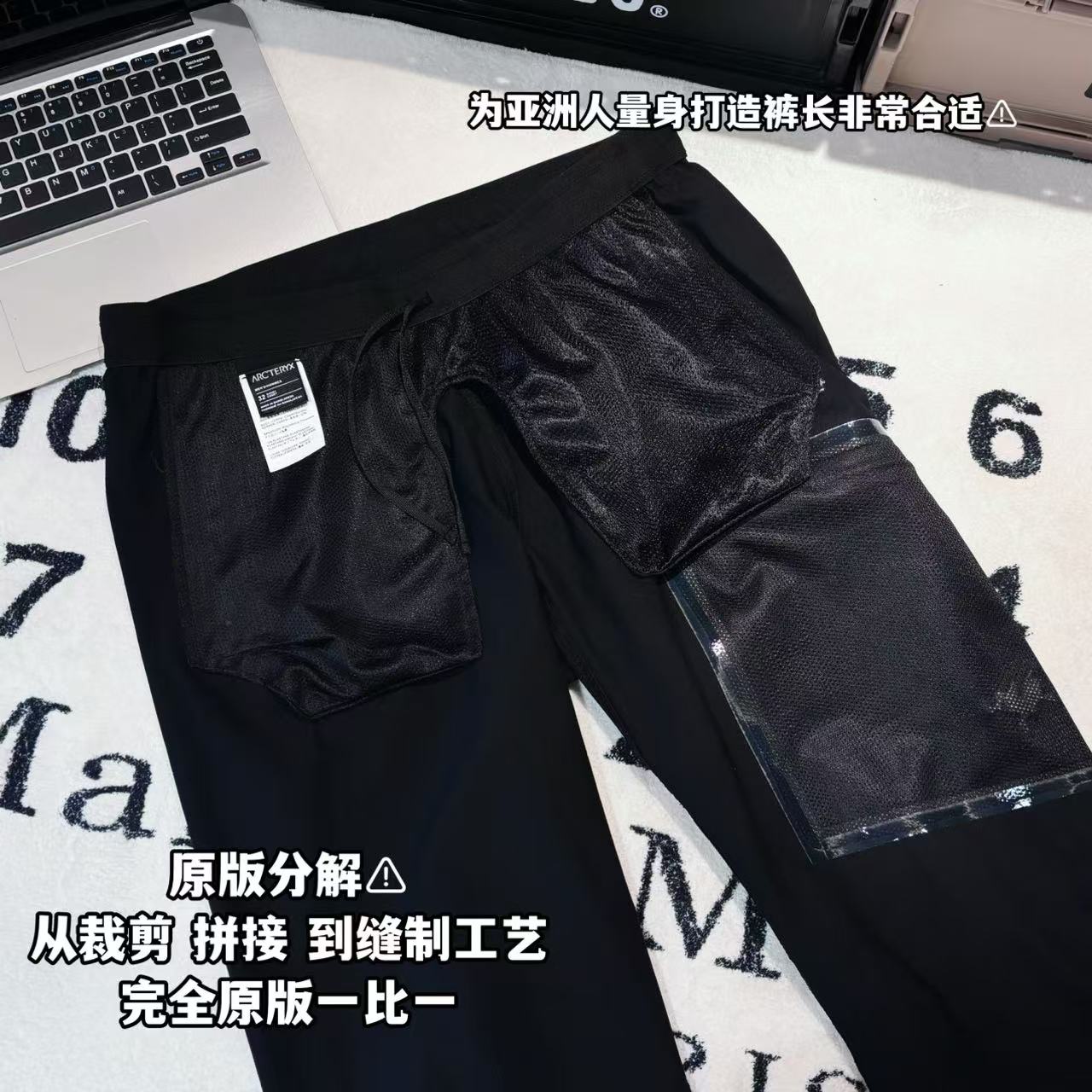 High-density mountaineering fabric, breathable and durable. Four-way stretch, wear-resistant, and water-repellent. Asian fit with adjustable drawstring at the ankle.