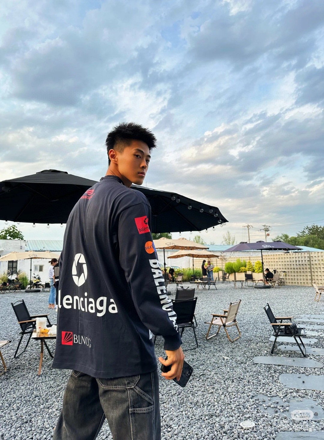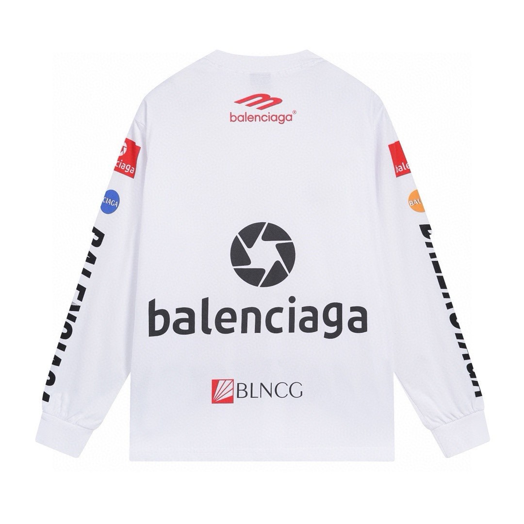 Balenciaga 2025 SS Logo Print Long Sleeve T-Shirt Distressed Finish