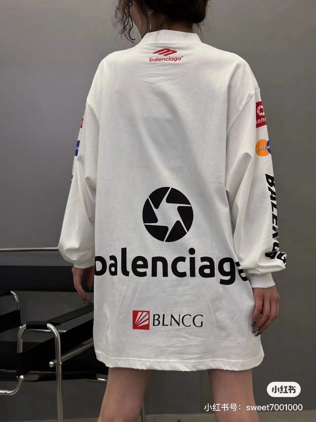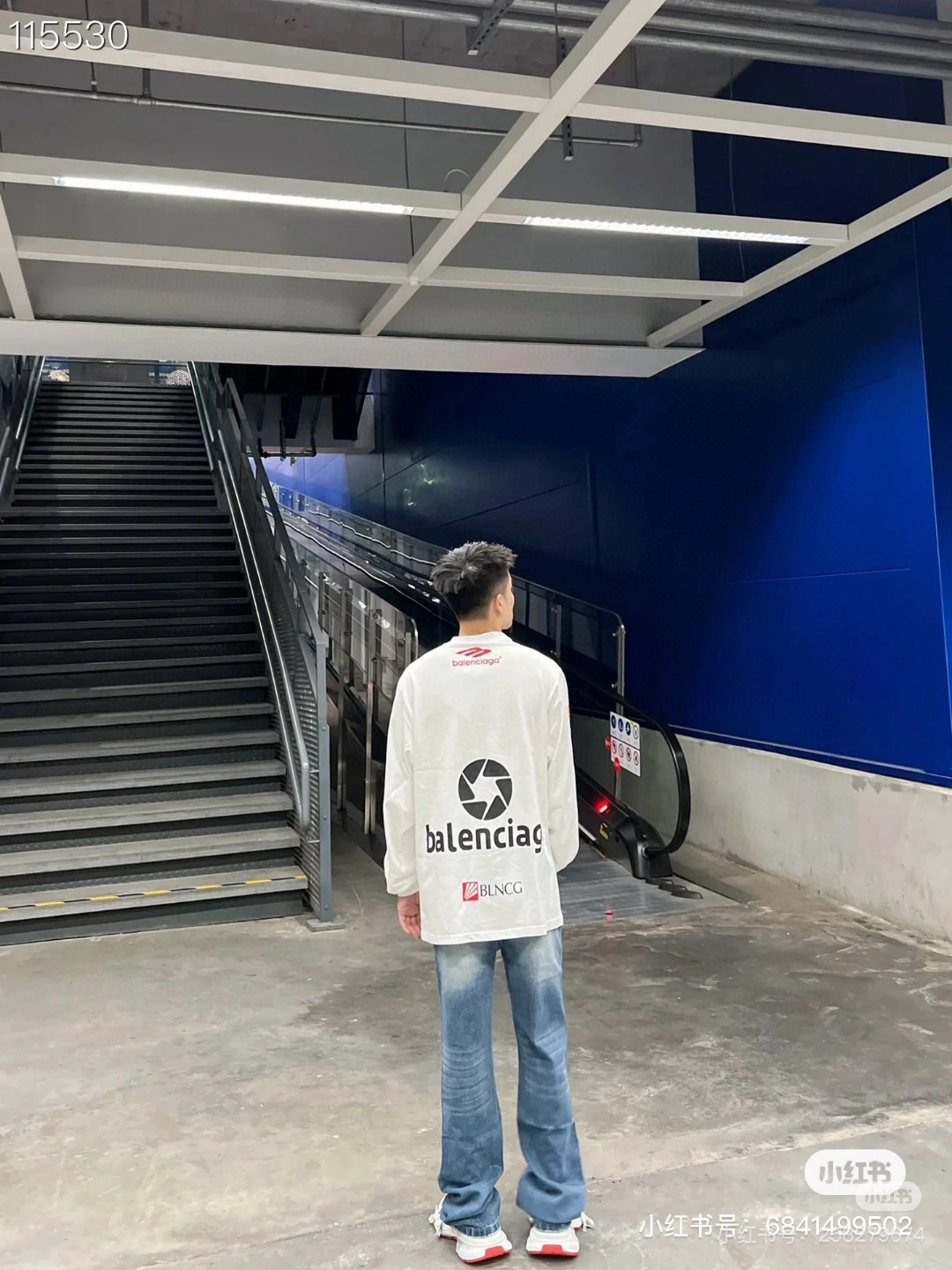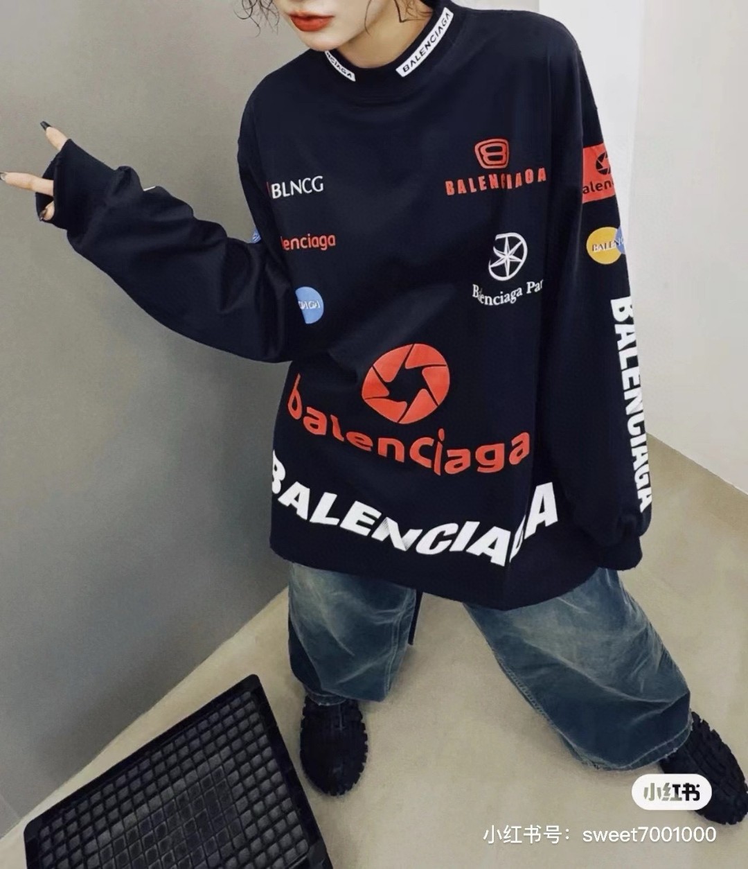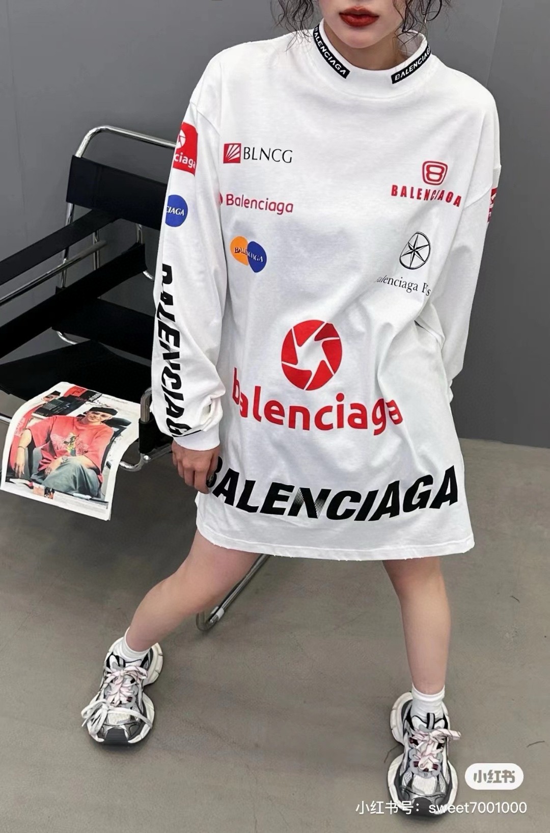 - Design: Multiple Balenciaga logos printed throughout the shirt.