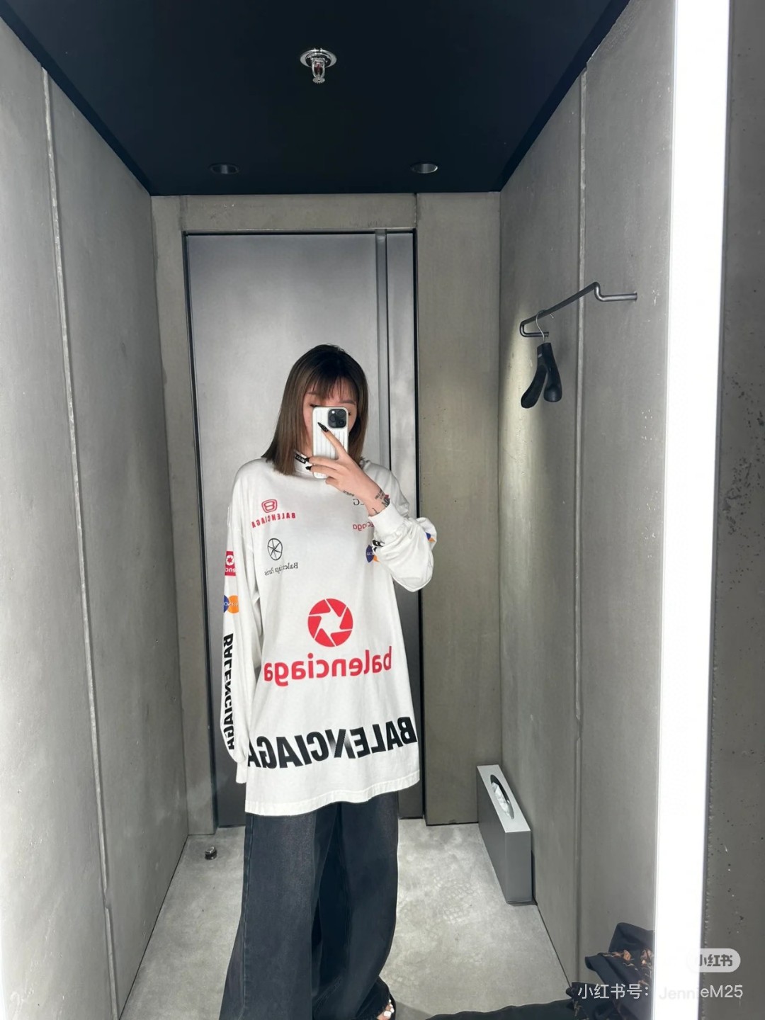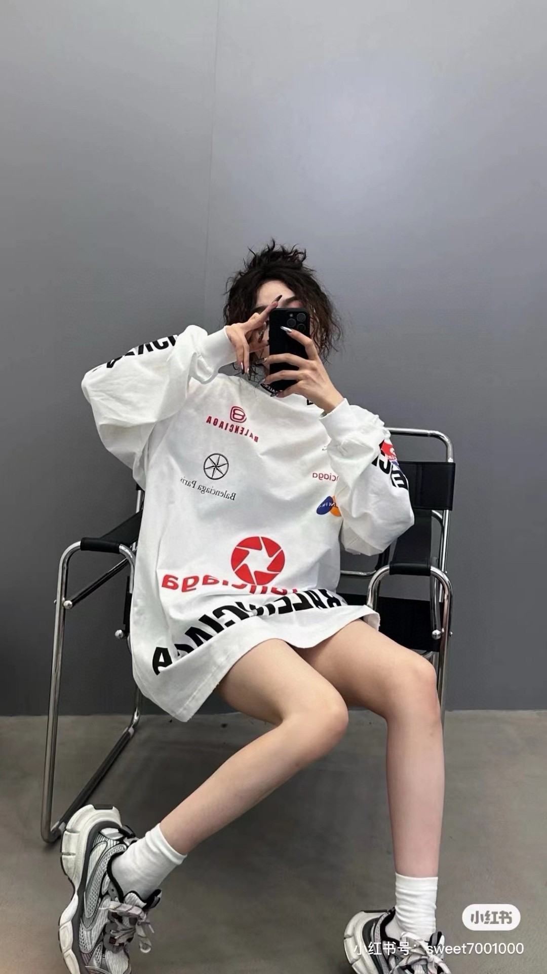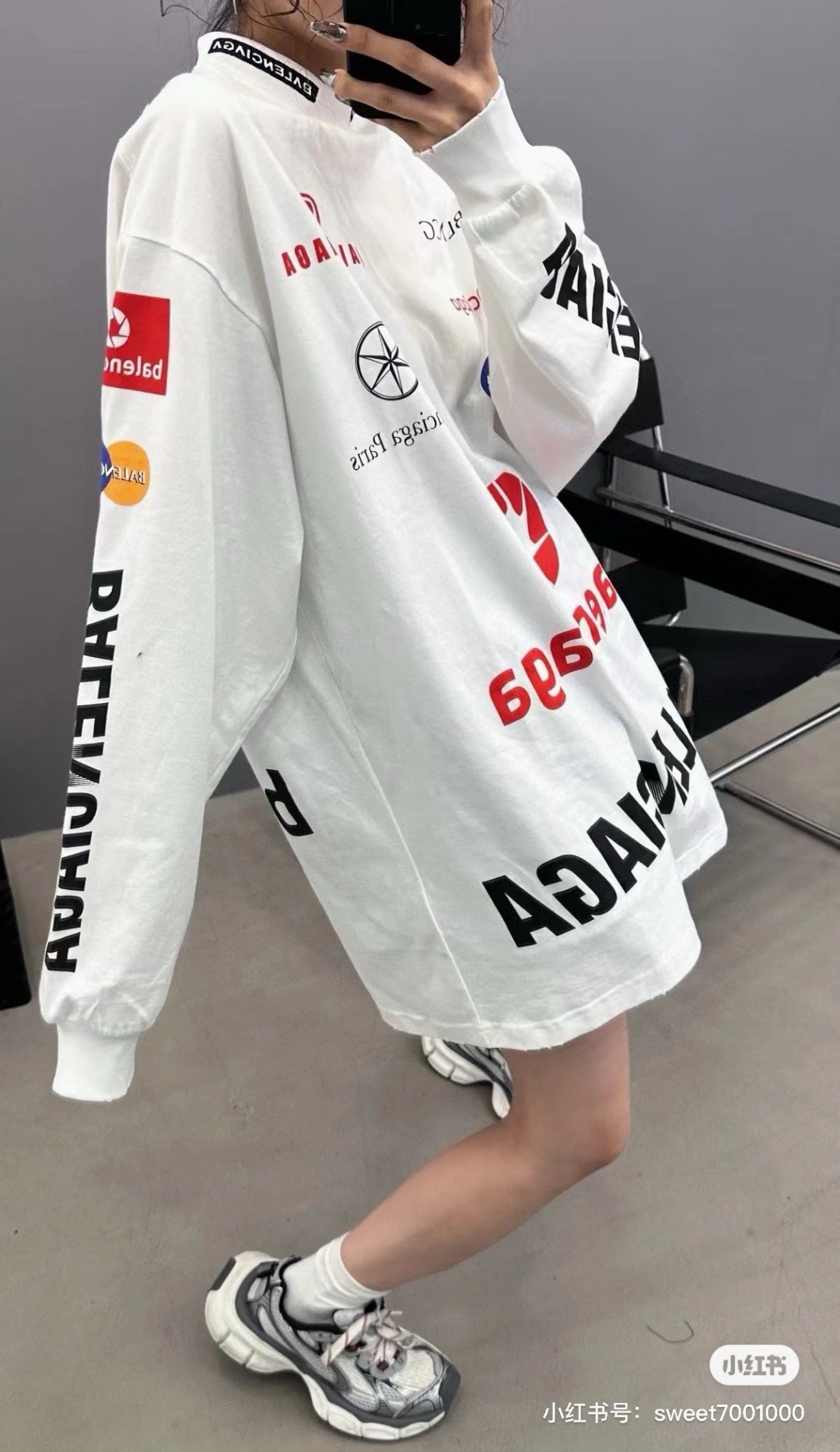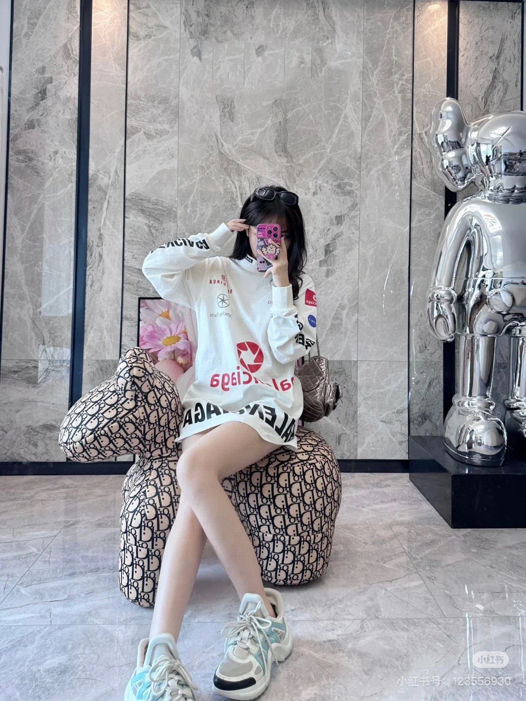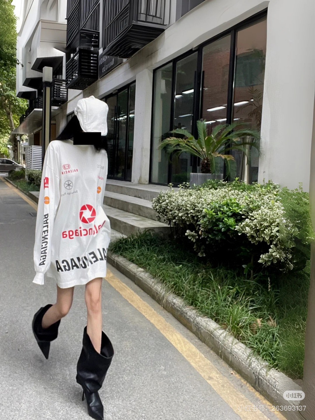 - Design: Multiple Balenciaga logos printed throughout the shirt.