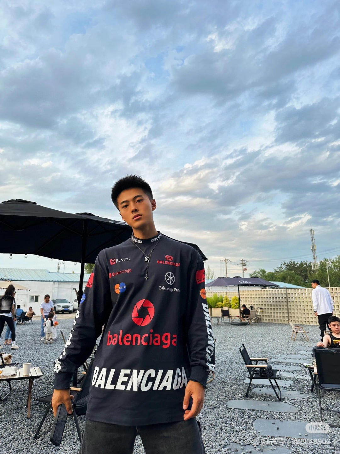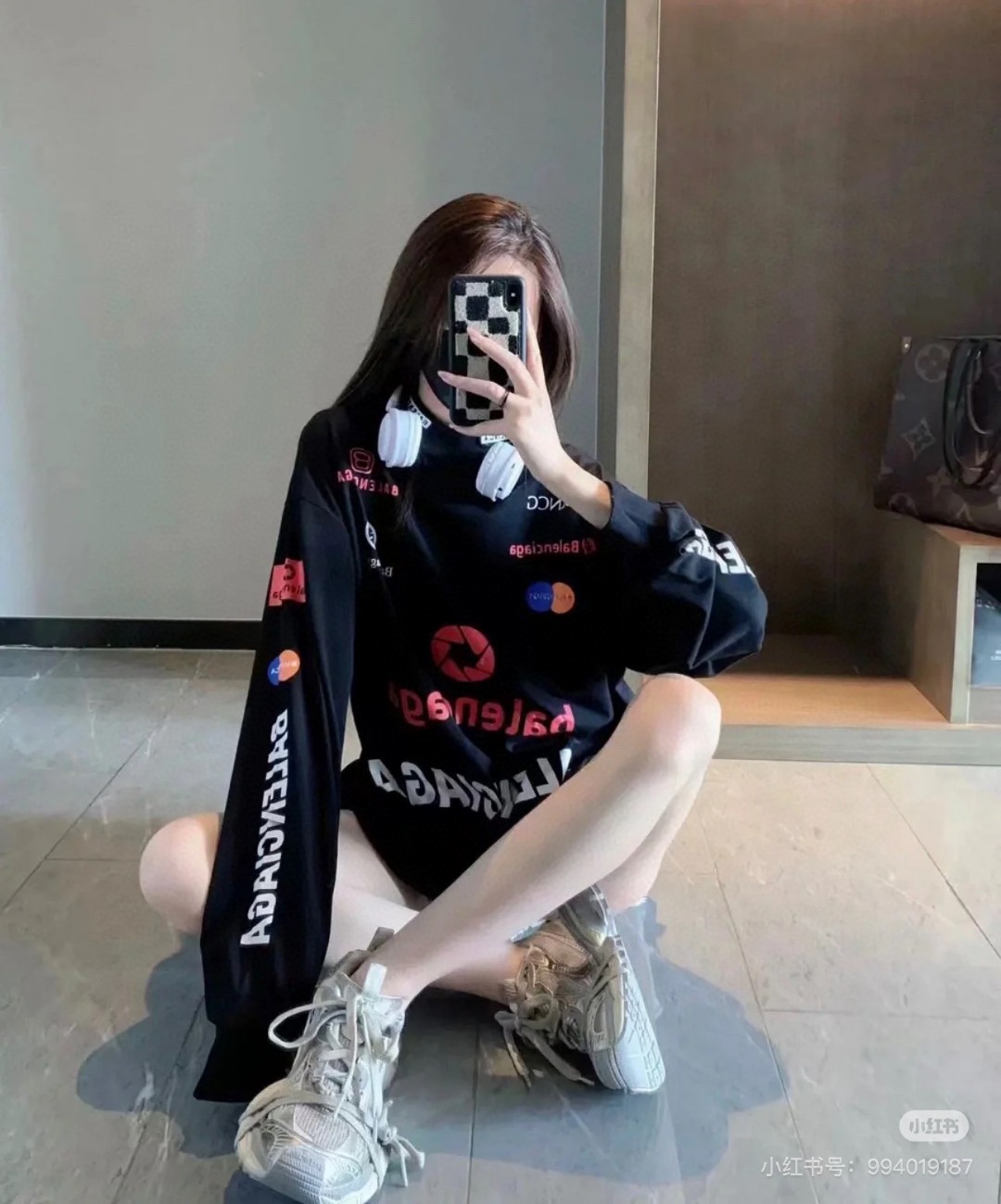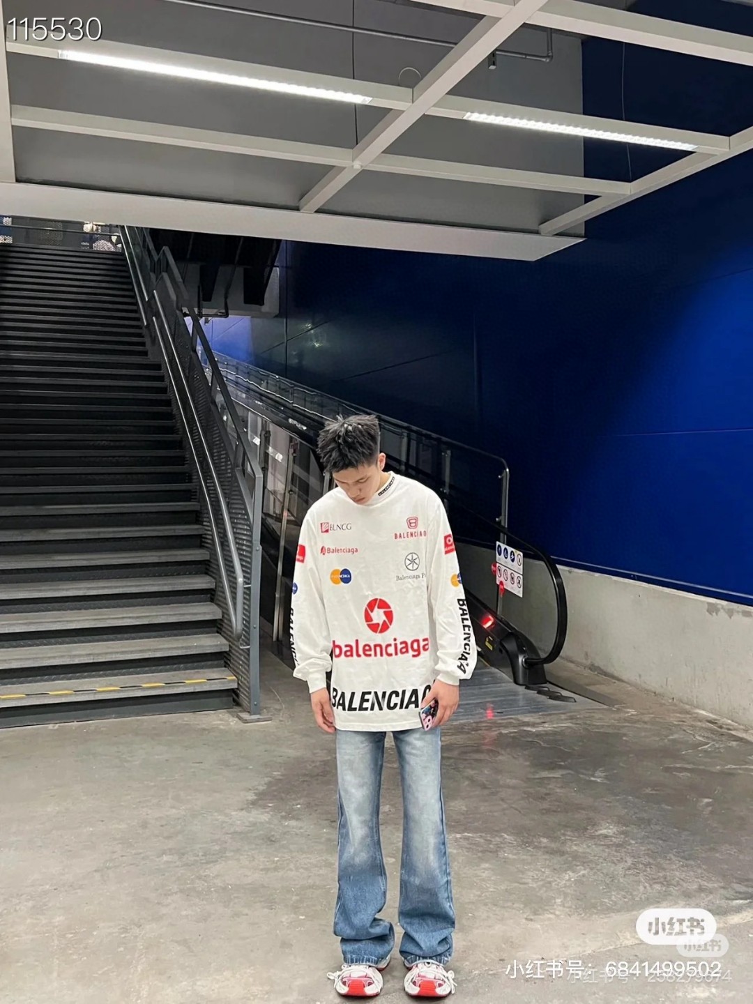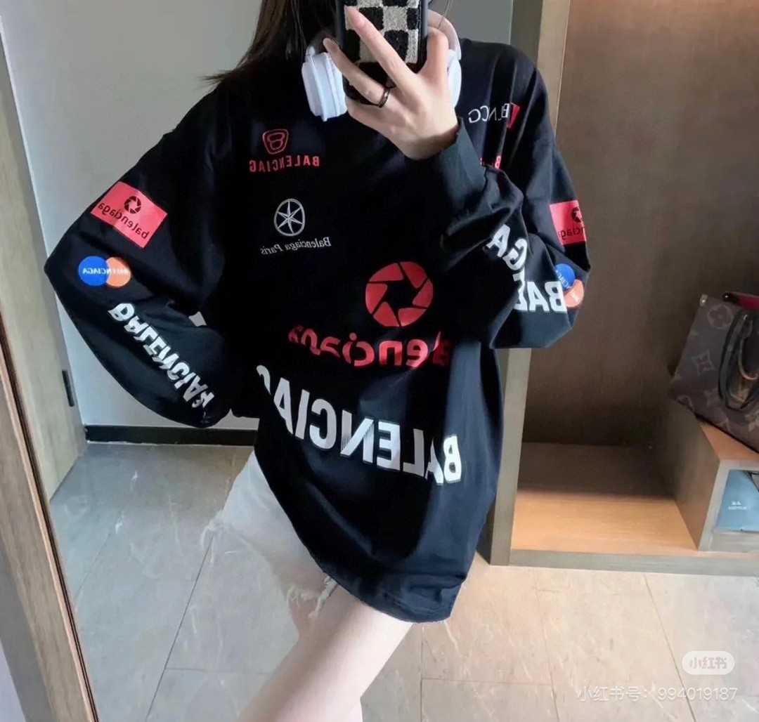 - Design: Multiple Balenciaga logos printed throughout the shirt.