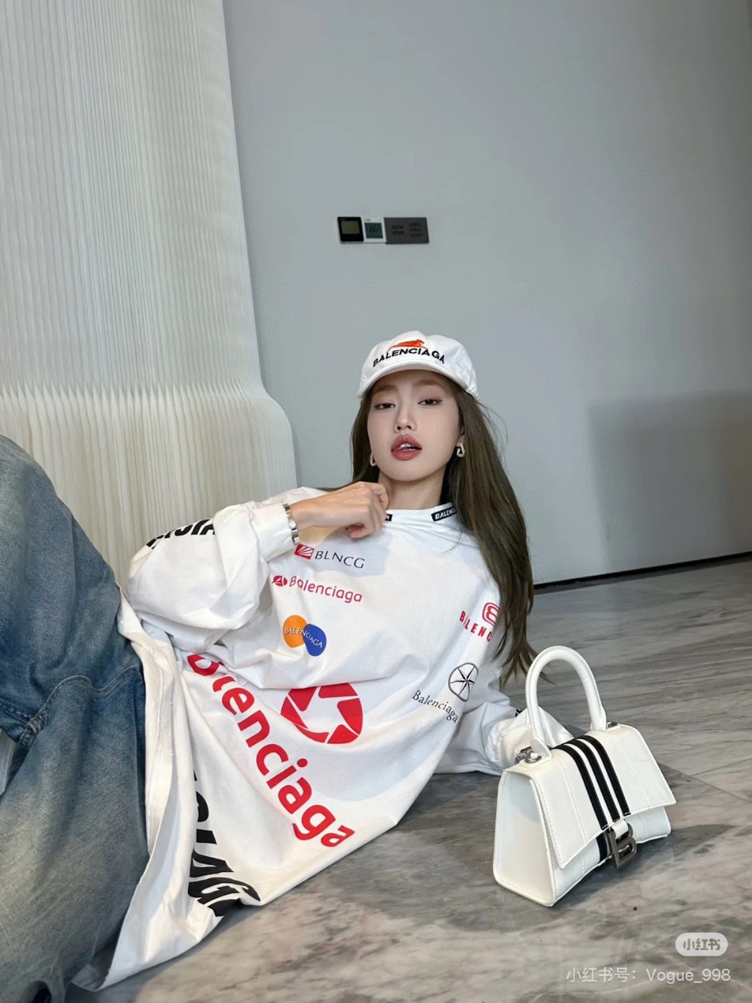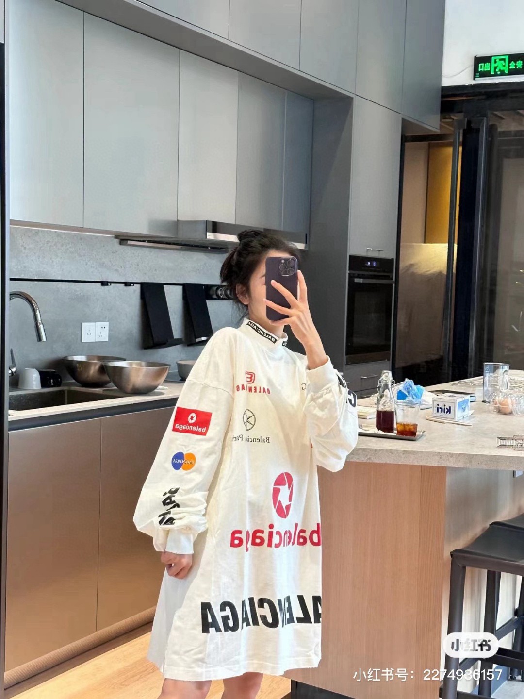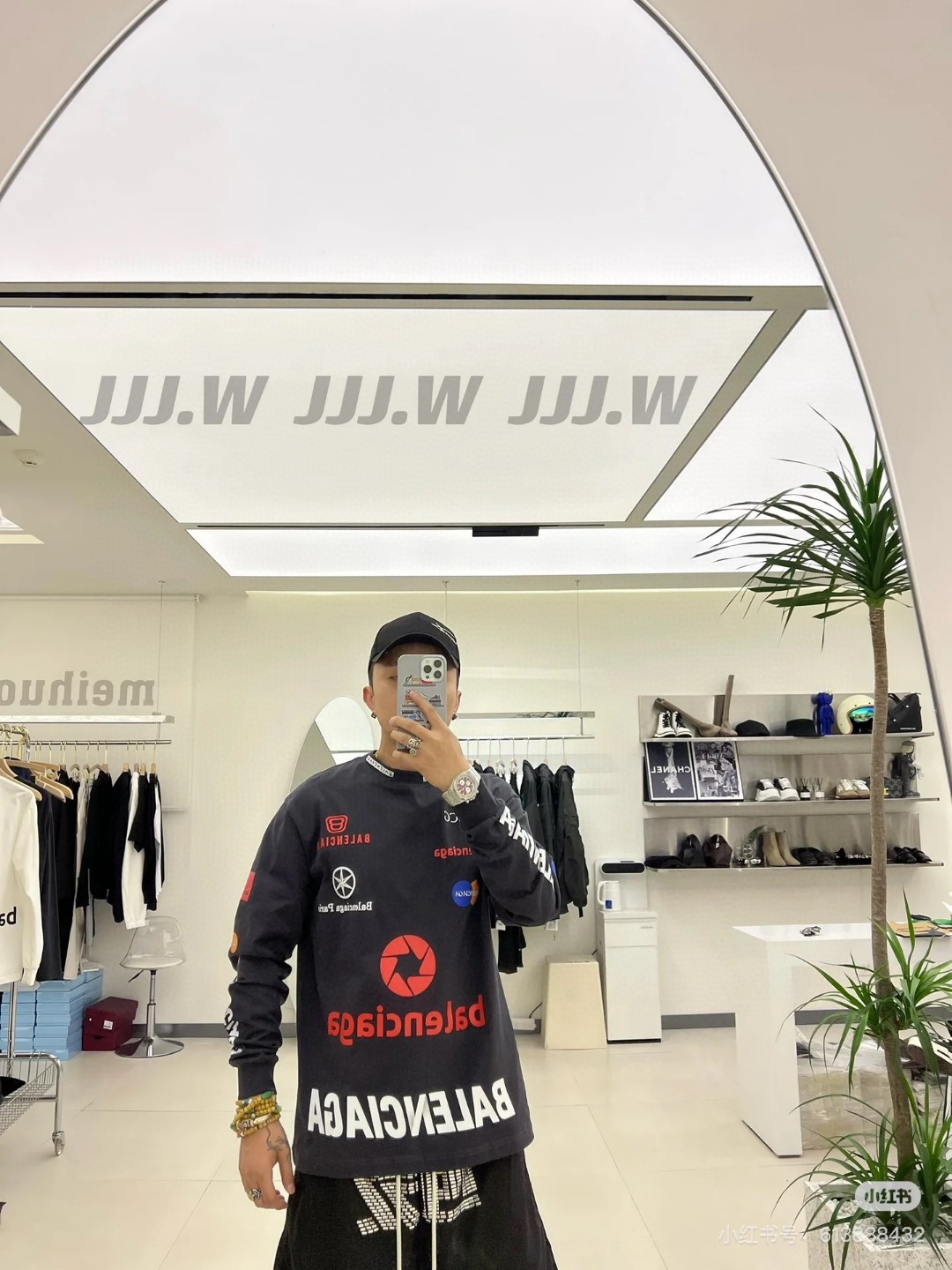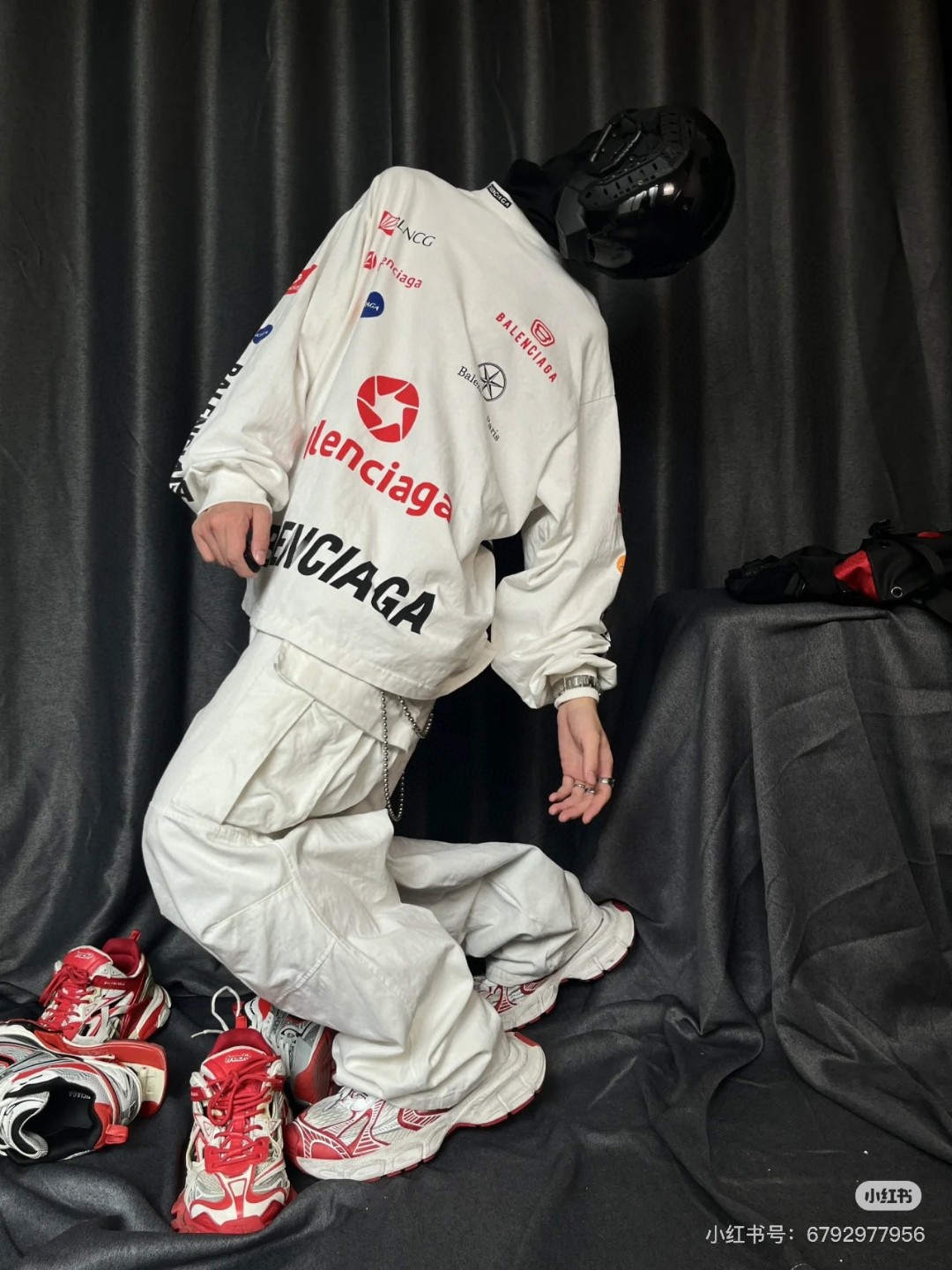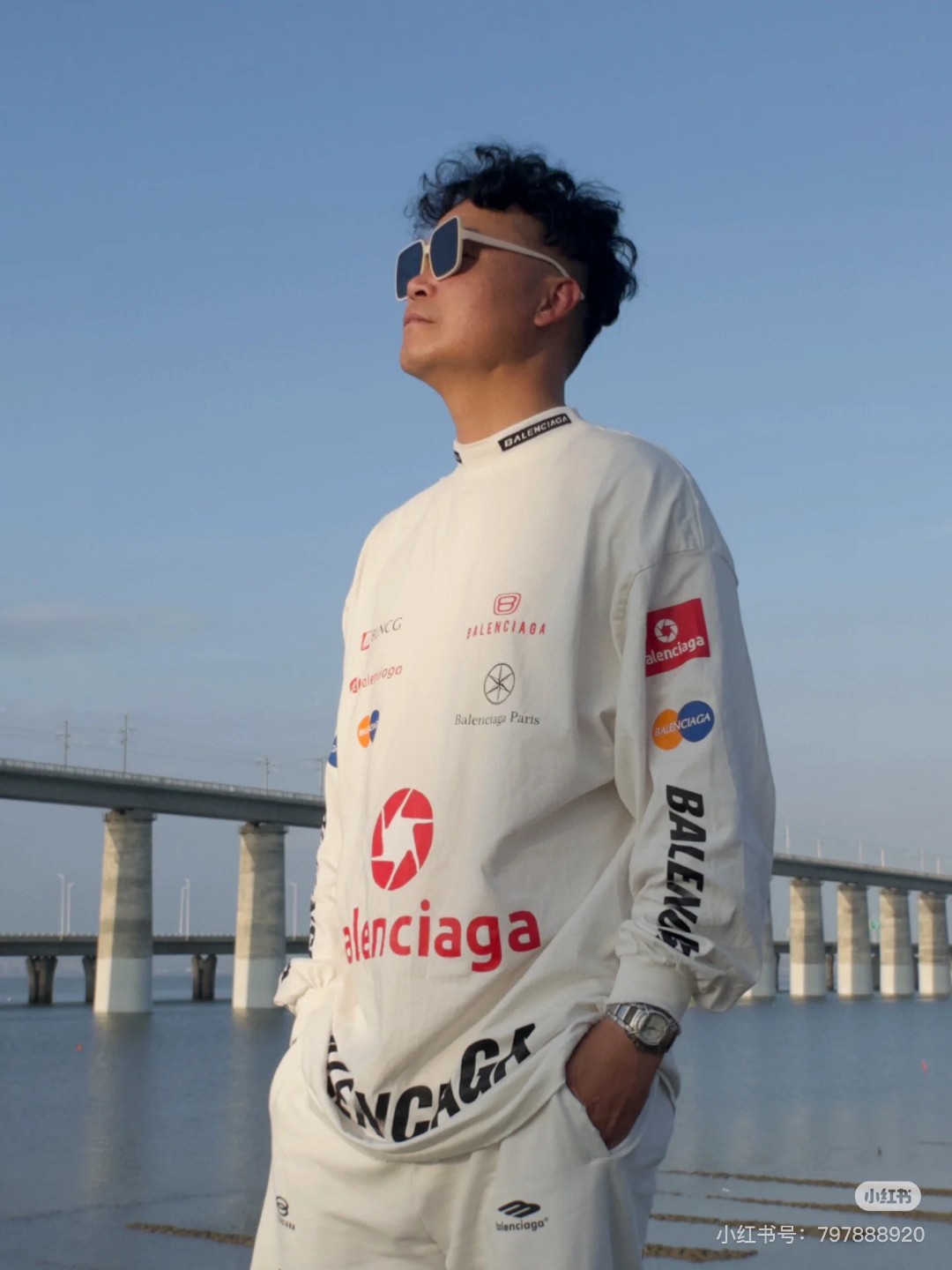 - Design: Multiple Balenciaga logos printed throughout the shirt.