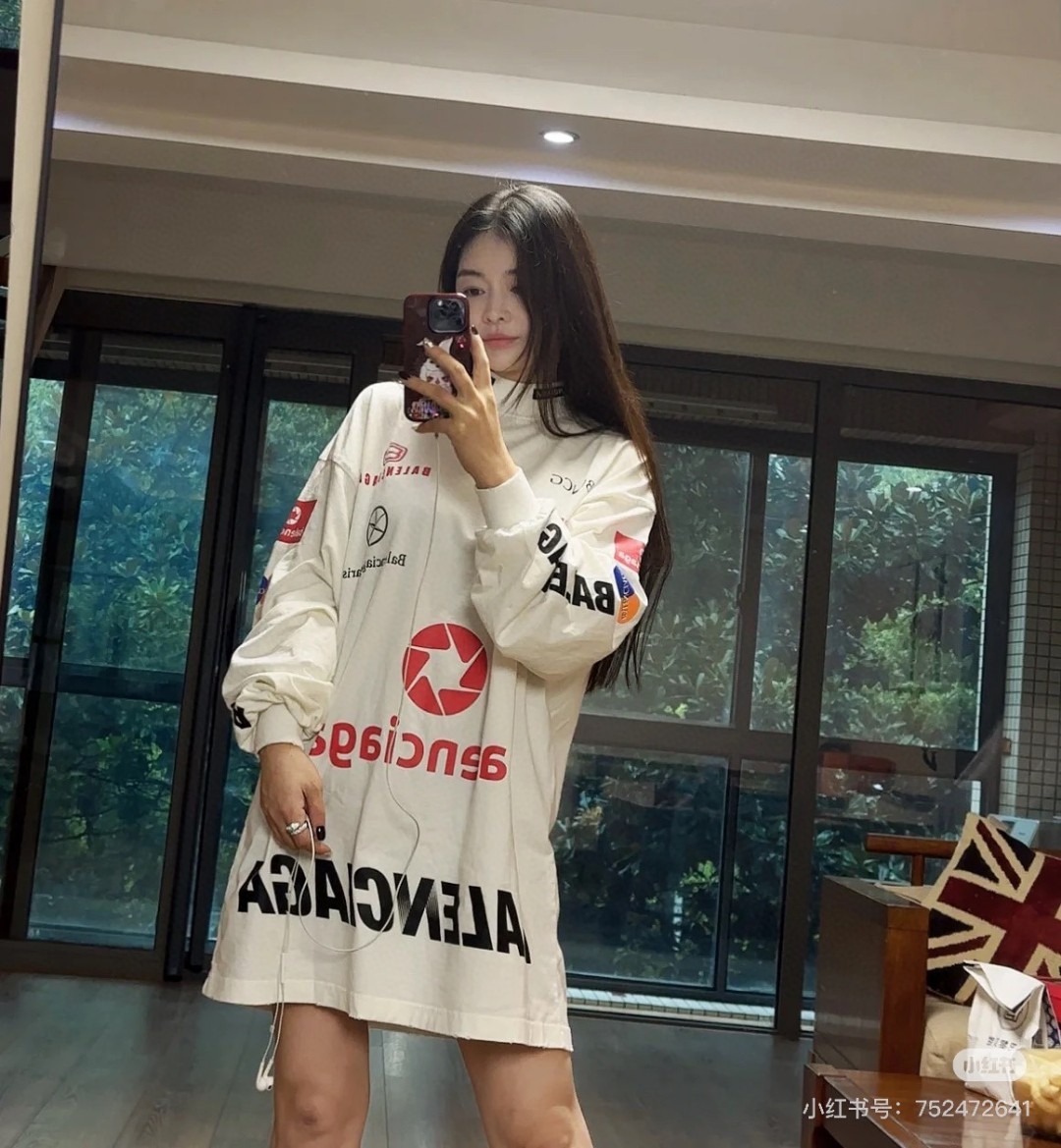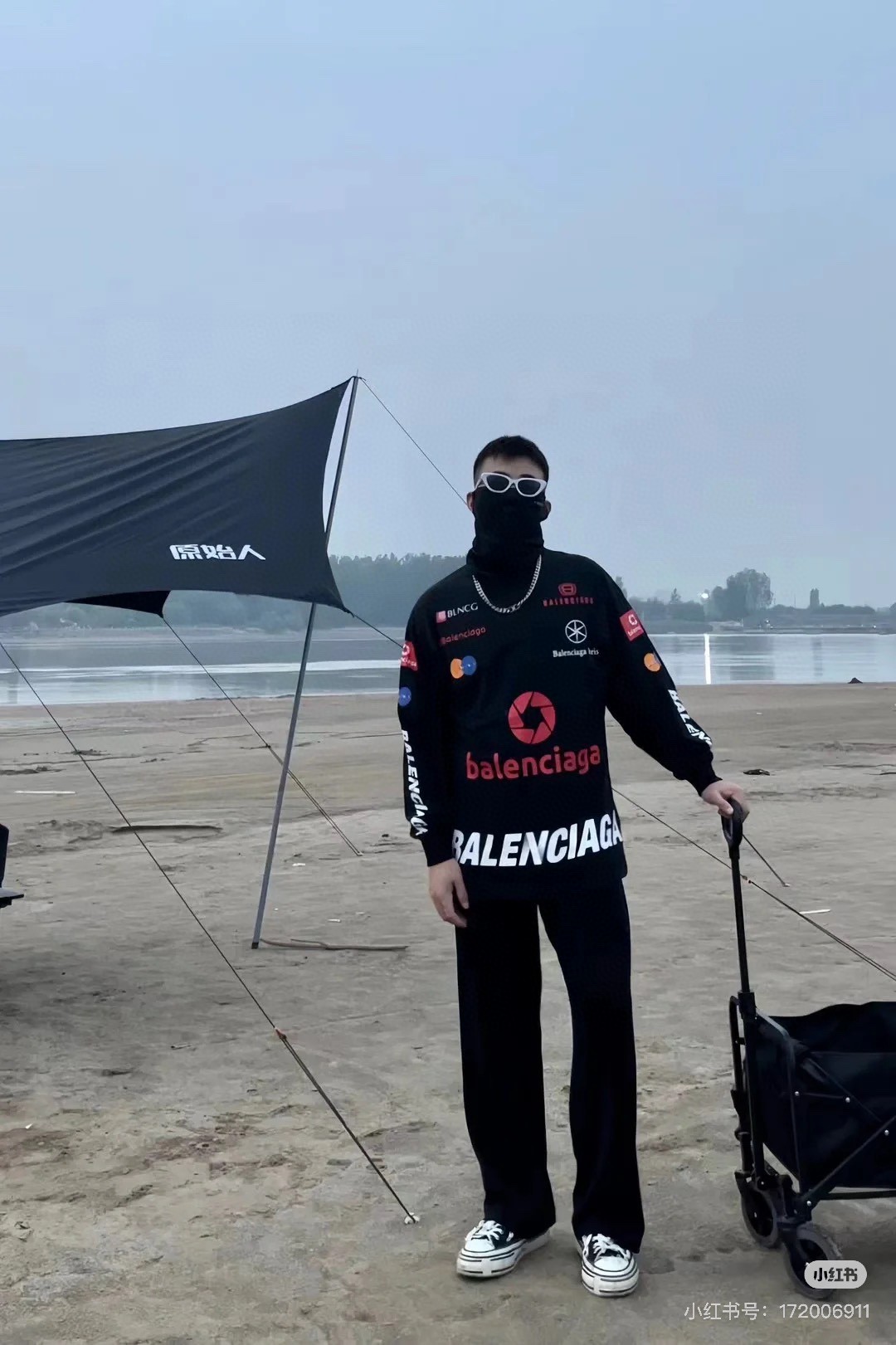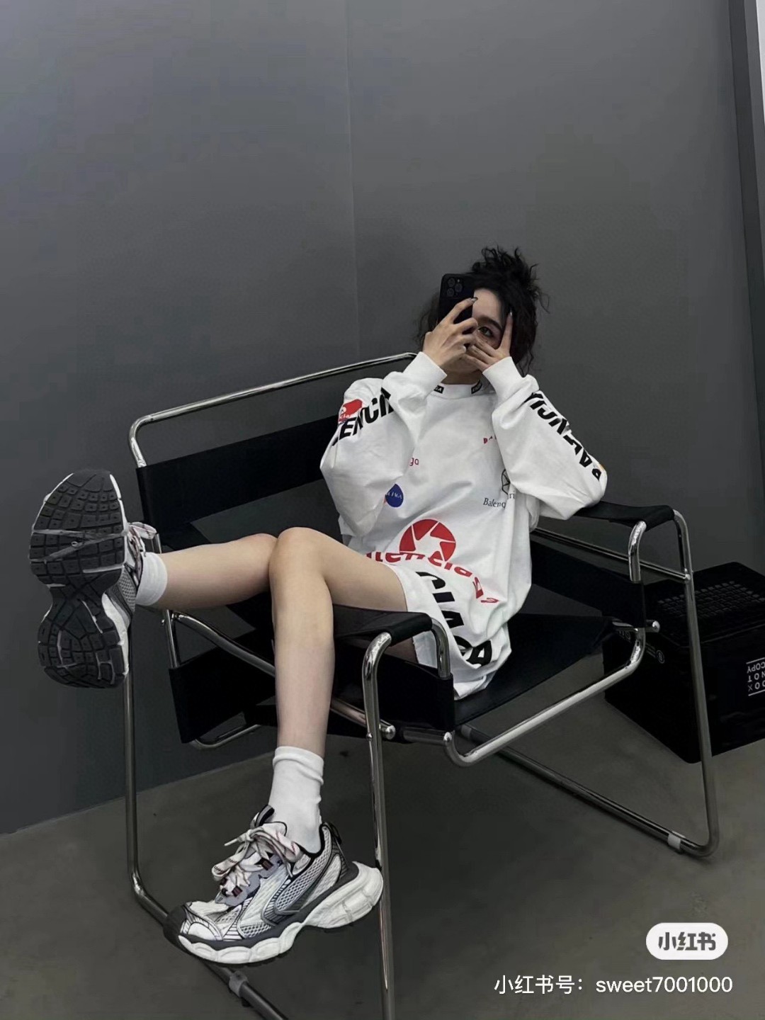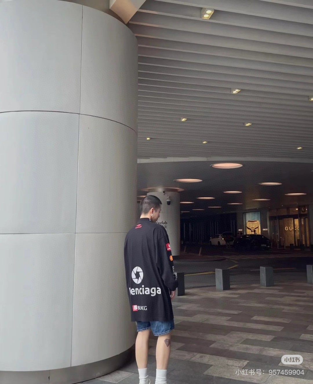 - Design: Multiple Balenciaga logos printed throughout the shirt.