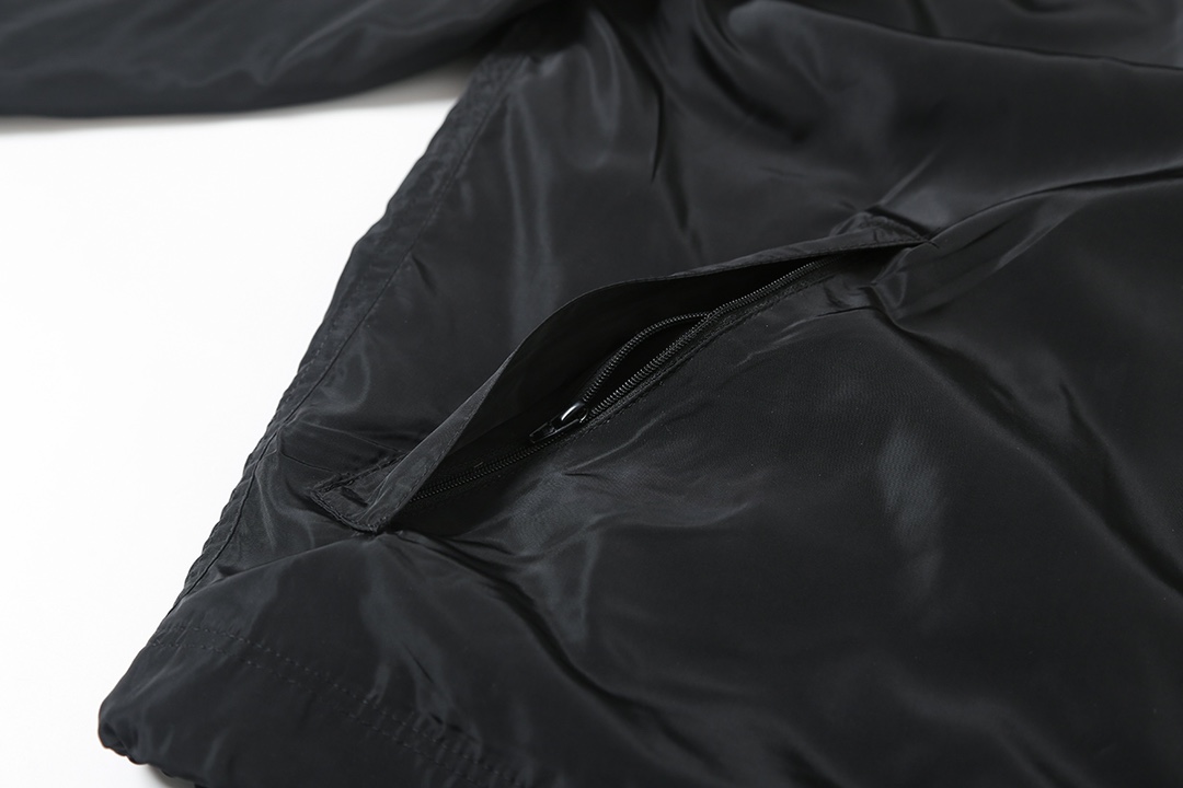 - Hardware: Custom-molded metal zippers and branded snap buttons.