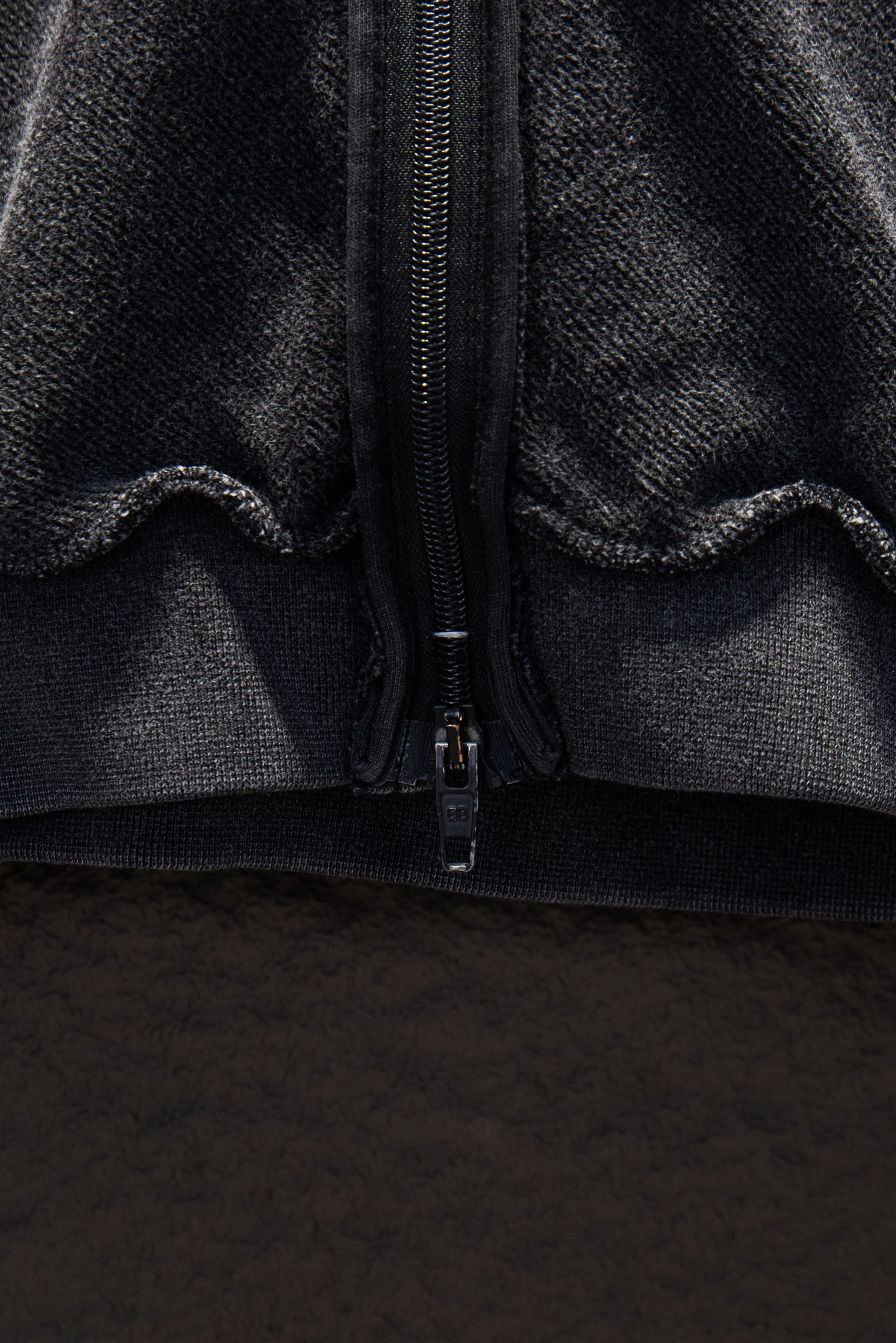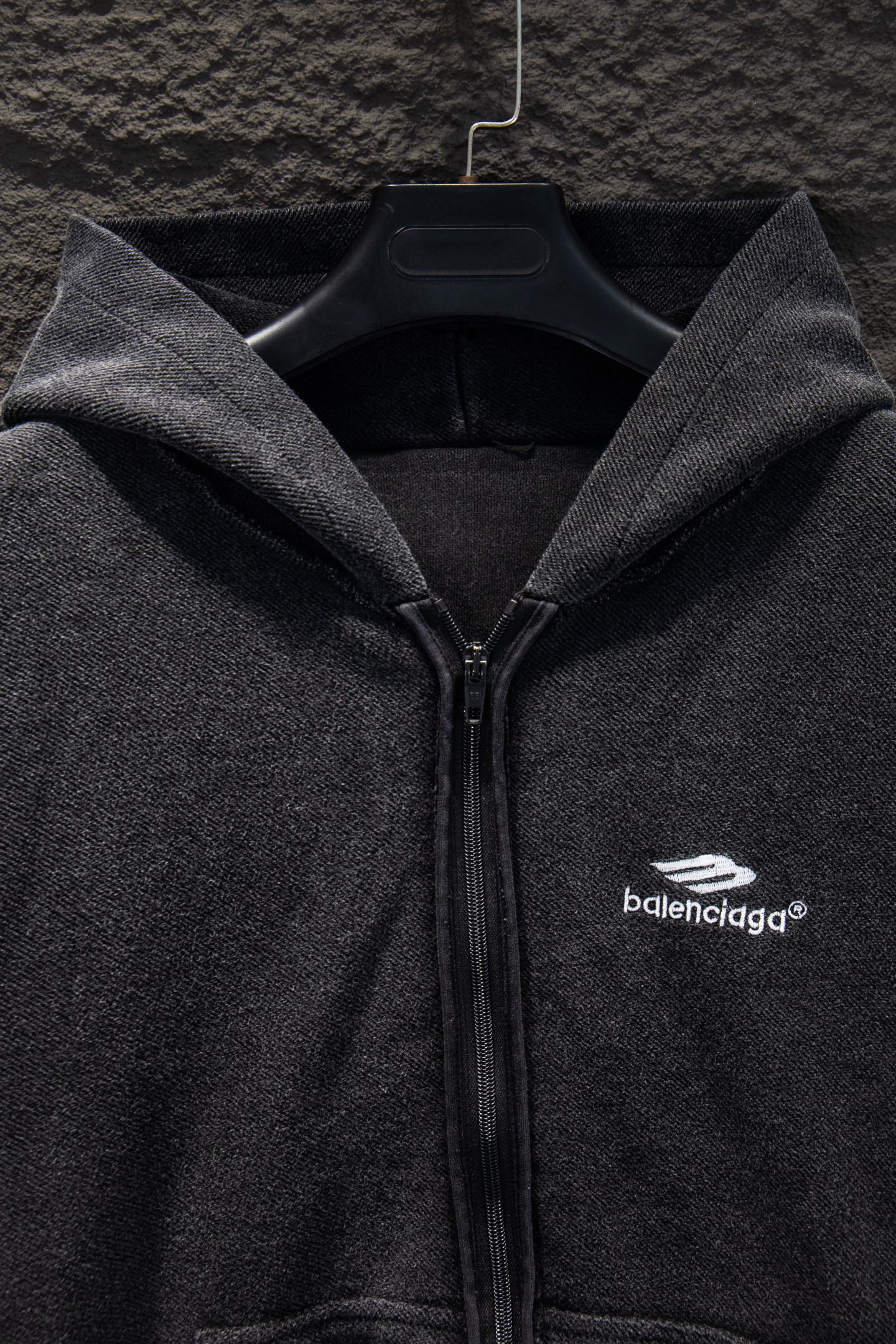 Balenciaga Distressed Embroidered Zip-Up Hoodie Cotton Black Wash