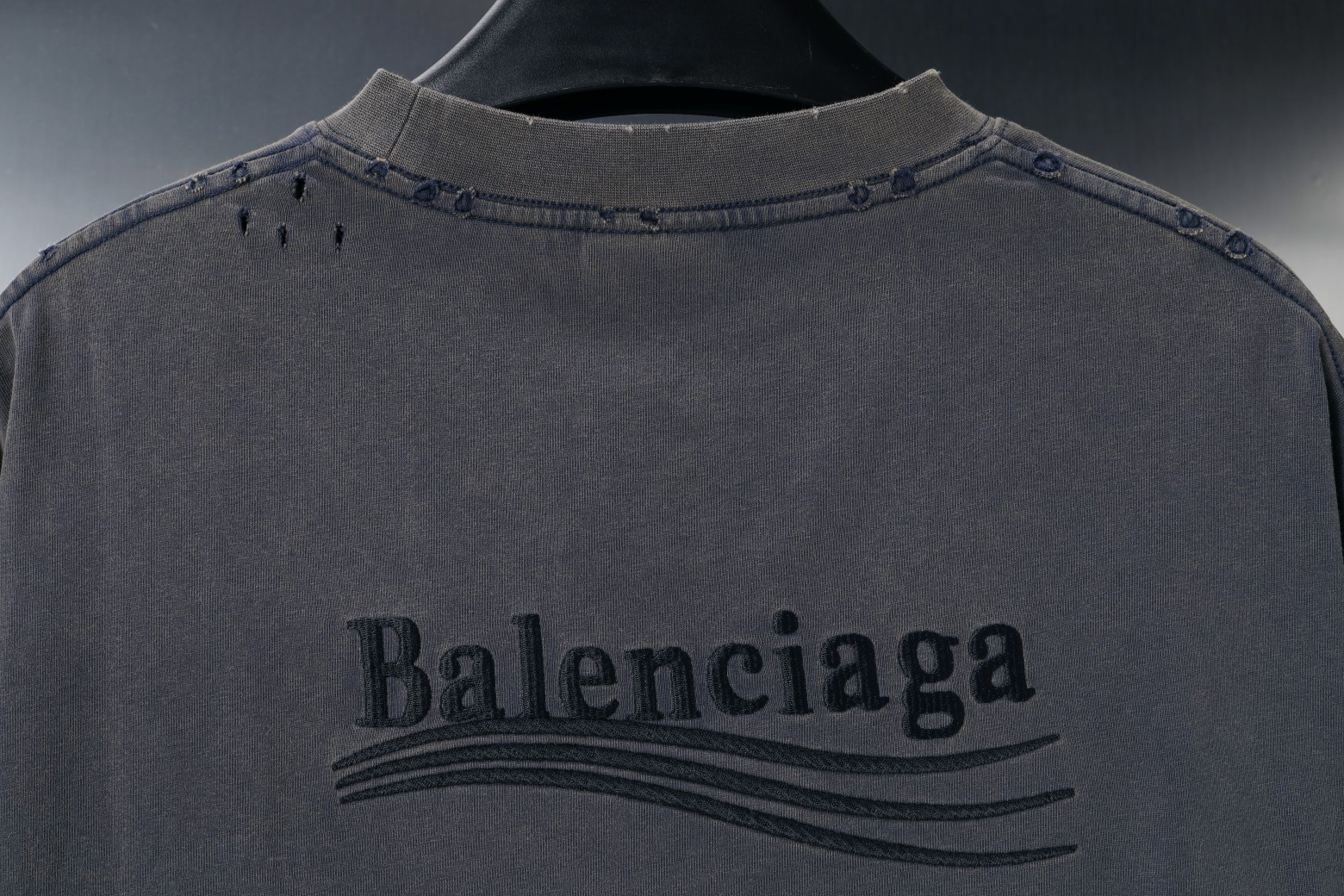 Elevate your style with this Balenciaga limited edition T-shirt. Featuring a distressed finish and logo. Perfect for a unique, stylish look.
