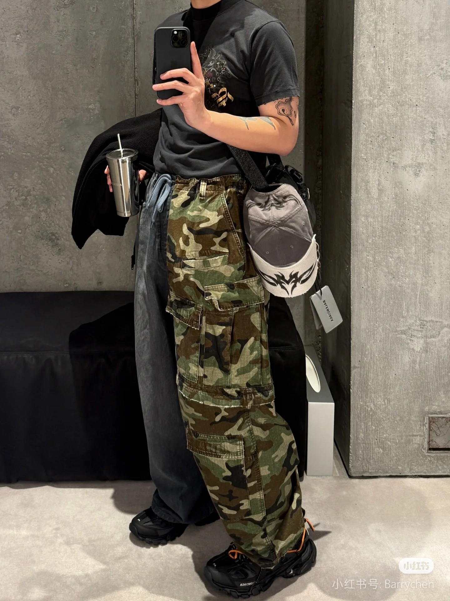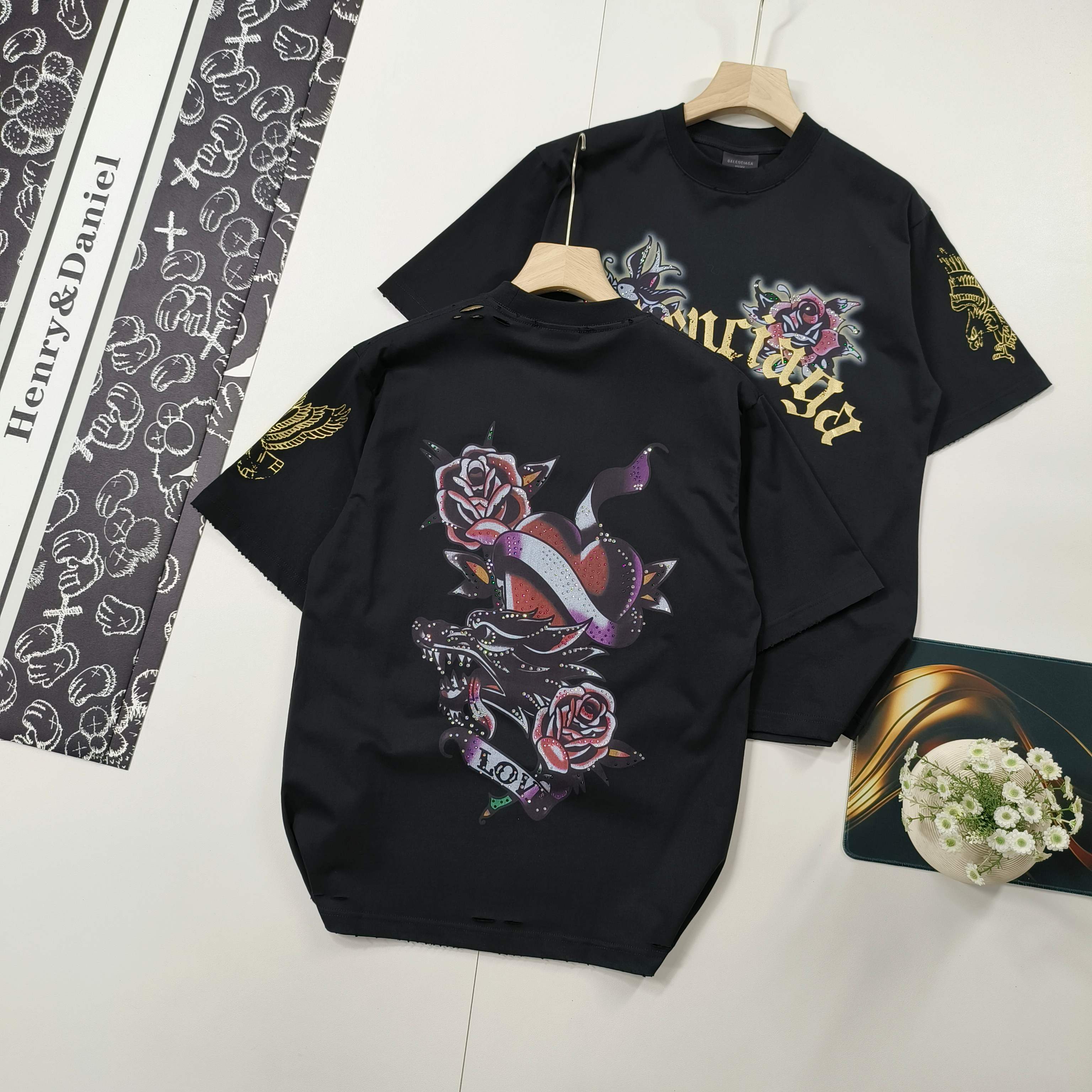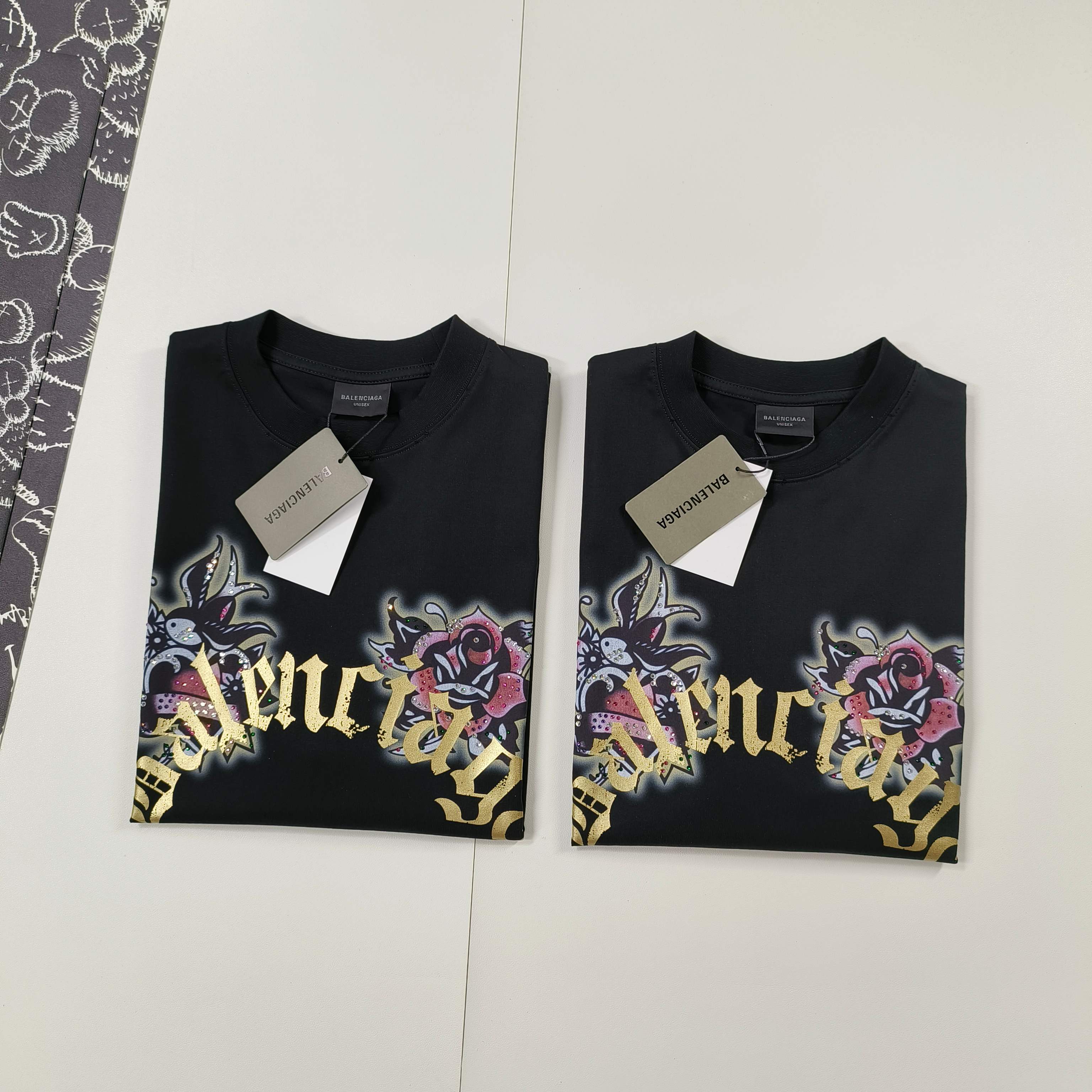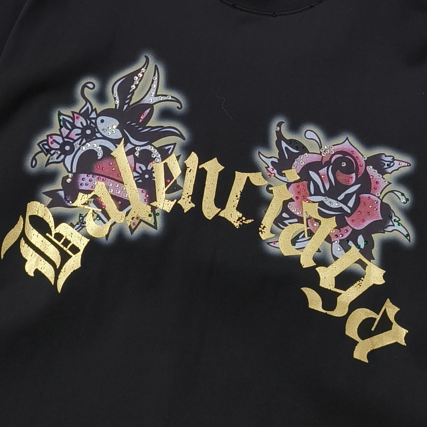 Elevate your wardrobe with this Balenciaga black T-shirt, featuring a unique tattoo graphic print for a distinctive, stylish edge. Shop now!