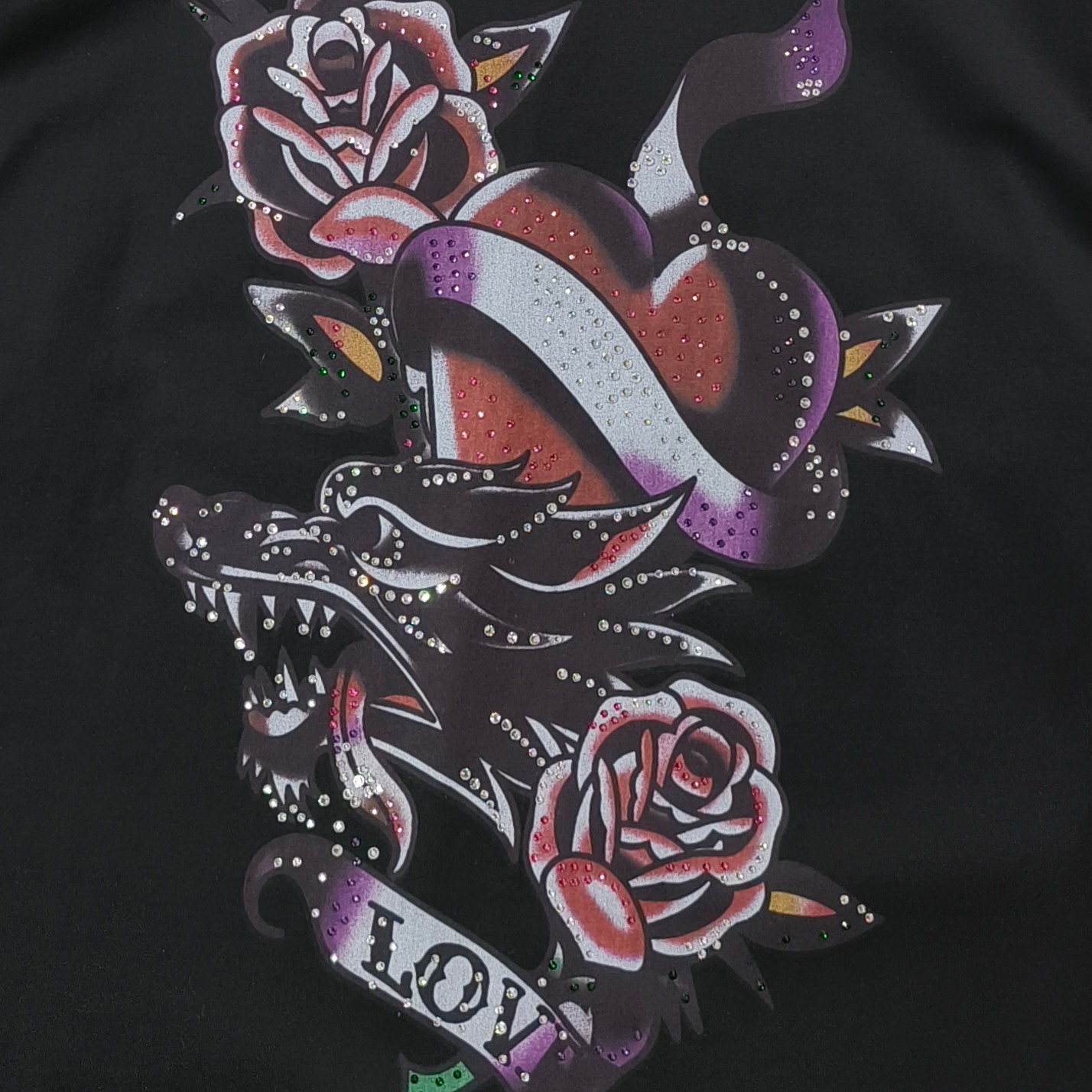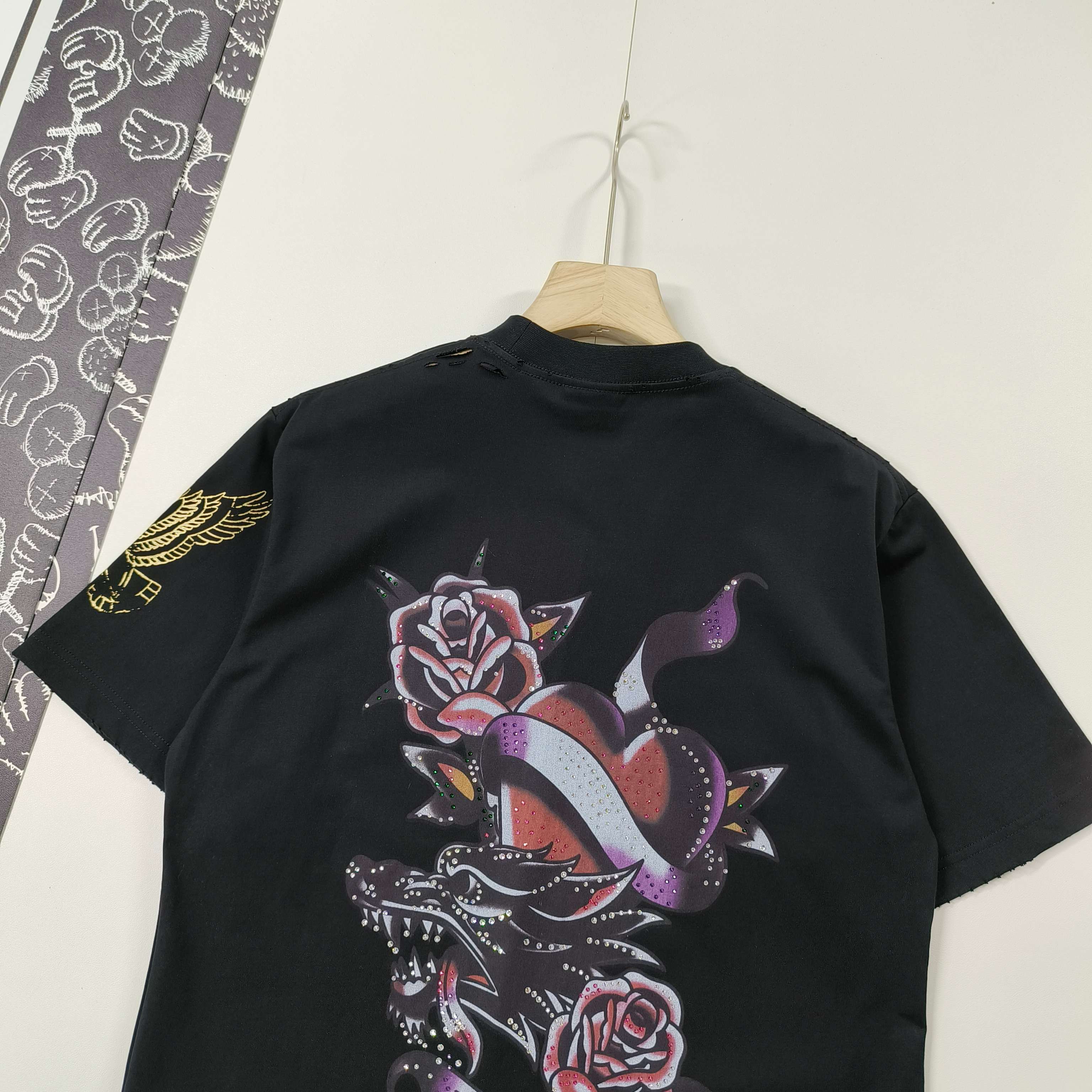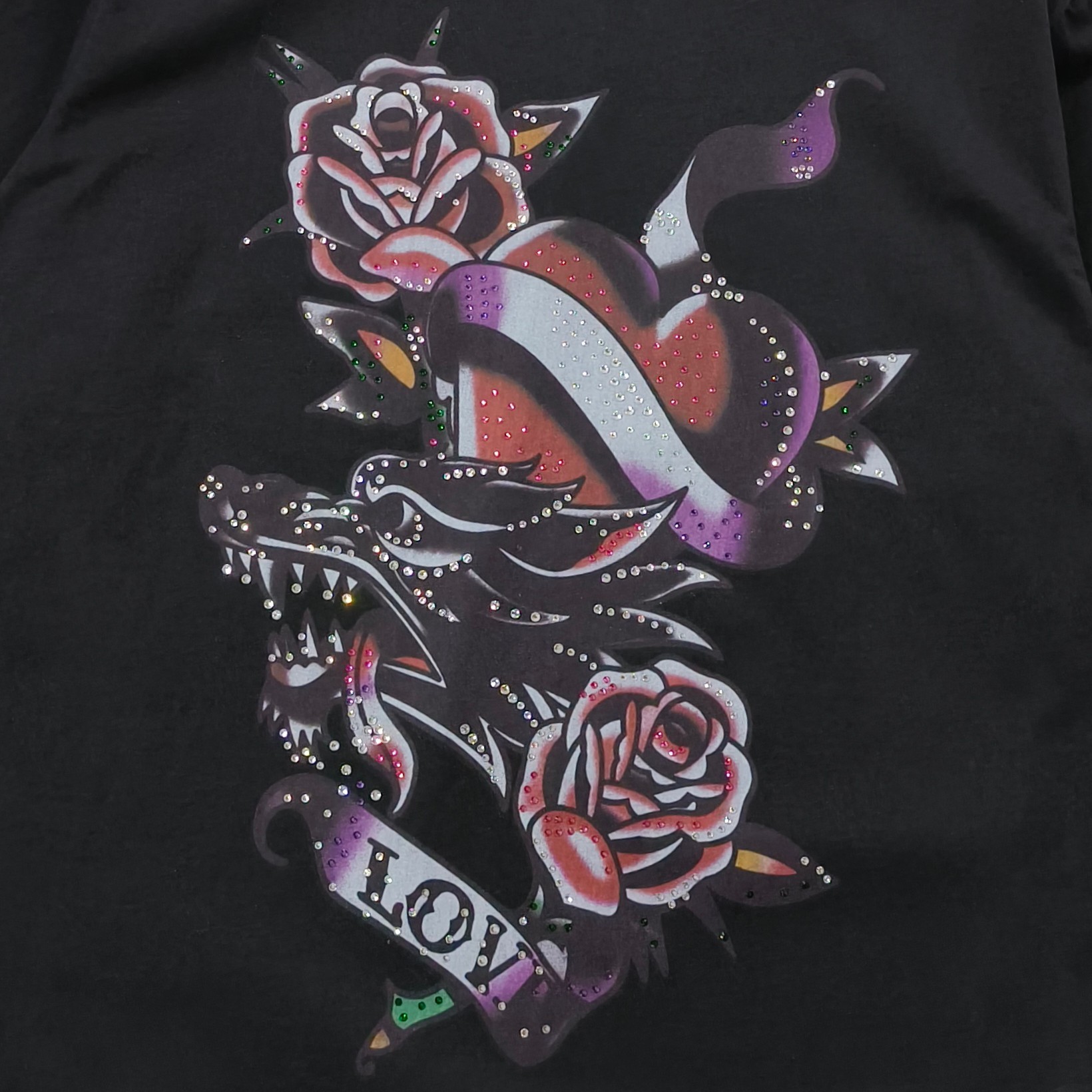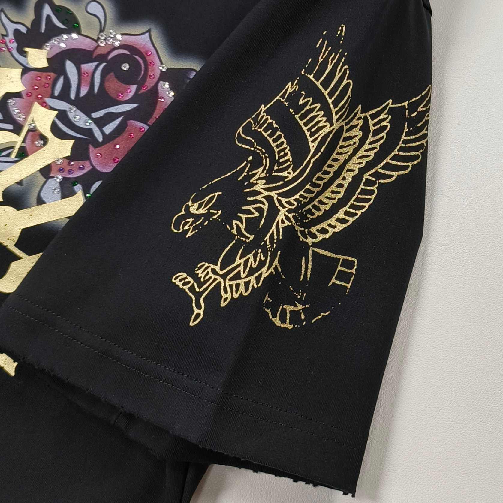 - Design: Tattoo graphic print on the front and sleeve