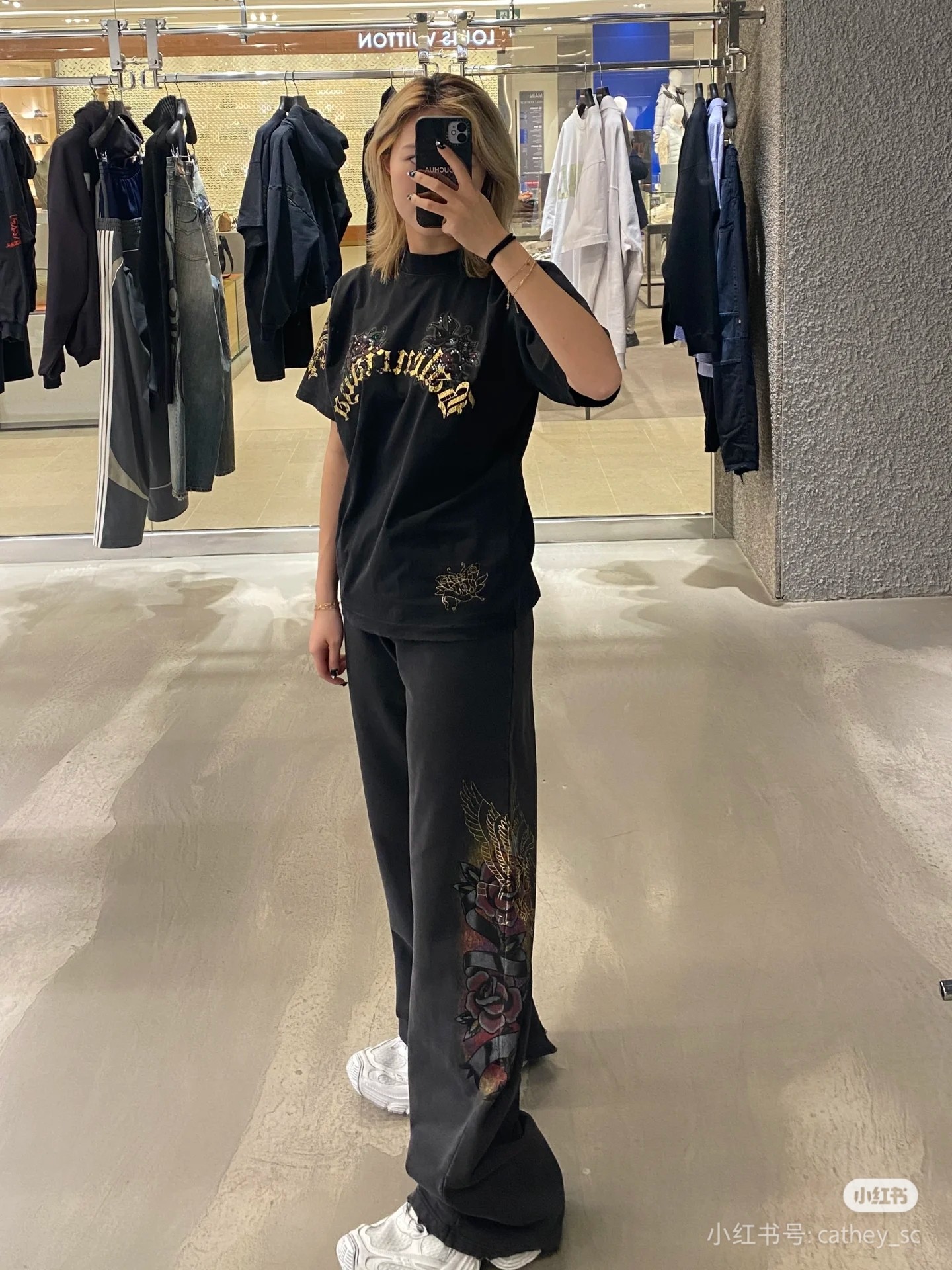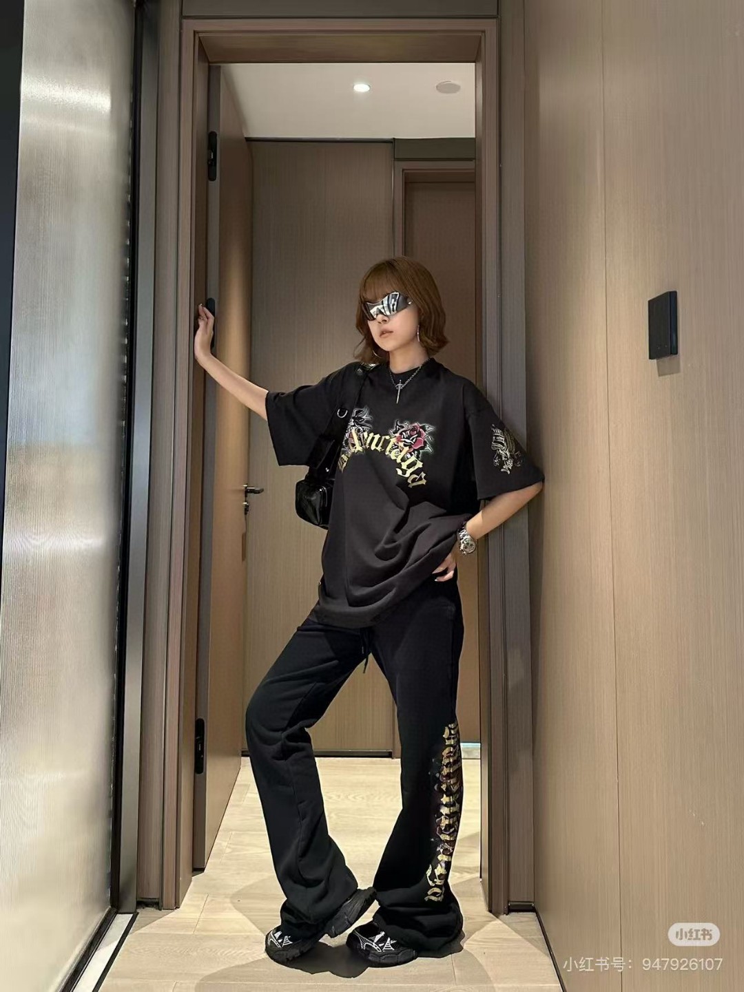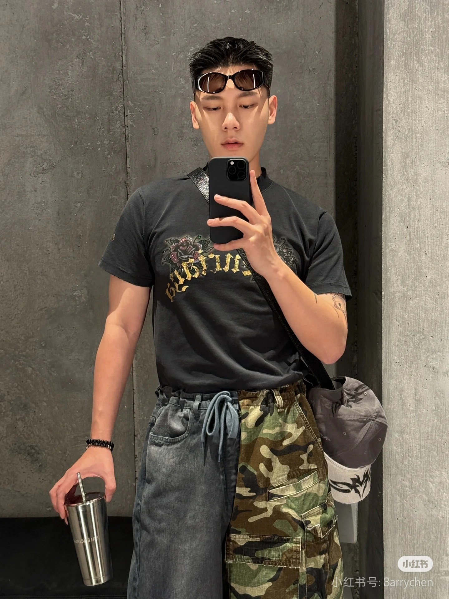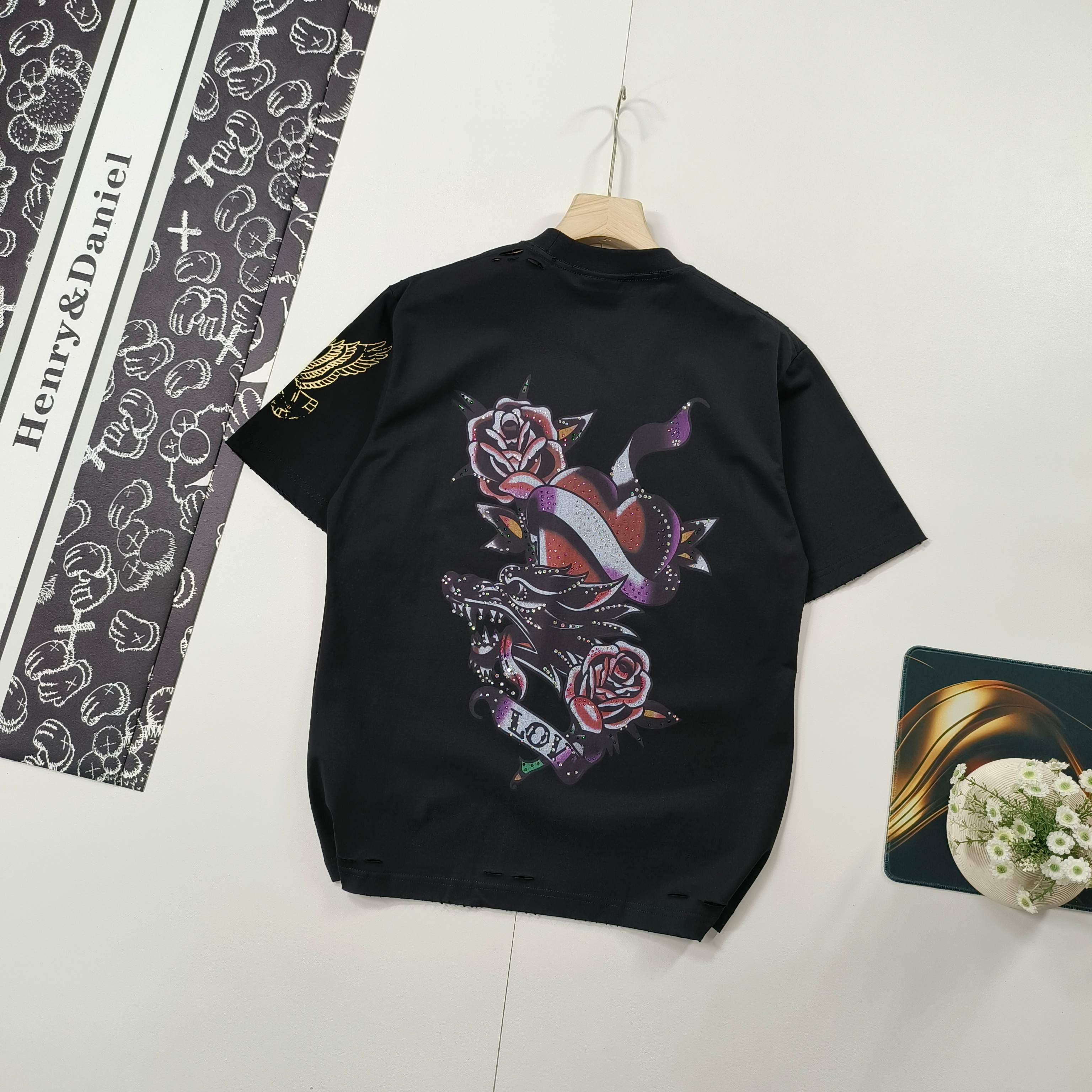 - Design: Tattoo graphic print on the front and sleeve