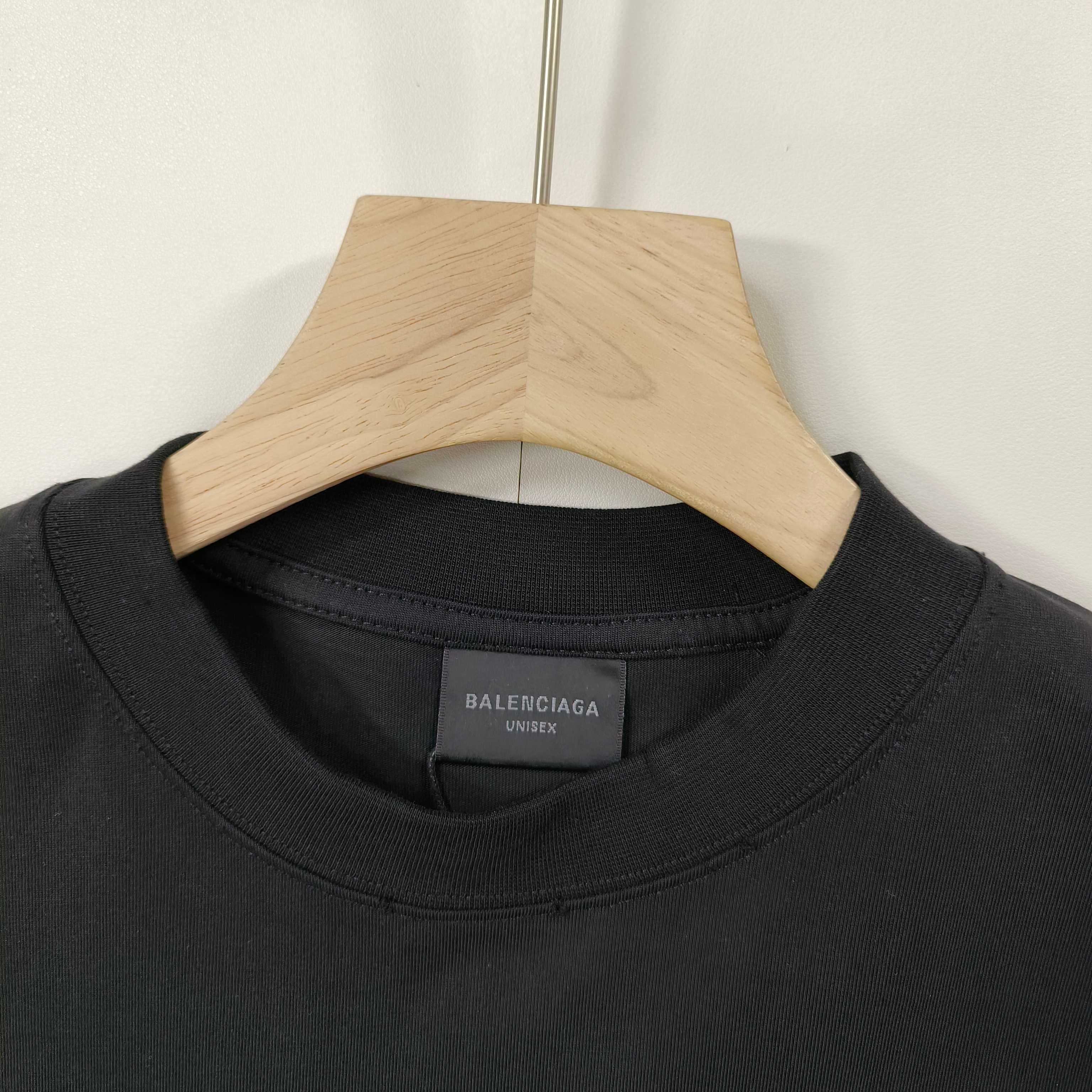 This Balenciaga T-shirt is a stylish and edgy addition to any wardrobe, perfect for those who appreciate high-fashion with a unique twist.
