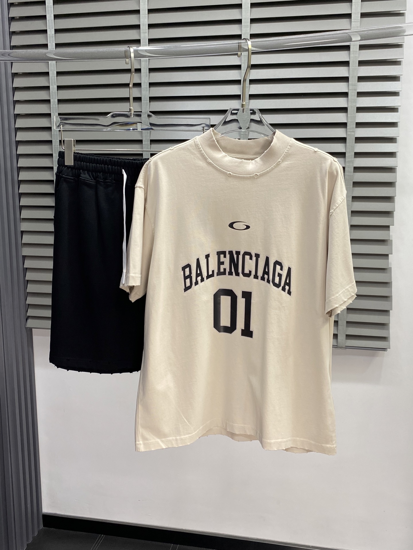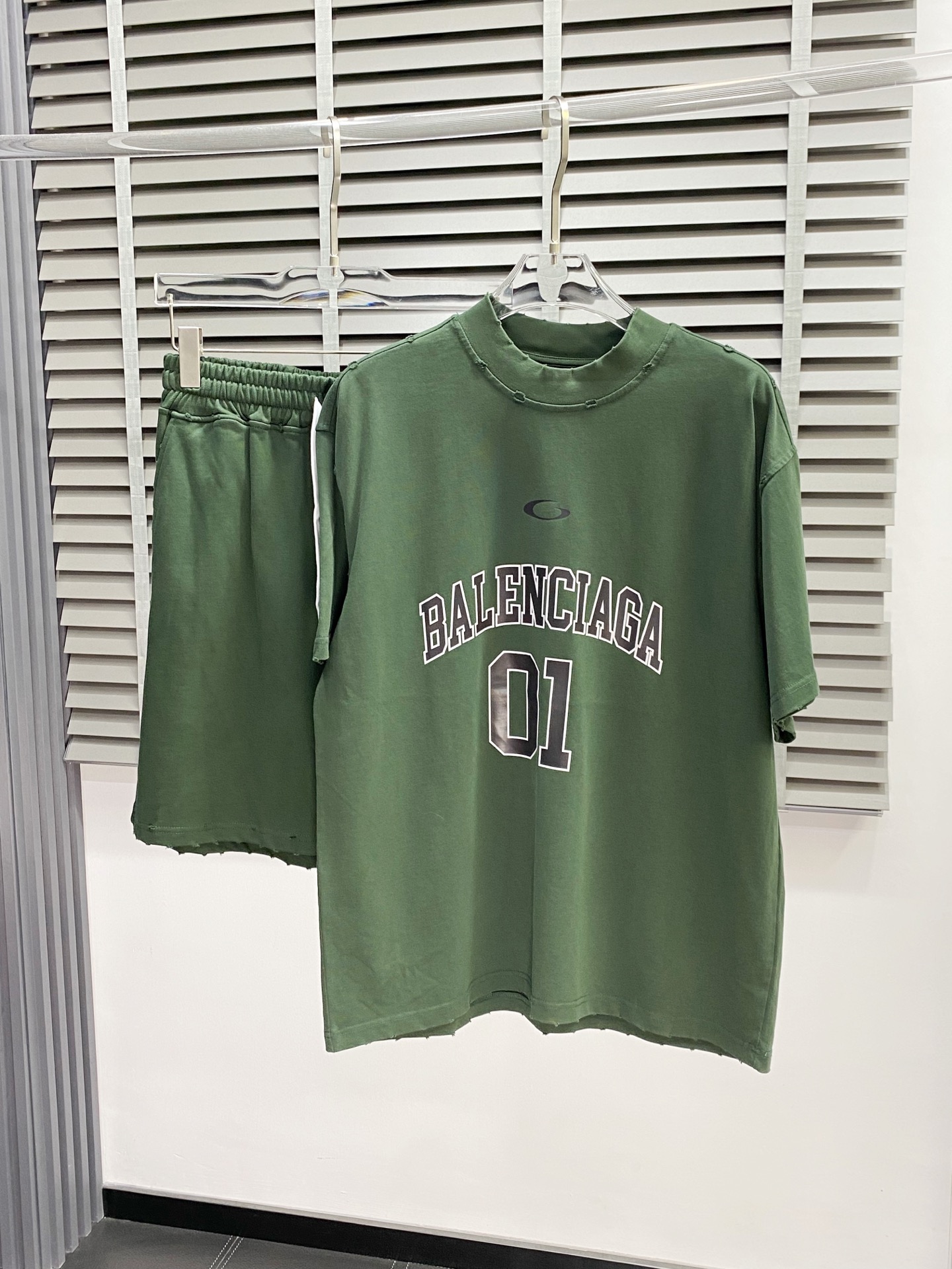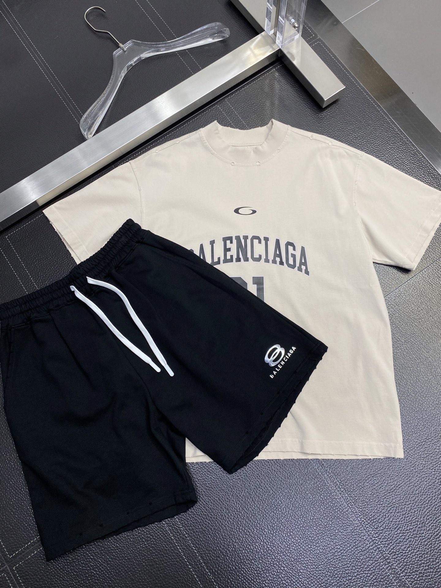 Elevate your casual wardrobe with this Balenciaga set, featuring a stylish blue tee and matching shorts. Made from premium cotton jersey for ultimate comfort.