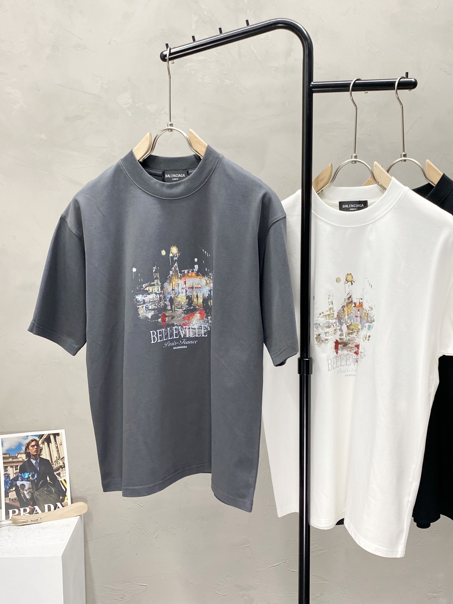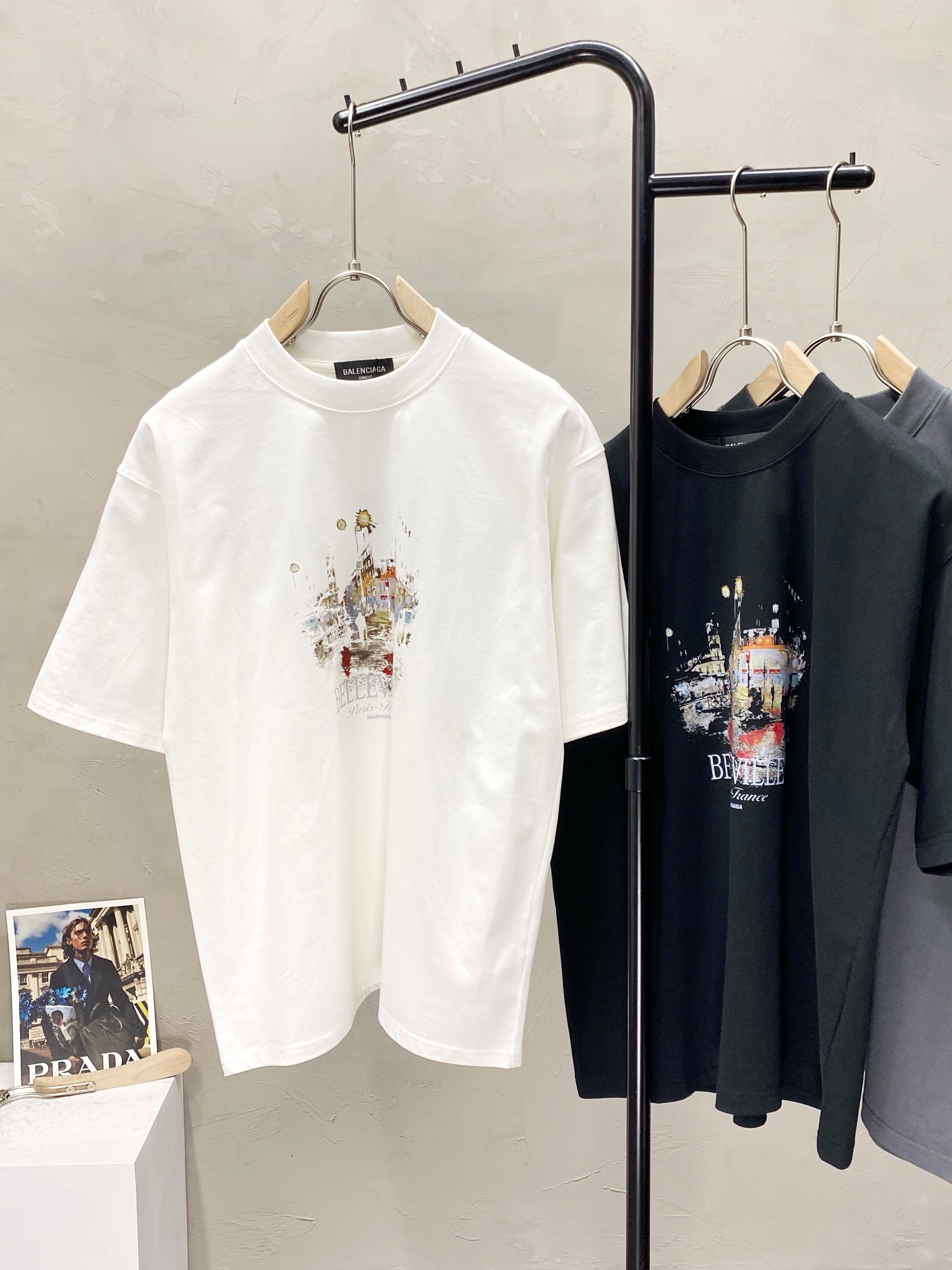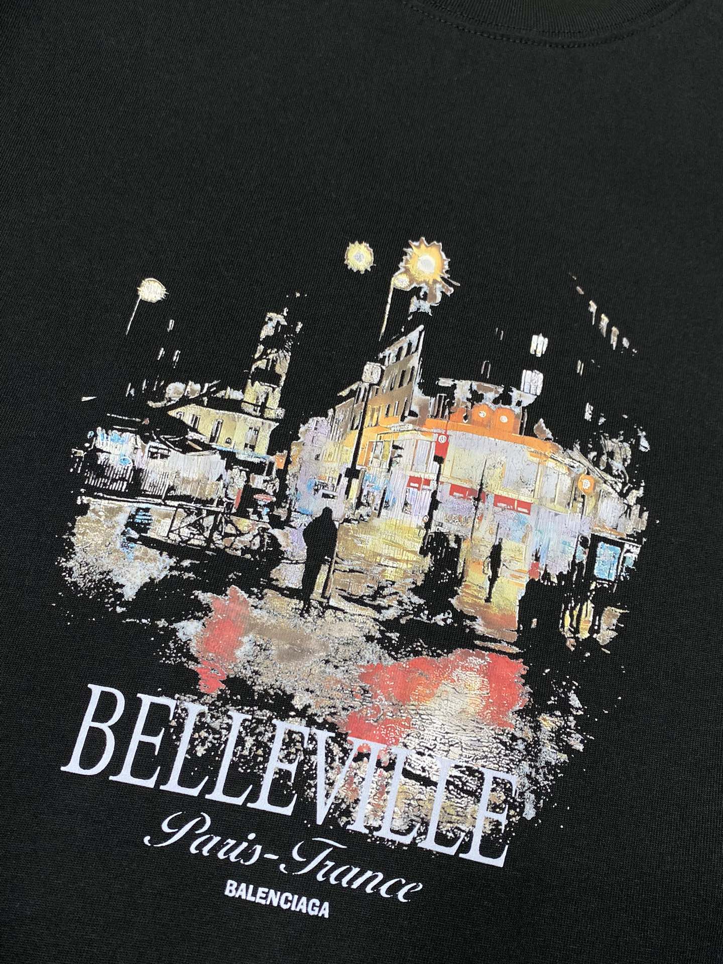 Balenciaga Men's Casual Short Sleeve T-Shirt with Belleville Graphic